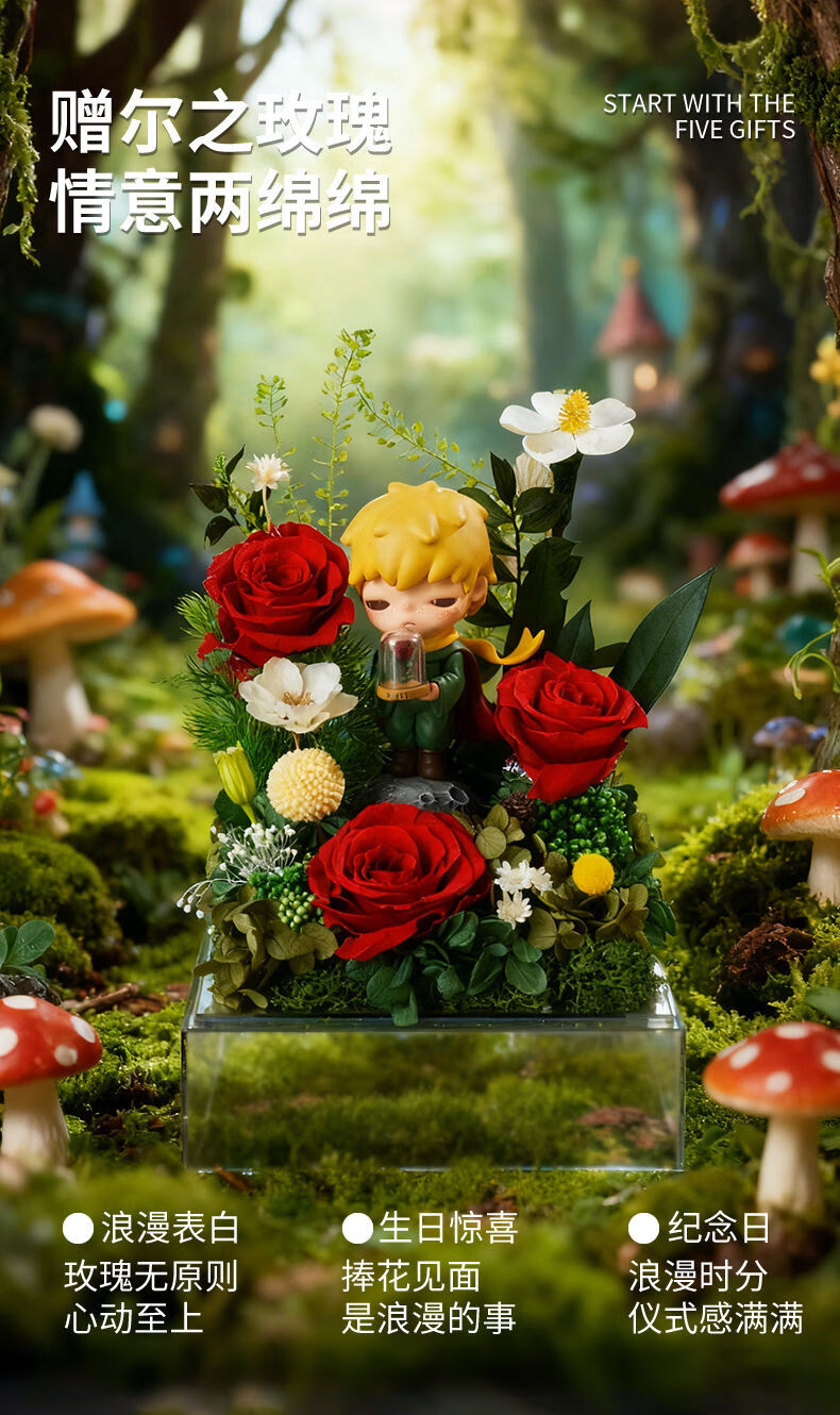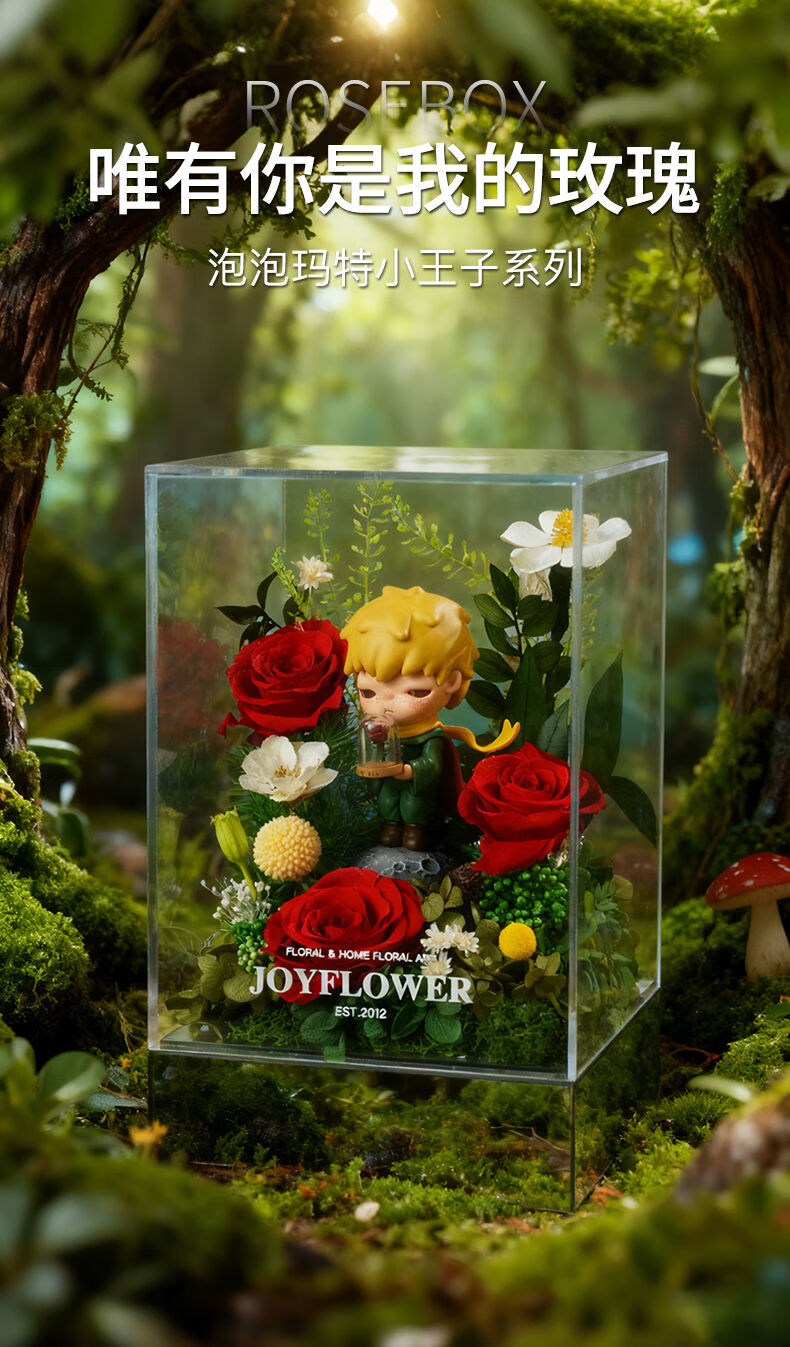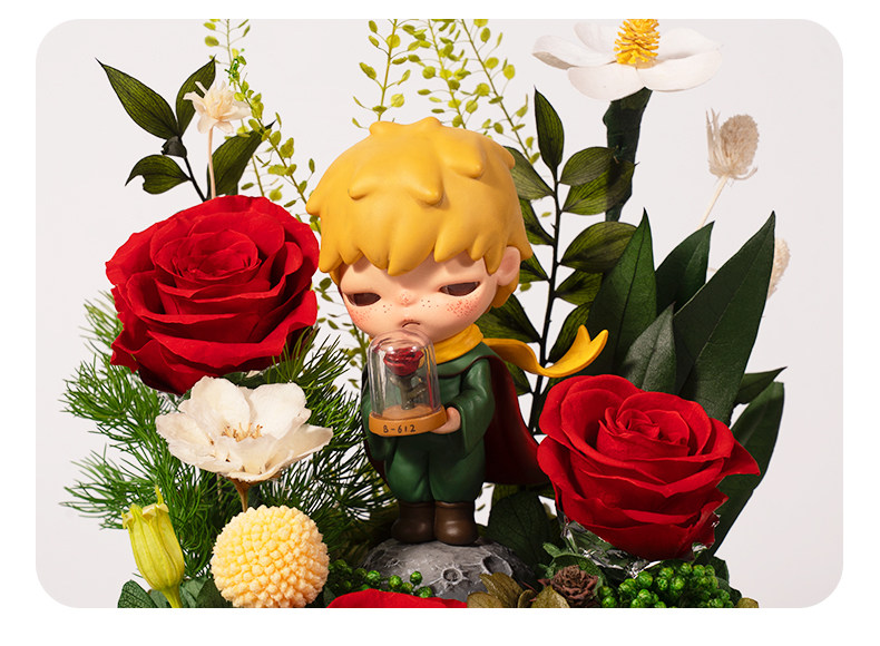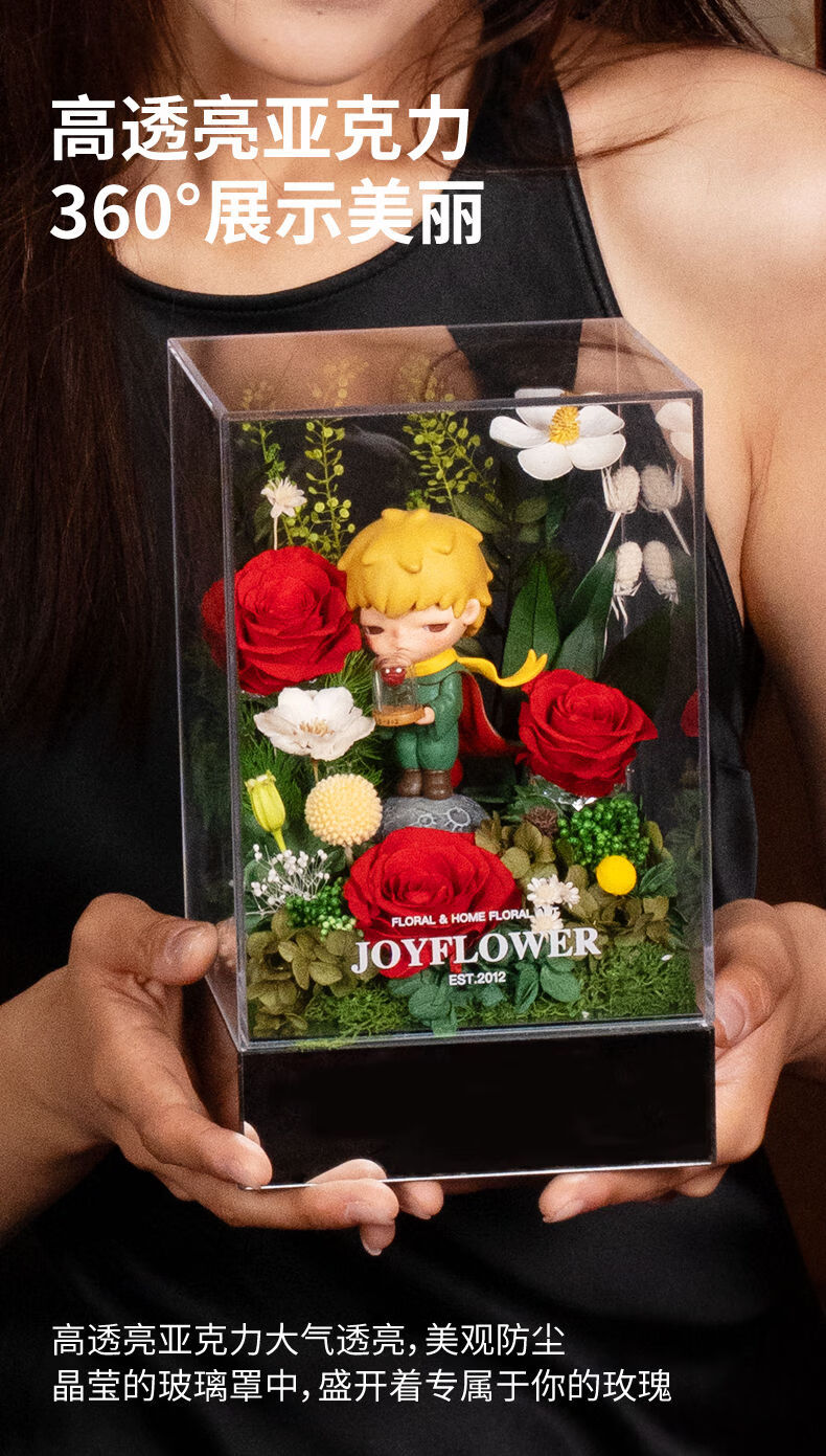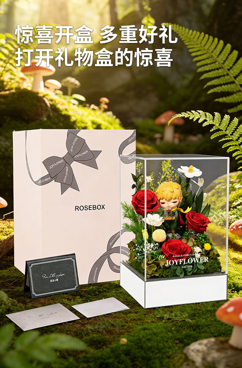 The Little Prince's eternal flower, the little wild rose, the real flower, the high-end gift box, the newlywed gift for the girlfriend and wife's birthday, the genuine Little Prince glass cover - the rose gives the atmosphere light