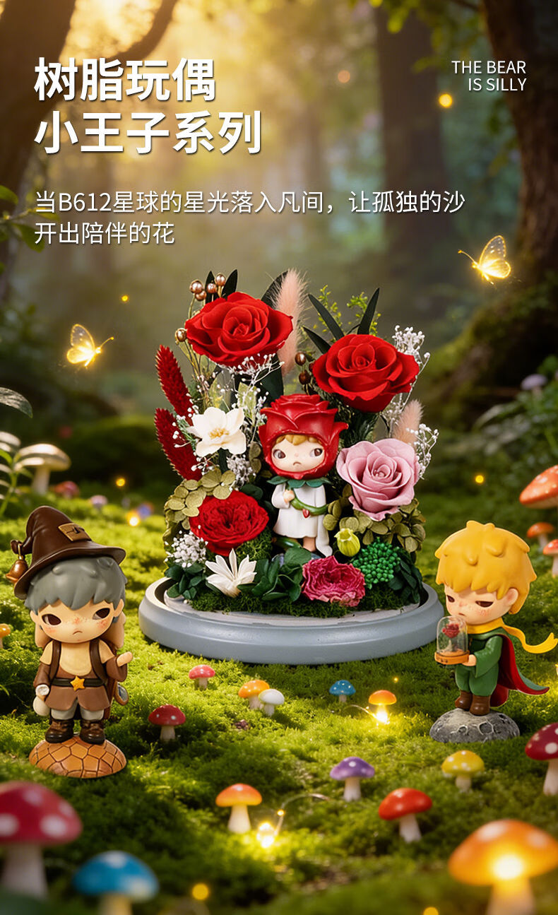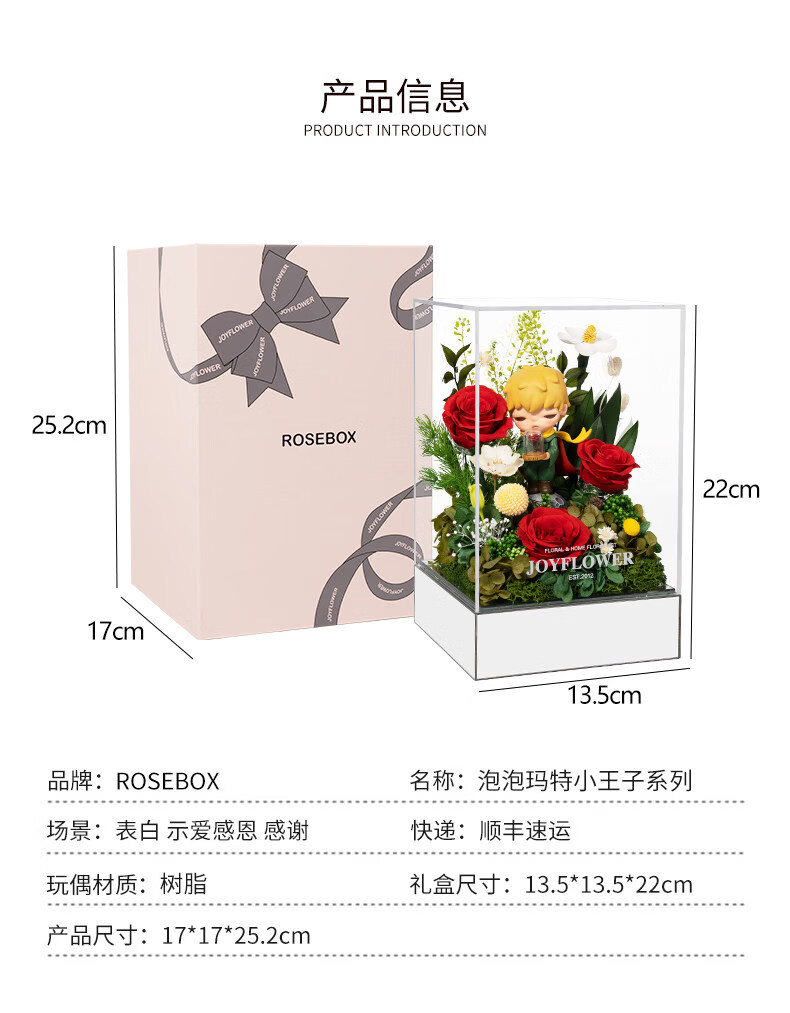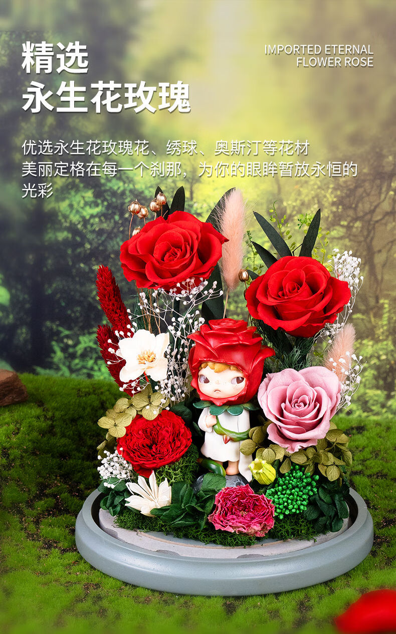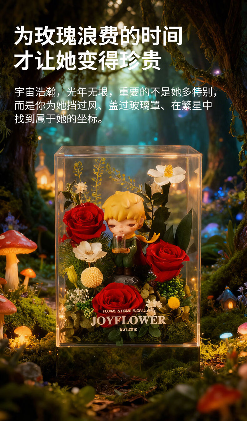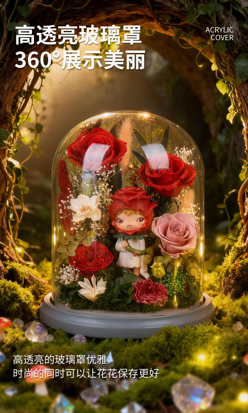The Little Prince's eternal flower, the little wild rose, the real flower, the high-end gift box, the newlywed gift for the girlfriend and wife's birthday, the genuine Little Prince glass cover - the rose gives the atmosphere light