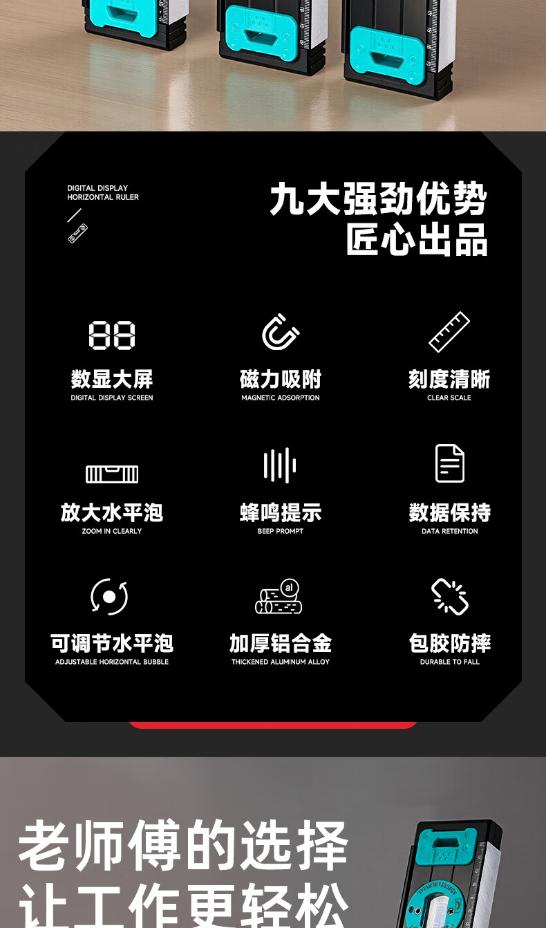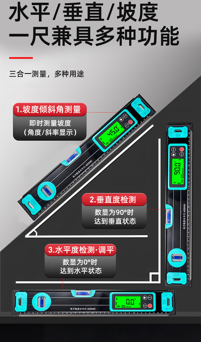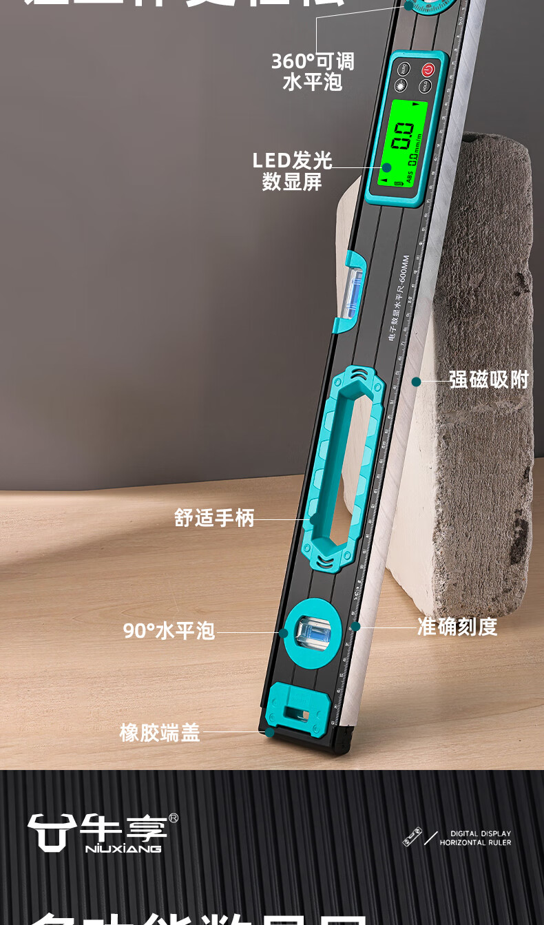 Niuxiang high-precision level ruler digital display electronic strong magnetic water ruler level ruler new digital balance ruler slope ruler digital display electronic level ruler digital tube 400 + accessory package