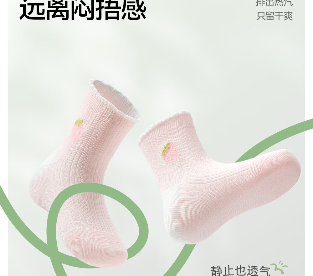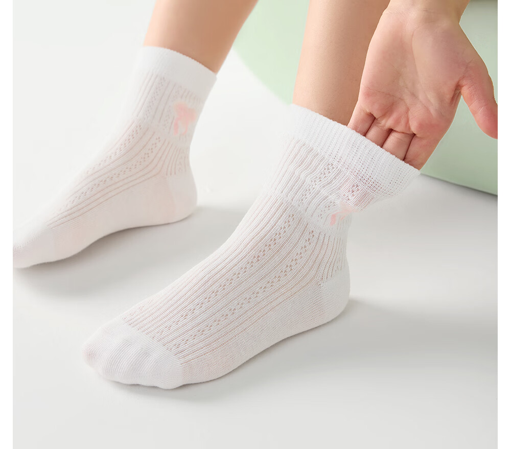 Betis Children's Socks Summer Mesh Breathable Princess Socks Baby Mid-Tube Socks Baby Socks Summer Thin Girls Peach Pink Stripes 5-7 Years Old Suitable for Feet Length 16-18cm