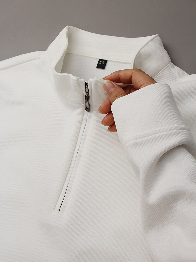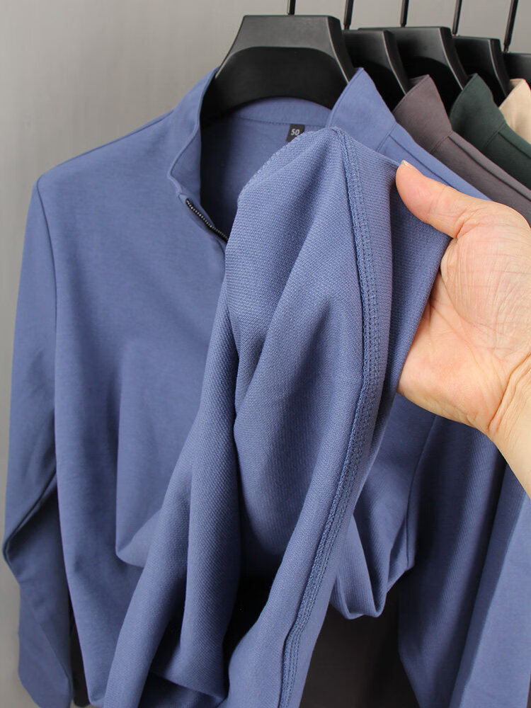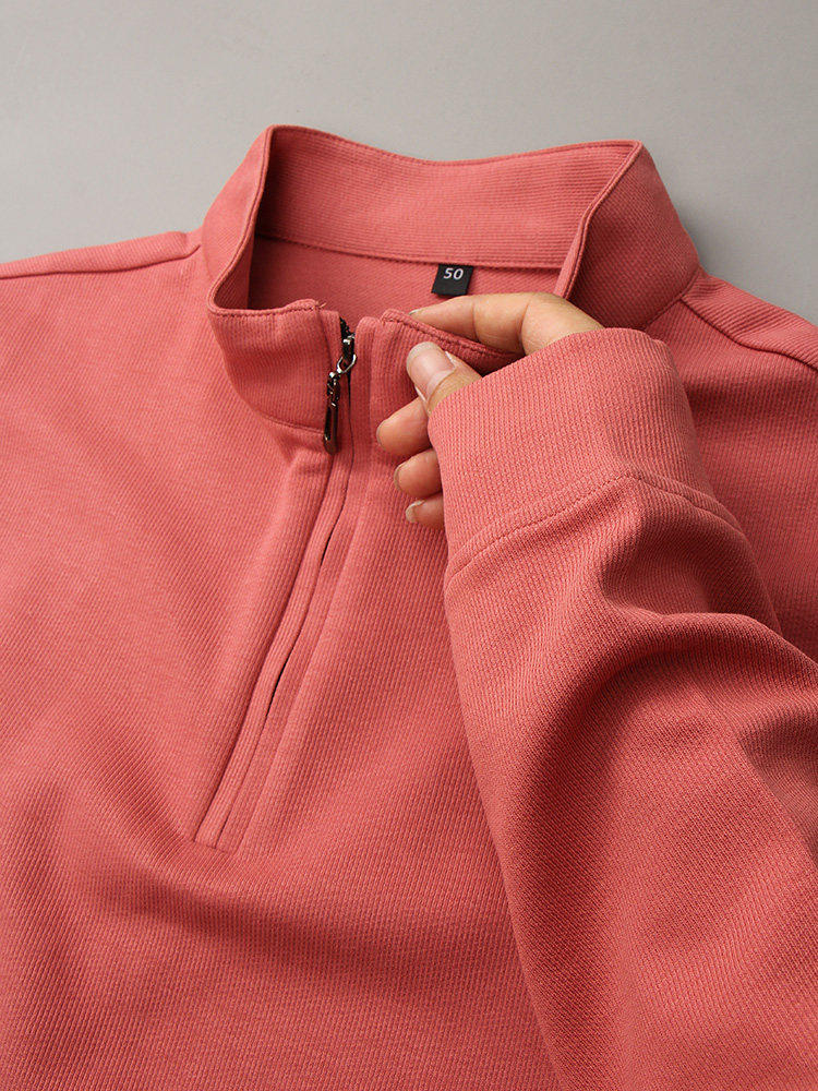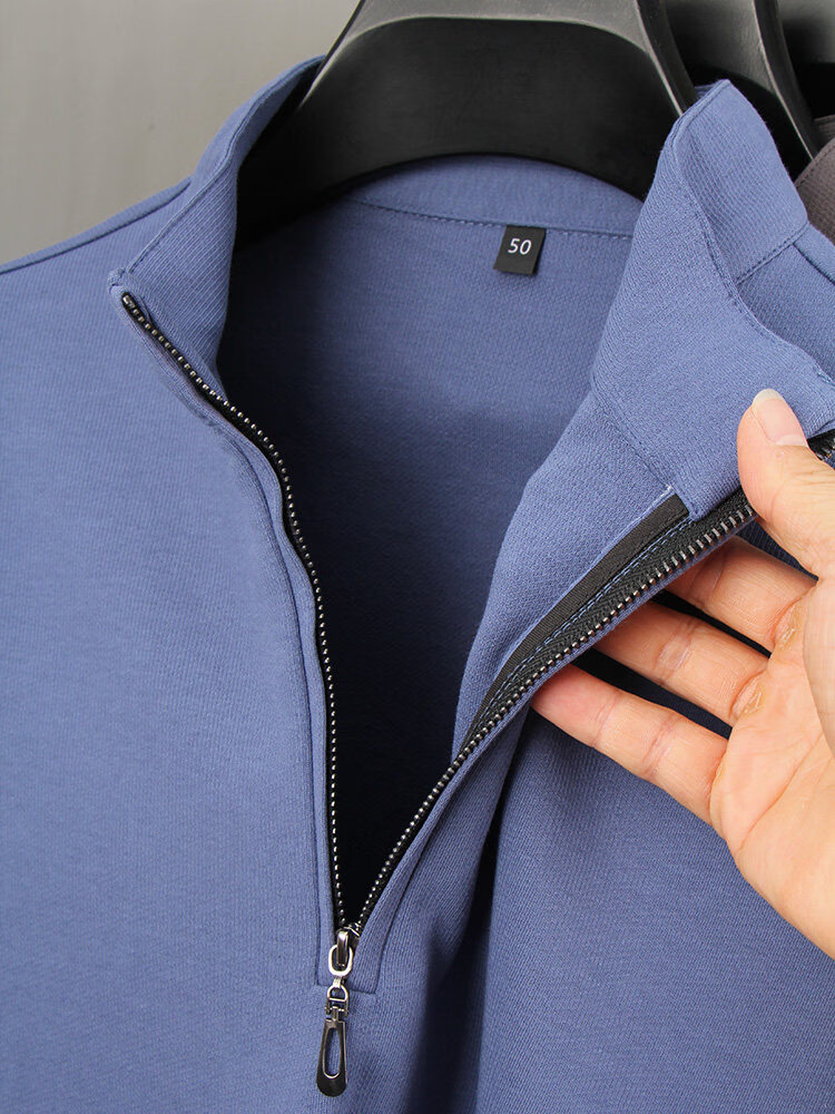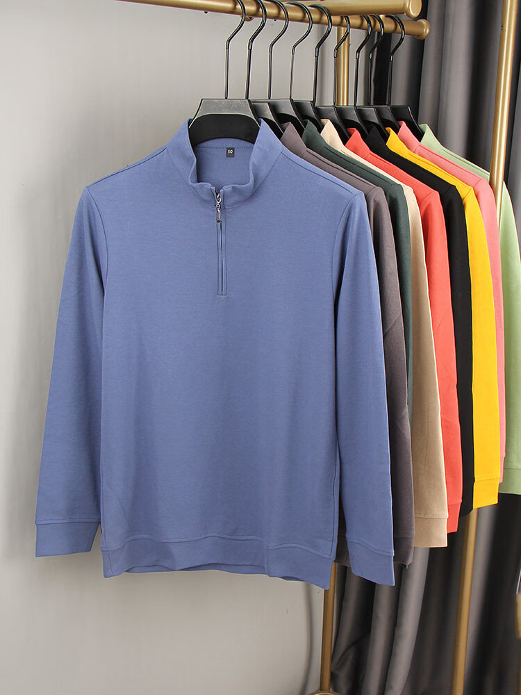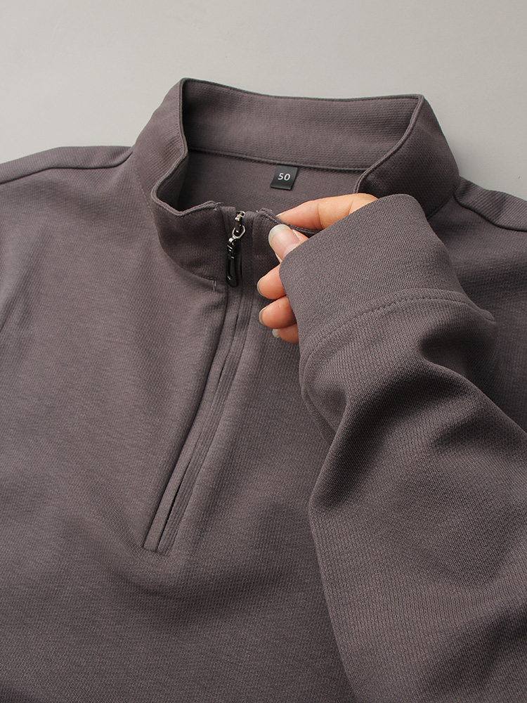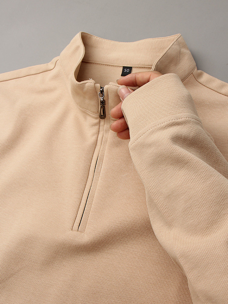 Navigare men's half-zip sweatshirt spring and autumn casual solid color half turtleneck long-sleeved T-shirt men's autumn and winter cotton T inner layering shirt beige M Recommended weight (90-115Jin Jin equals 0.5 kg)