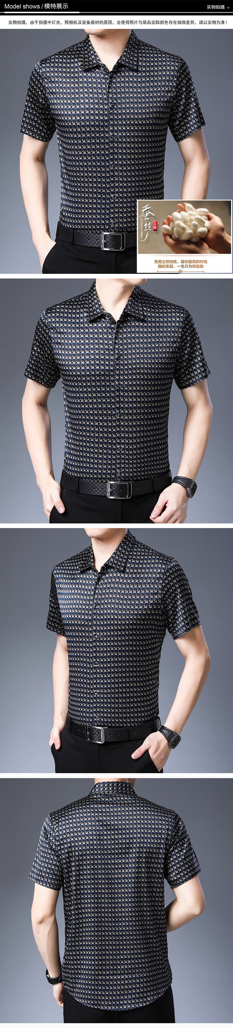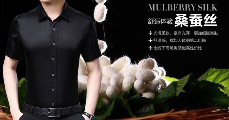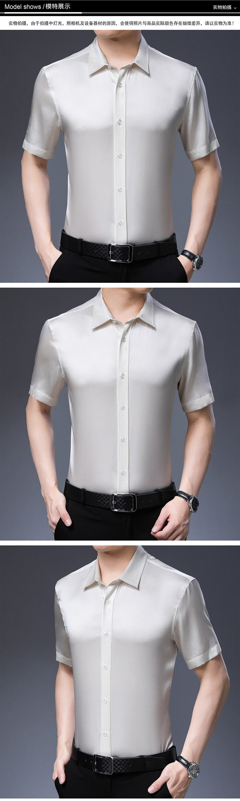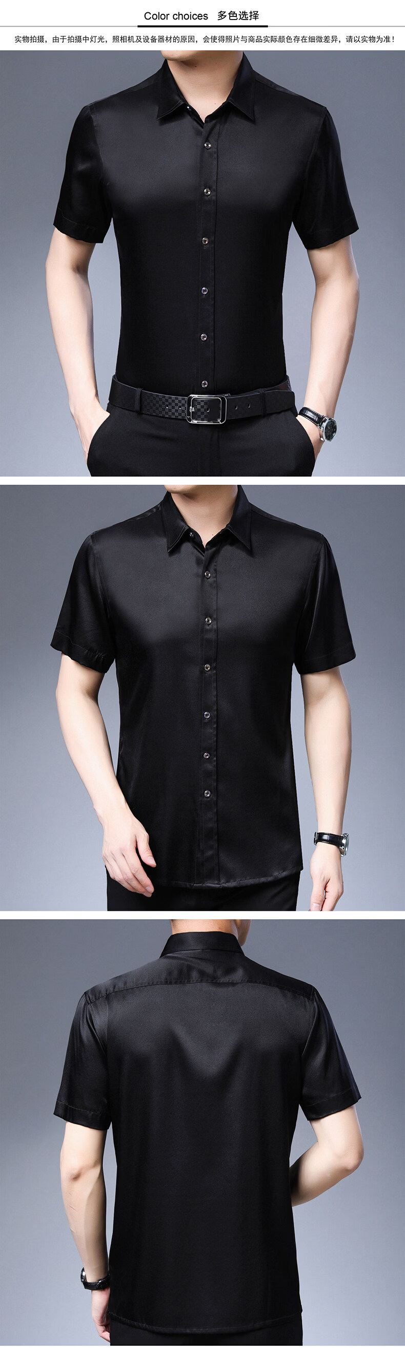 Filippa KG light luxury brand silk short-sleeved shirt for men breathable cool drape thin t-shirt summer half-sleeved shirt 6012 black silk L 170L