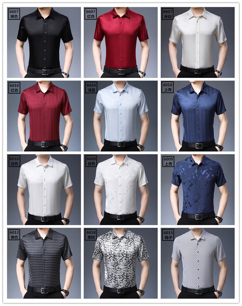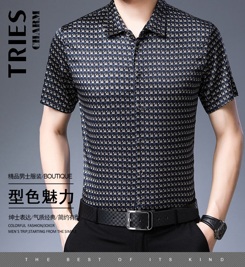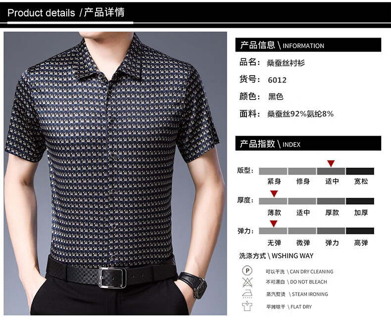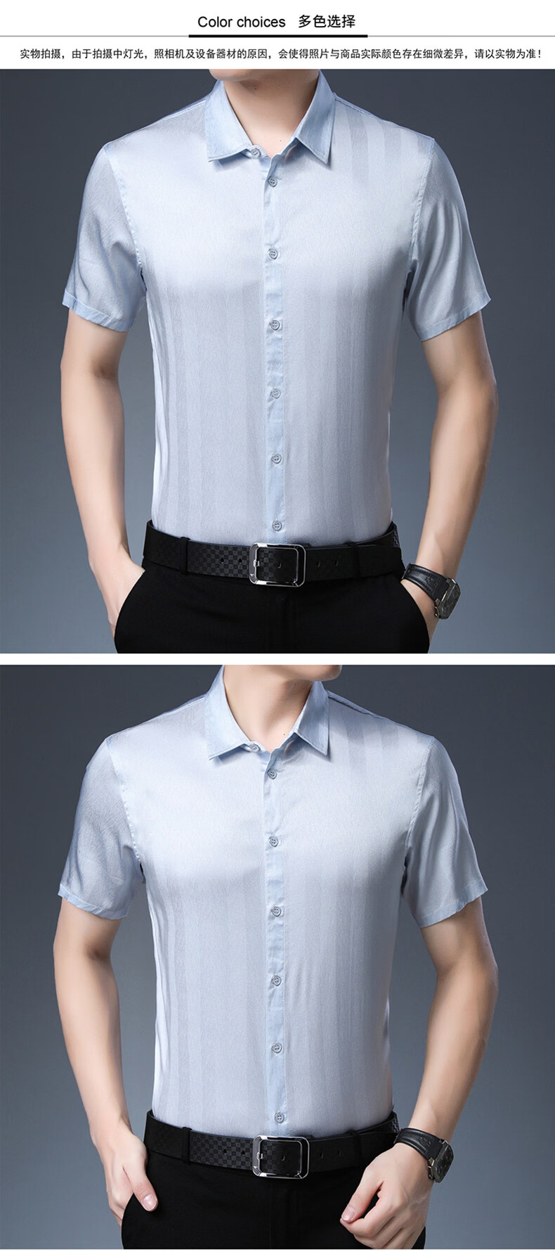 Filippa KG light luxury brand silk short-sleeved shirt for men breathable cool drape thin t-shirt summer half-sleeved shirt 6012 black silk L 170L