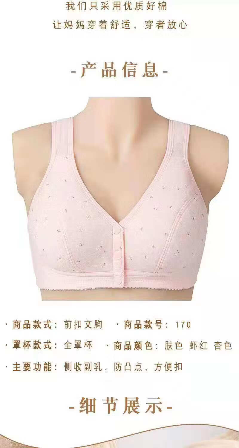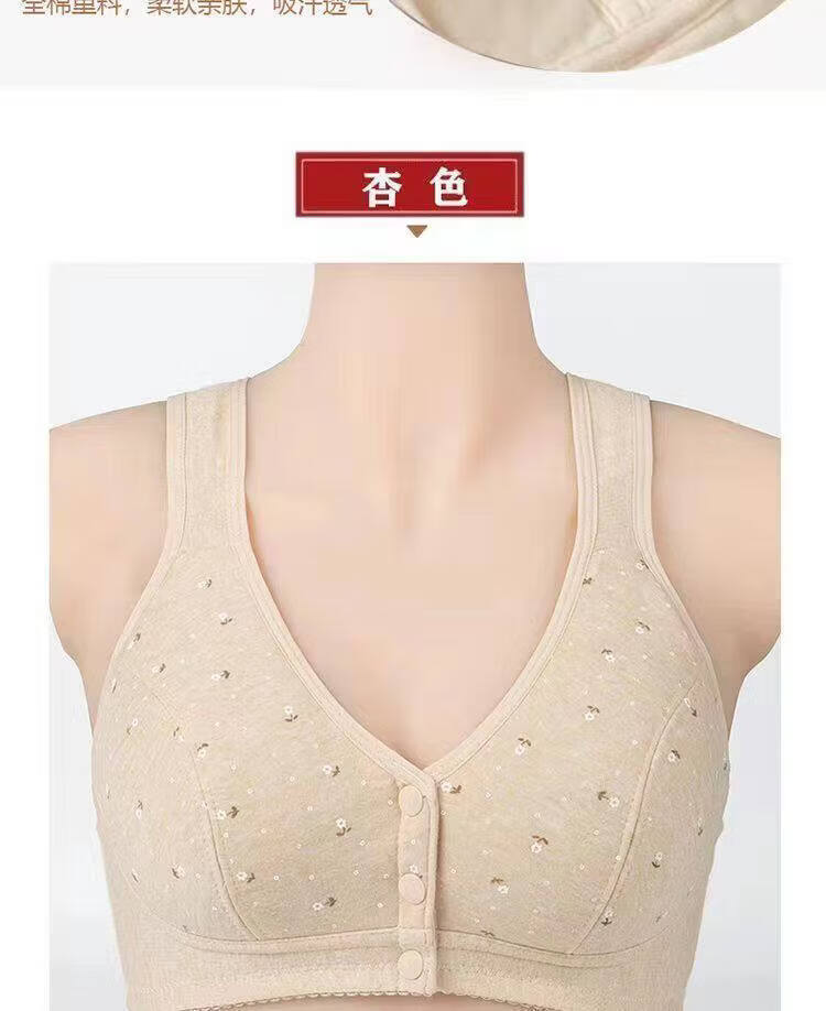 Yalu Mama bras without wires, thin section, middle-aged women's cotton push-up vest-style front buckle large size bra for middle-aged and elderly people, cost-effective, two-piece set, apricot + apricot, one size fits all, 36 yards, 85-95Jin Jin is equal to 0.5 kg