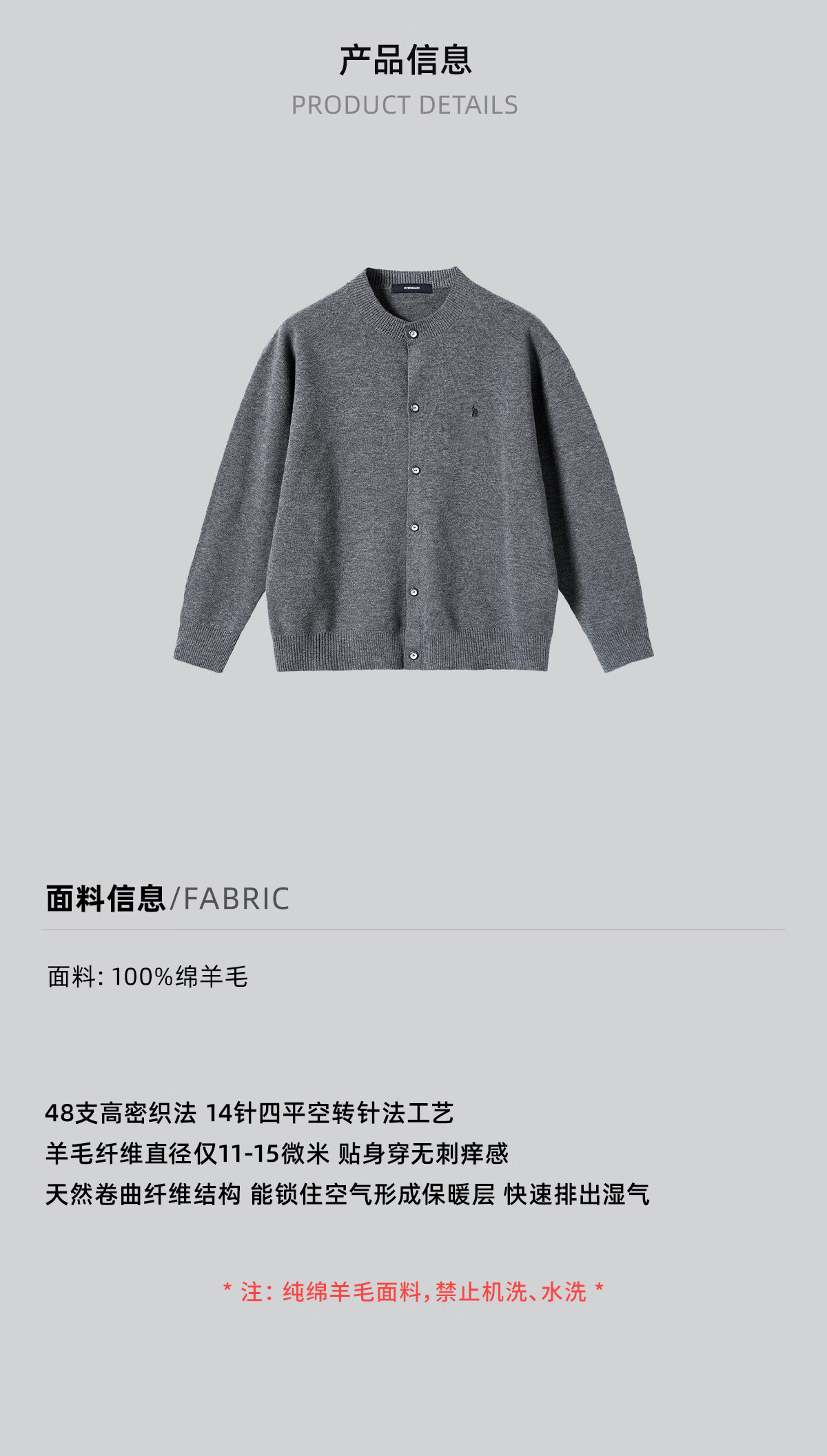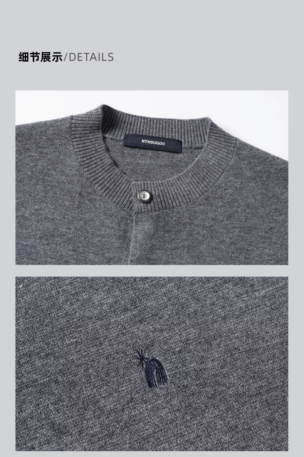 Nanyi/NYHSUGOO 100% sheep wool 48 counts 14 needles four flat idle stitch sweater cardigan 15175 men dark gray L 131-150Jin Jin equals 0.5 kg