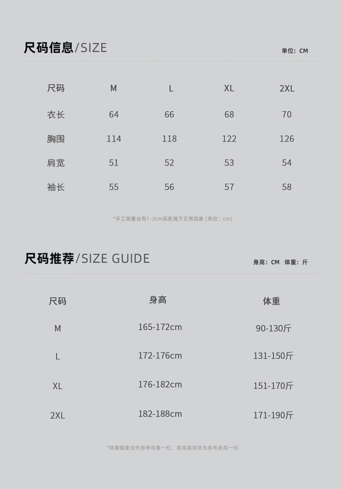 China (cm) 165 / 88-90 170 / 96-98 175 / 108-110 180 / 118-122 185 / 126-130