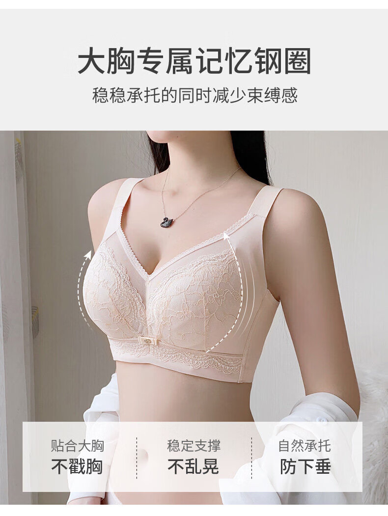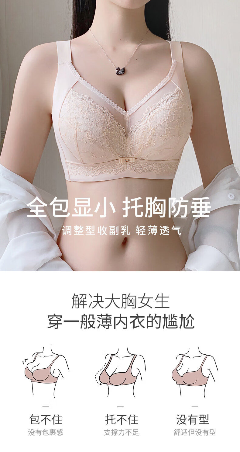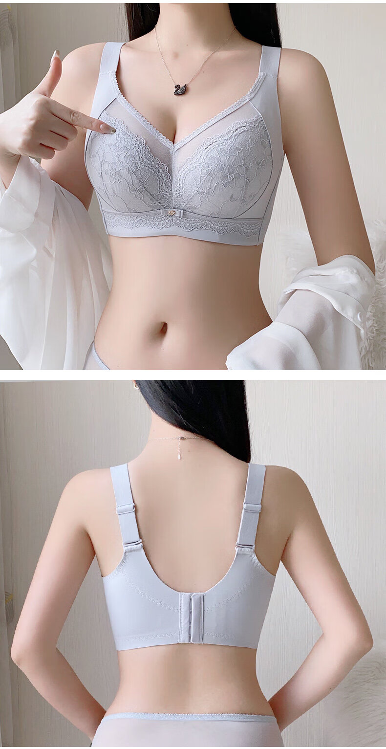 MDUG Light Luxury Brand 2026 New Seamless Lace Underwear Women's Bra Big Breast Shows Small Pinch-Up Anti-Noble Skin M x 34/75BC