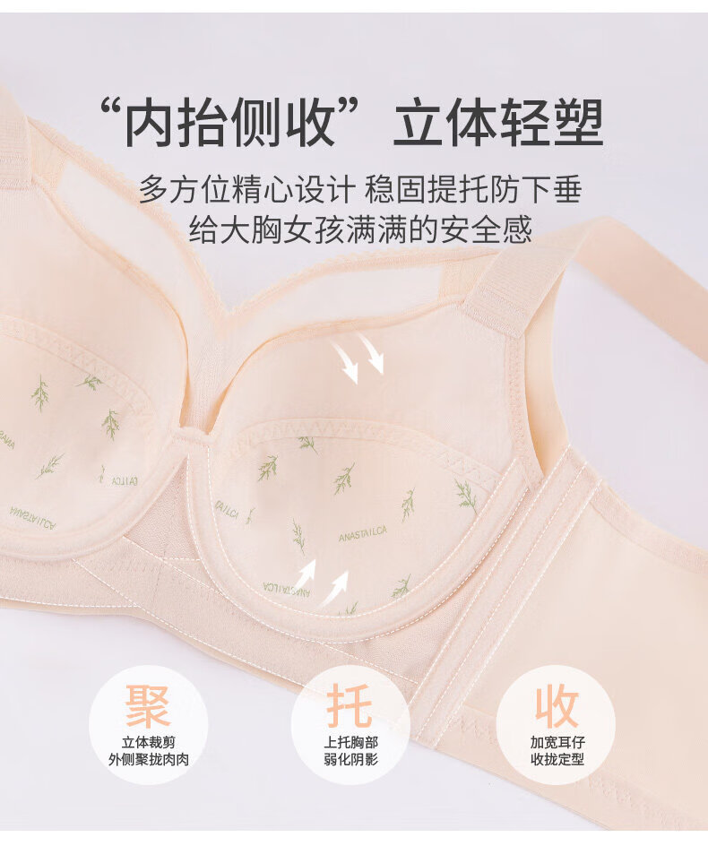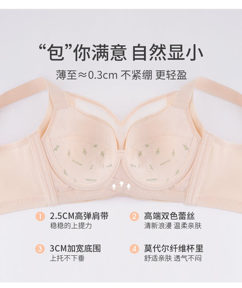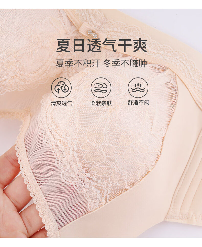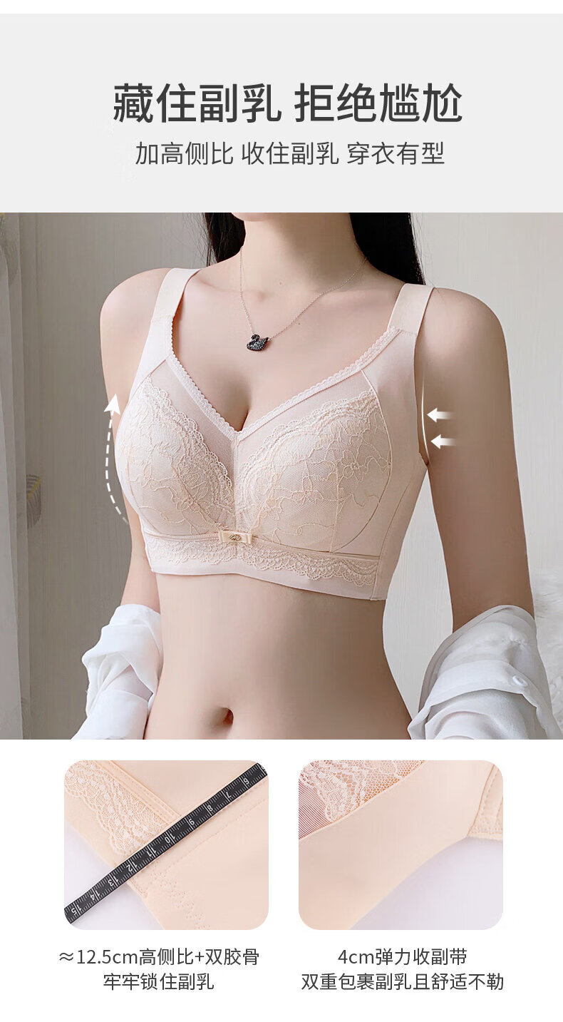 MDUG Light Luxury Brand 2026 New Seamless Lace Underwear Women's Bra Big Breast Shows Small Pinch-Up Anti-Noble Skin M x 34/75BC