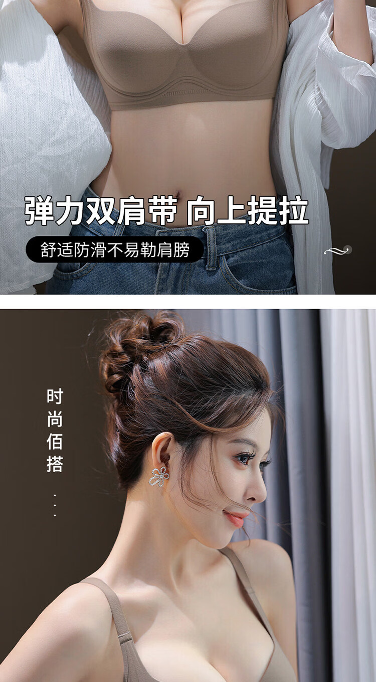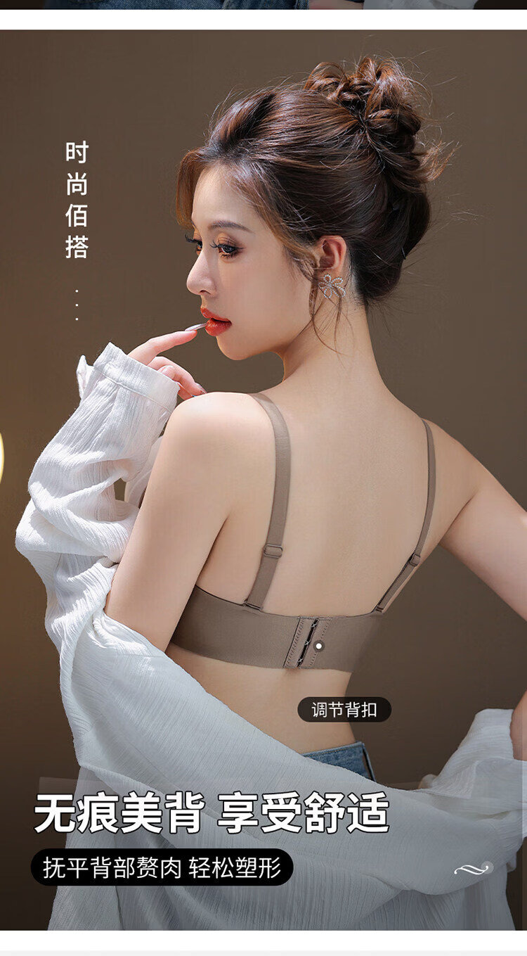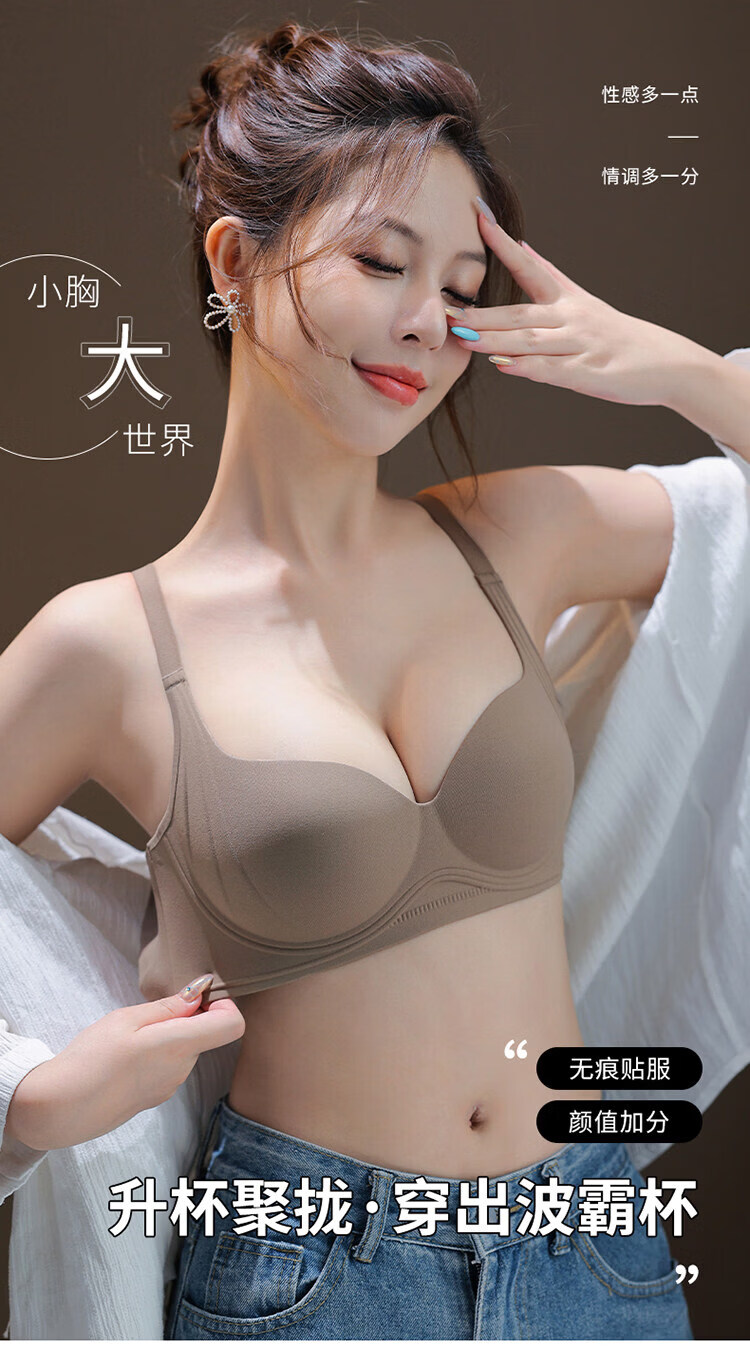 MDUG Light Luxury Brand 2026 New Thin Shoulder Strap Seamless Underwear Women's Small Breasts Gather Up to Show Bigger Side Breasts Brown S x 32/70AB