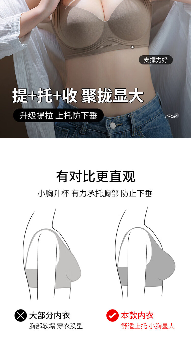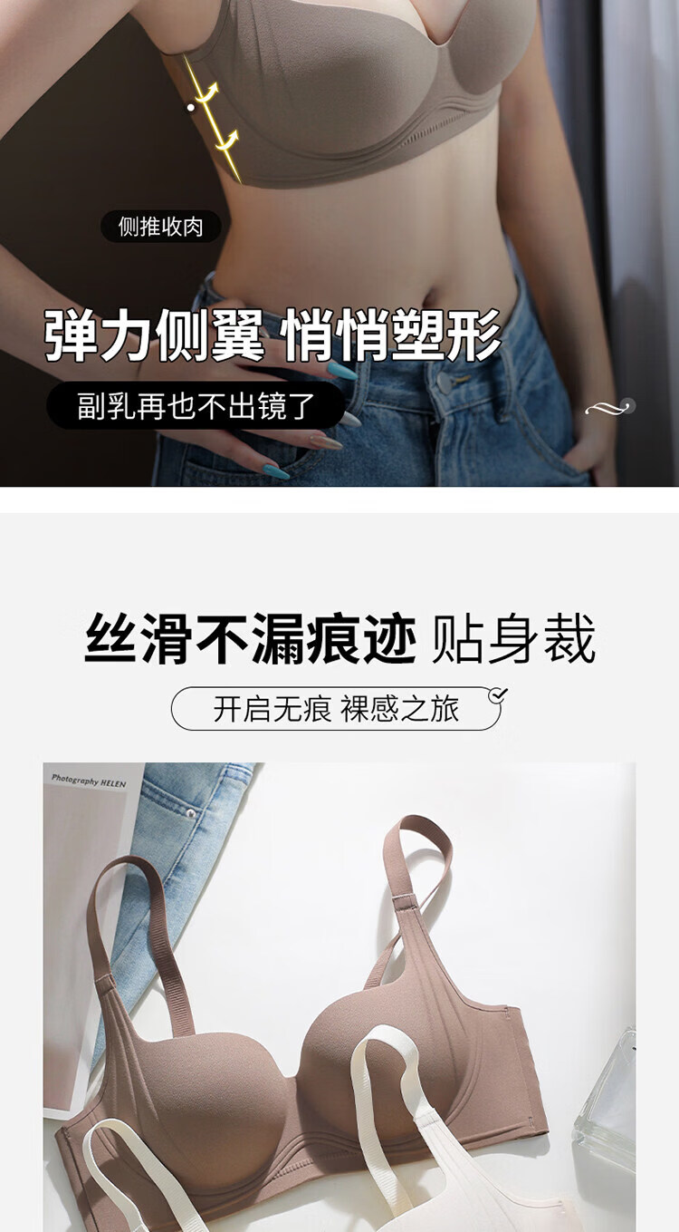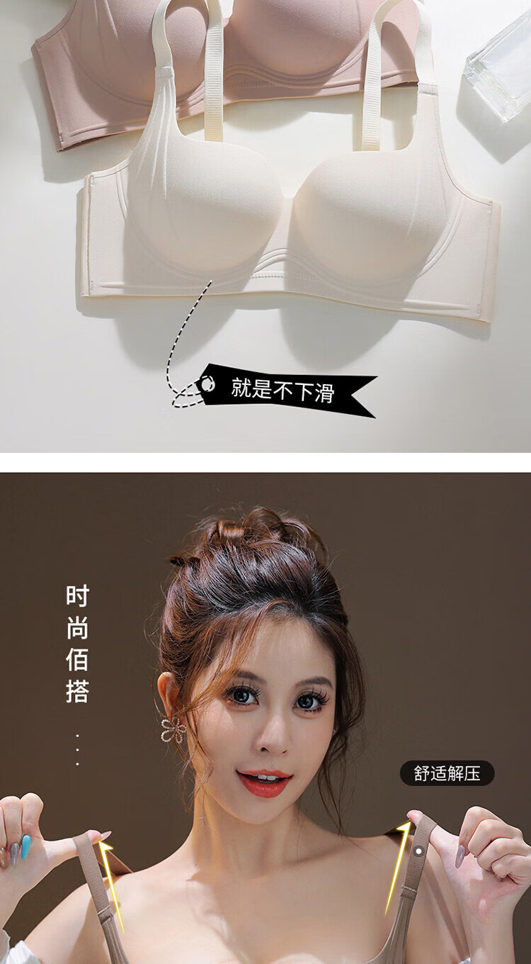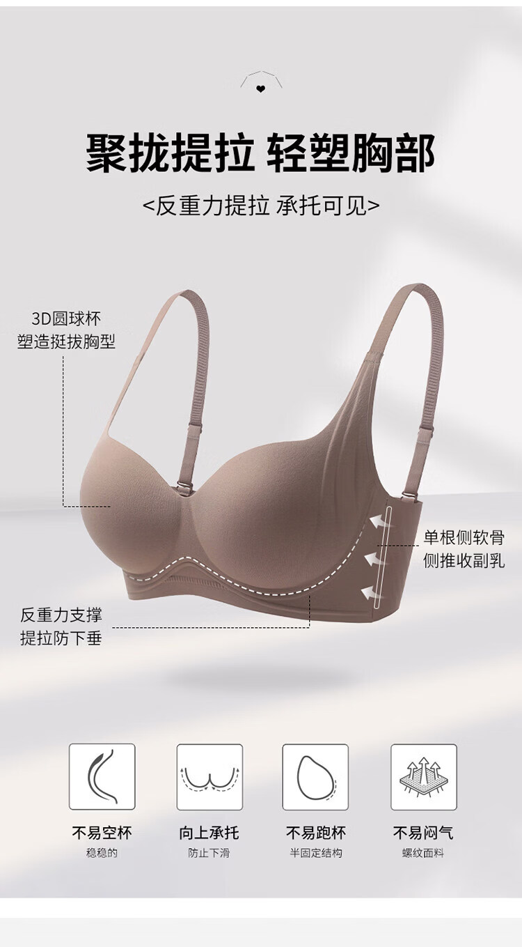 MDUG Light Luxury Brand 2026 New Thin Shoulder Strap Seamless Underwear Women's Small Breasts Gather Up to Show Bigger Side Breasts Brown S x 32/70AB