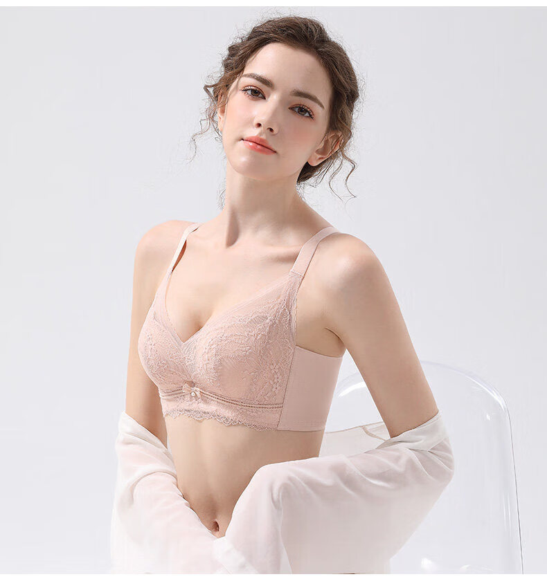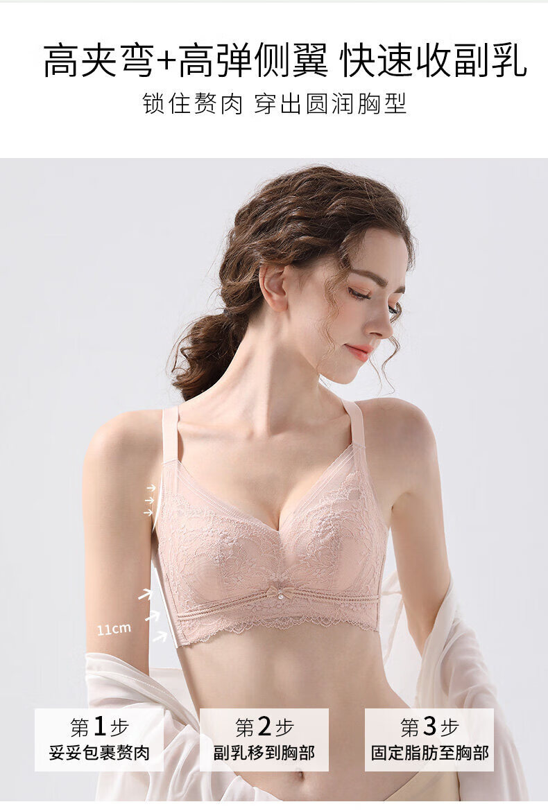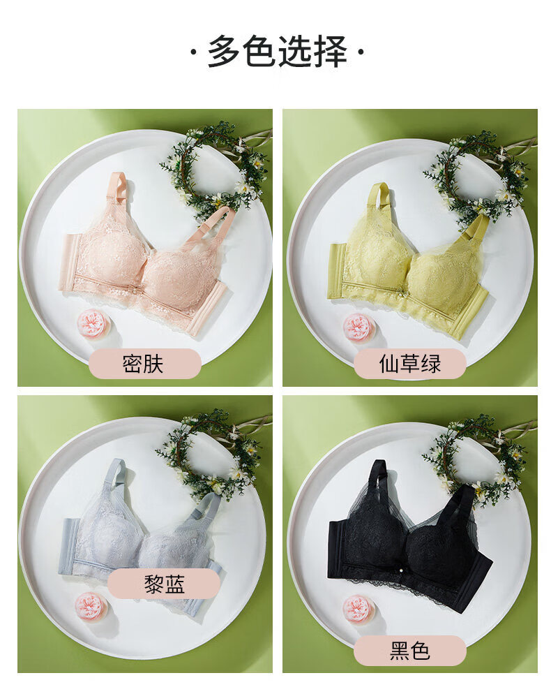 MDUG light luxury brand 2026 new spaghetti straps push-up lace underwear for women with big breasts showing smaller breasts, fairy grass green M x suitable for 32/70ABC