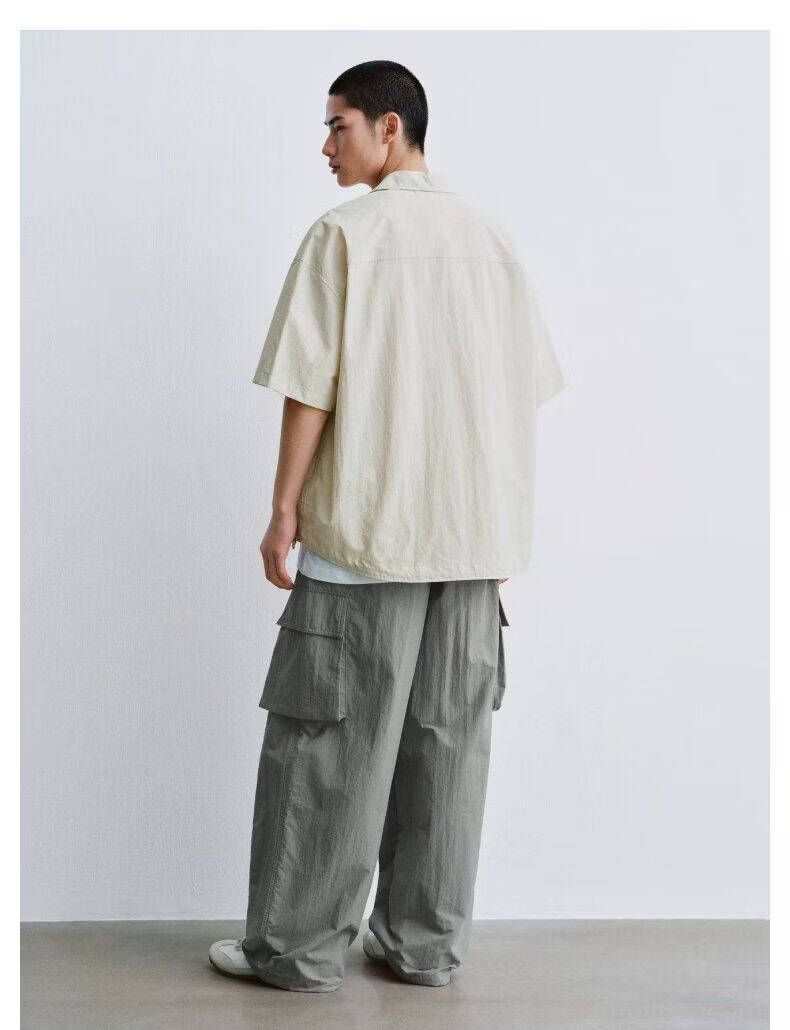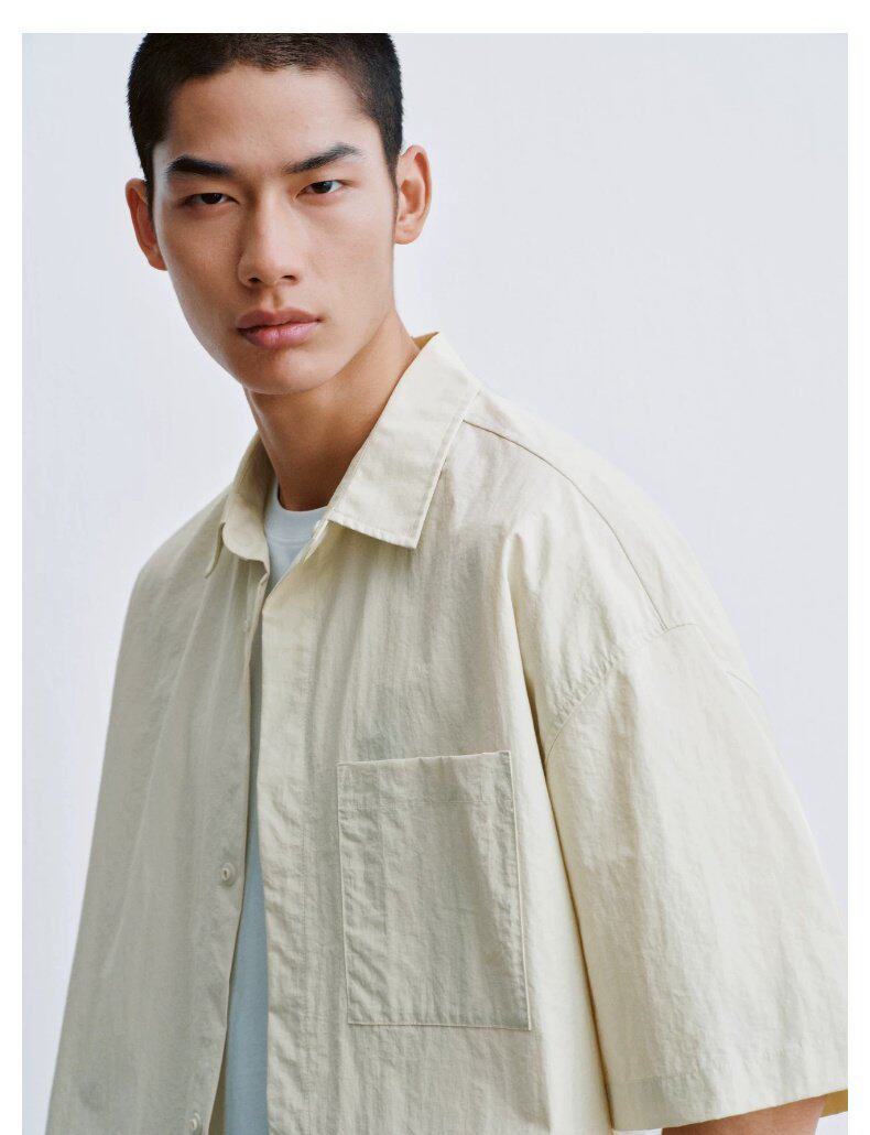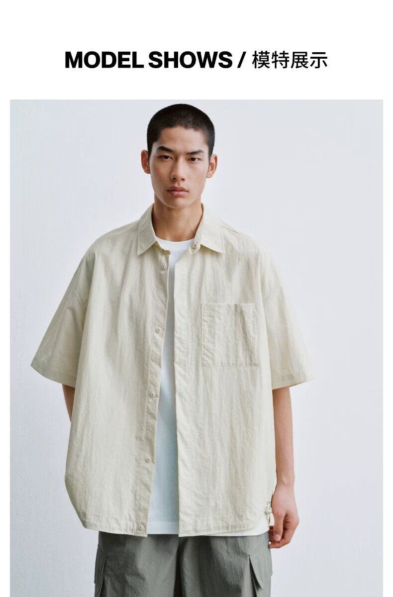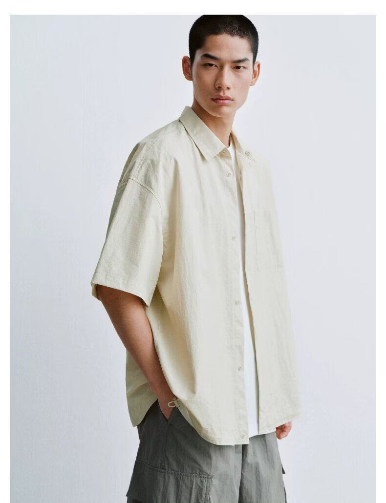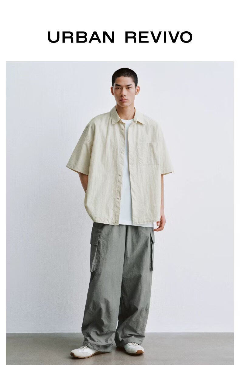 UR2026 new summer men's casual lapel drawstring patch pocket cardigan shirt UUY260017 off-white S