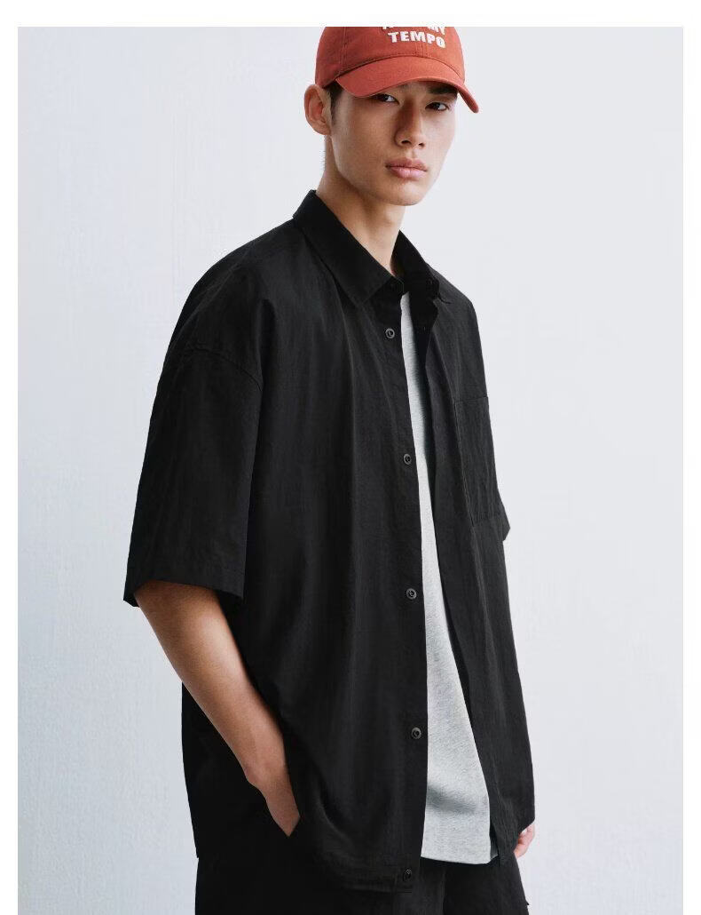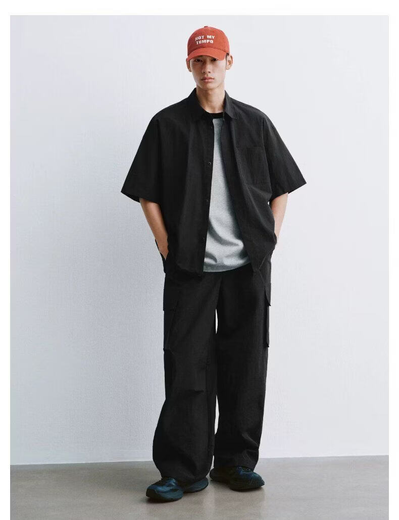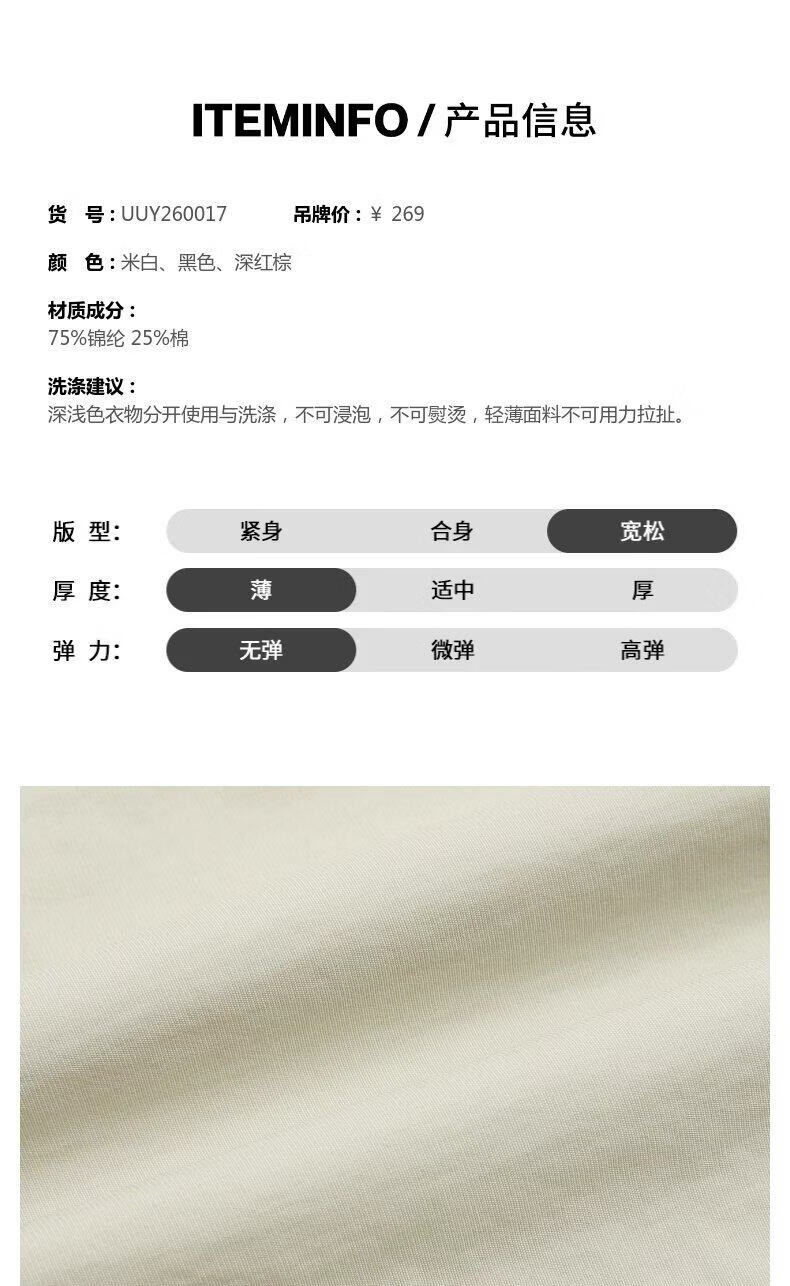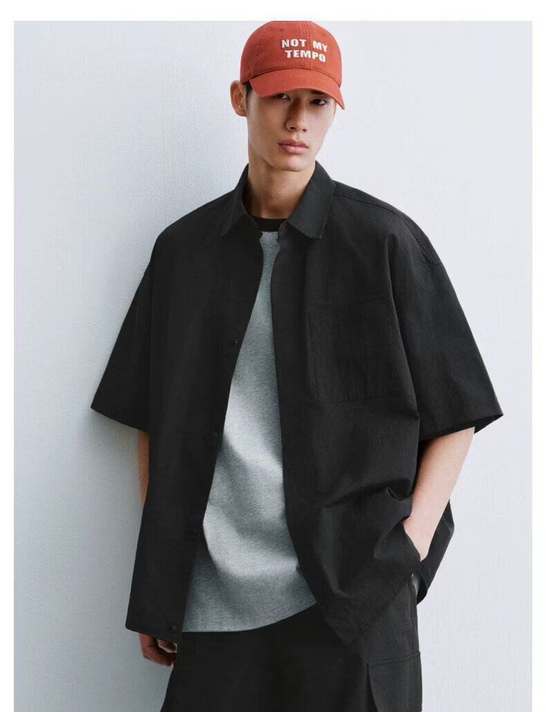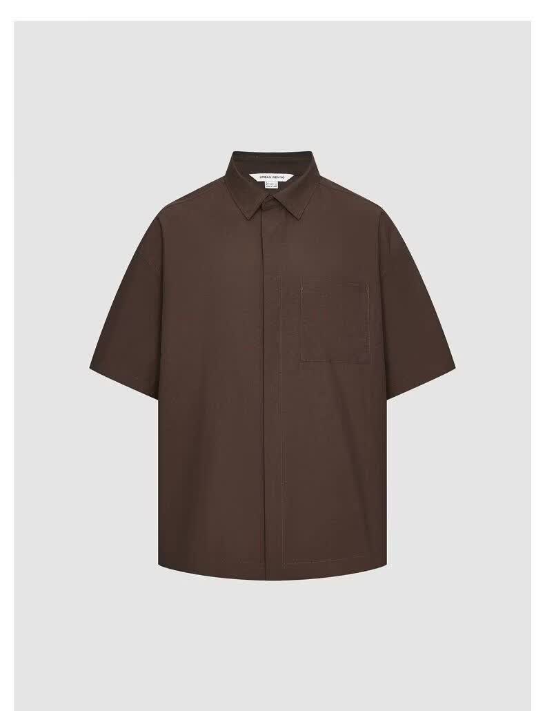 UR2026 new summer men's casual lapel drawstring patch pocket cardigan shirt UUY260017 off-white S
