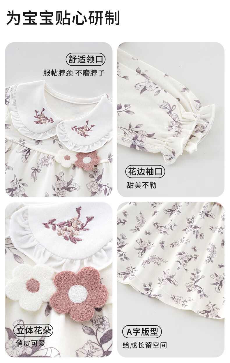 Yingbeiyi baby girl spring and autumn floral dress 2026 new baby cotton princess dress long-sleeved skirt Huaying Shiguang 73