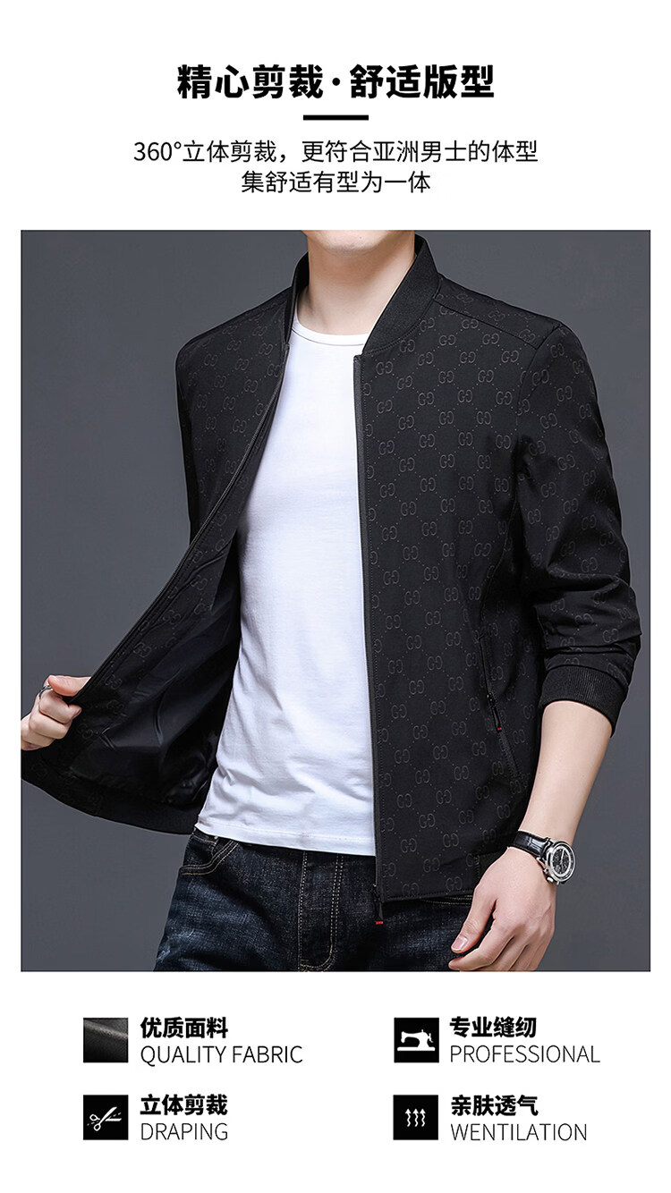 TOME BKOWAIE light luxury high-end jacket men's spring and autumn 2026 new baseball collar casual jacket men's 8623 black spring and autumn style XL 180 recommended 135-150 Jin Jin equals 0.5 kg