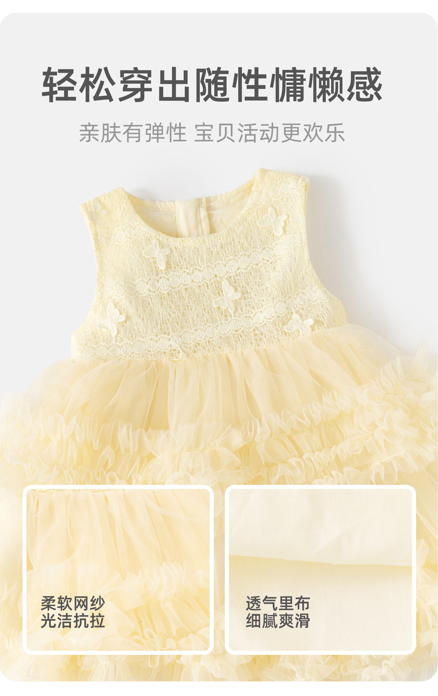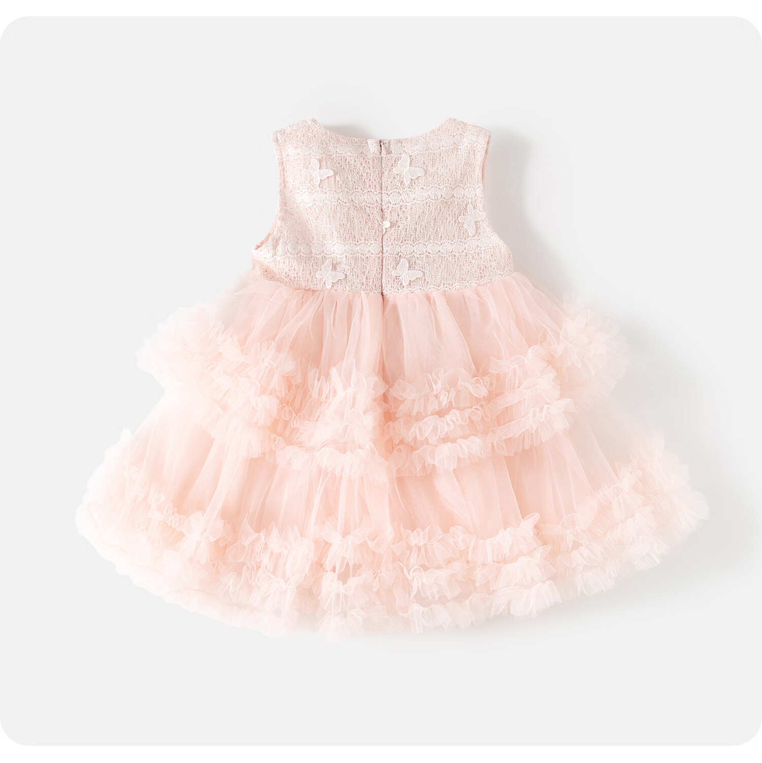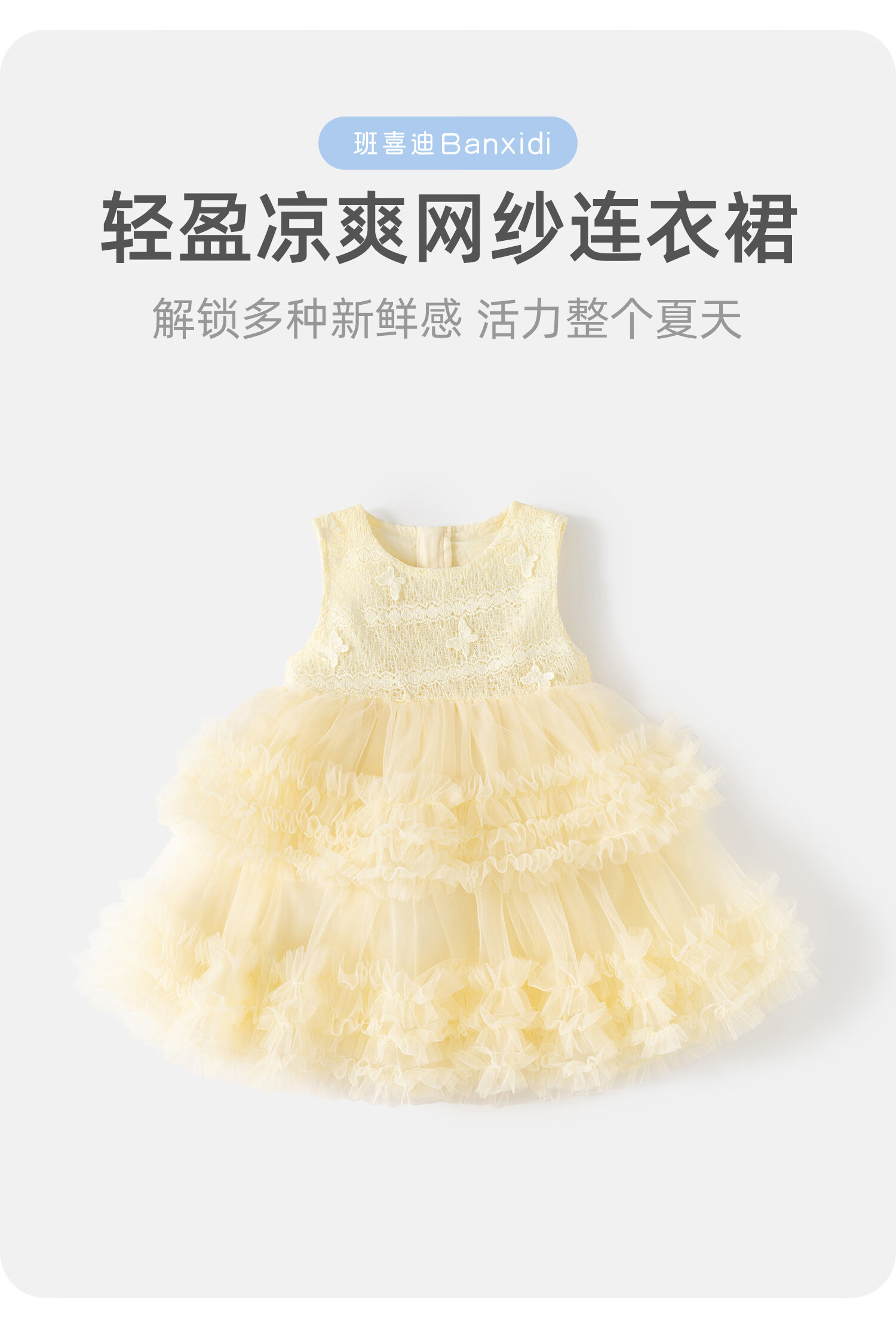 Banxidi girls dress summer style baby princess dress summer children mesh tutu skirt one-year-old dress vest dress pink 100