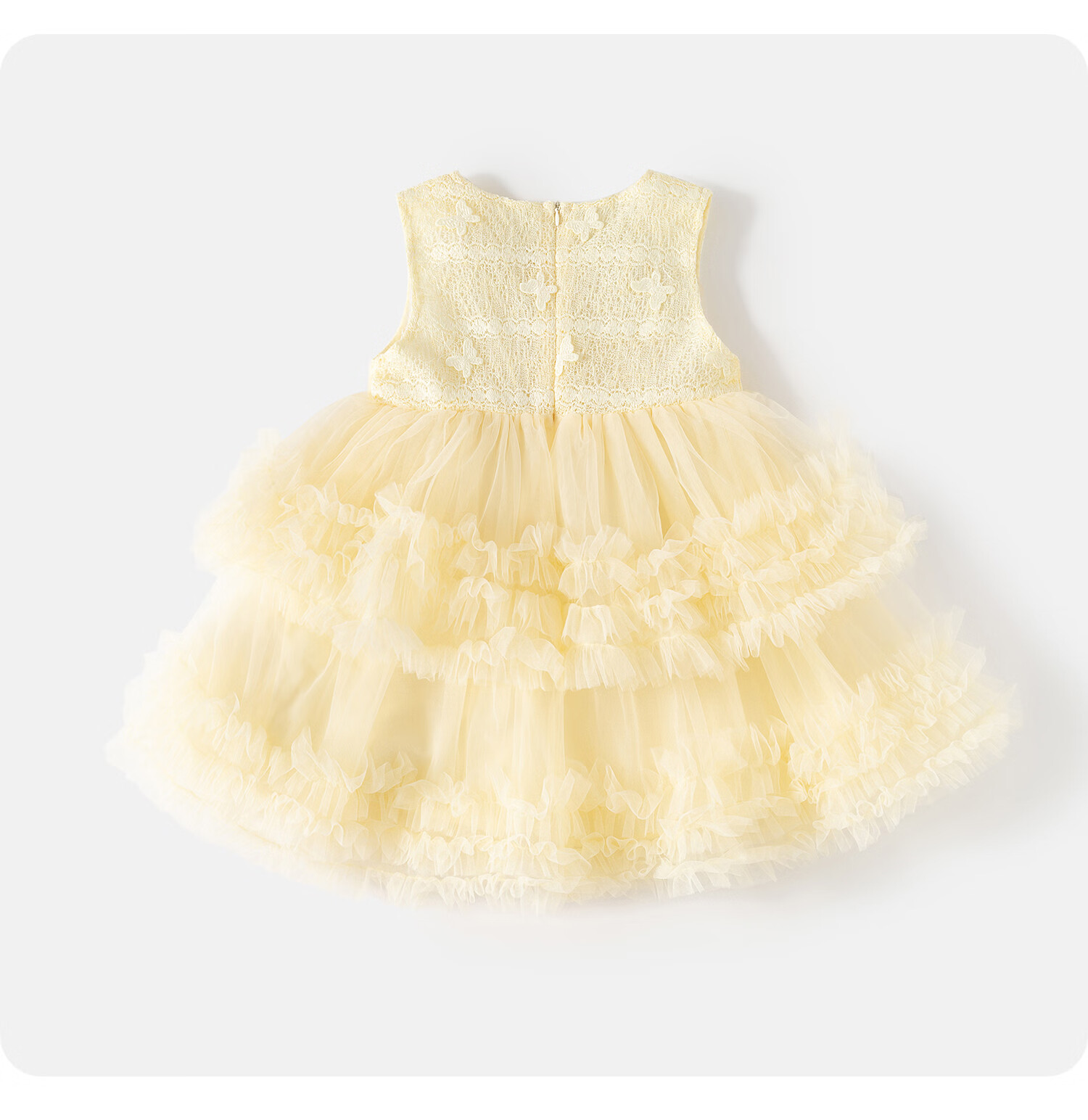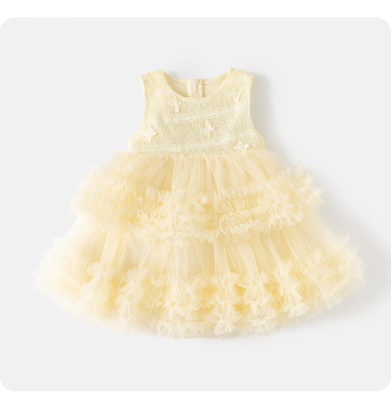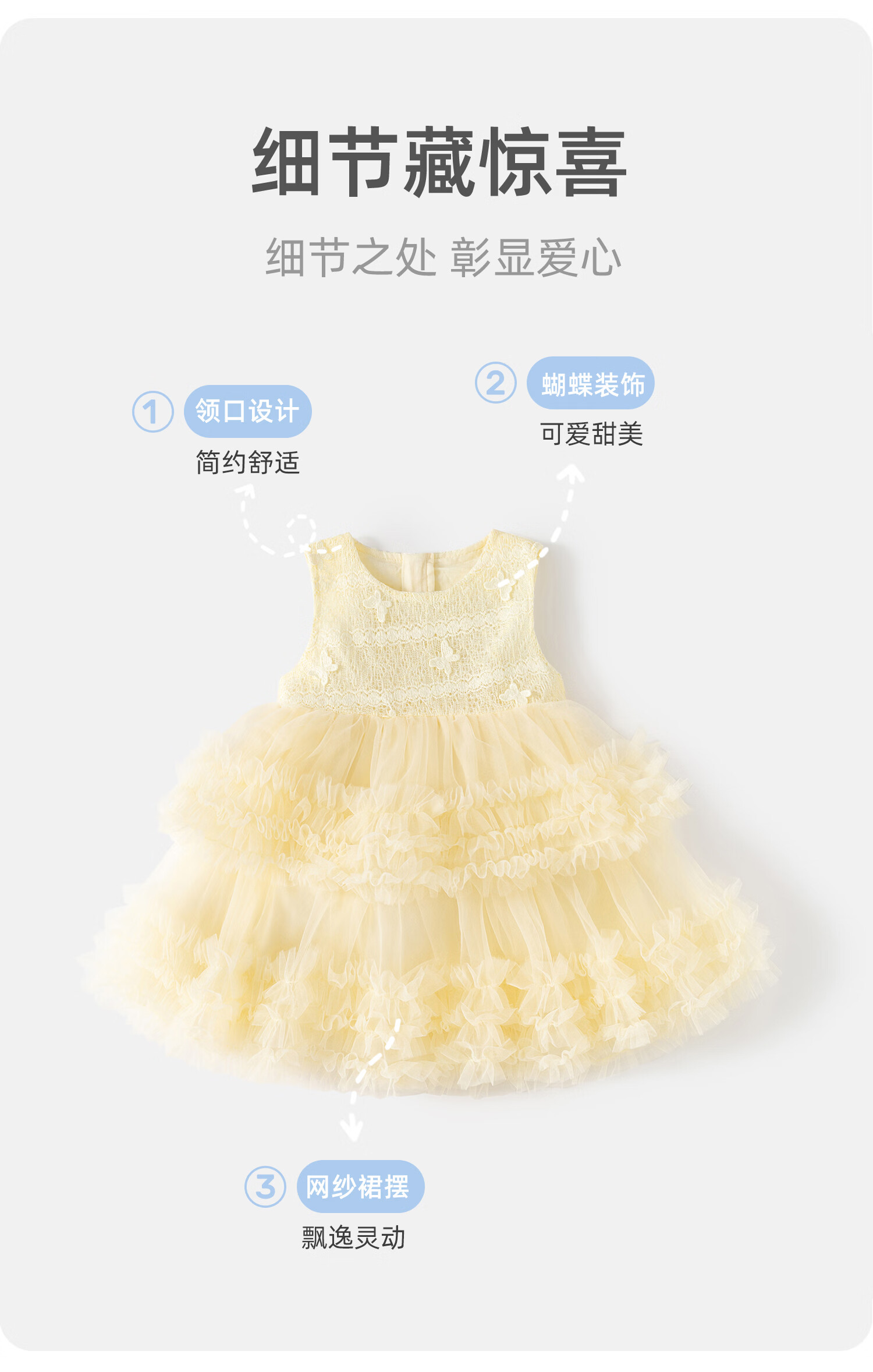Banxidi girls dress summer style baby princess dress summer children mesh tutu skirt one-year-old dress vest dress pink 100