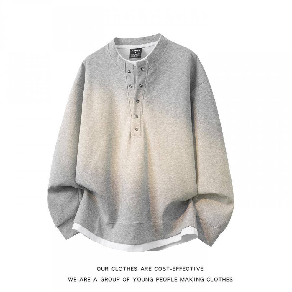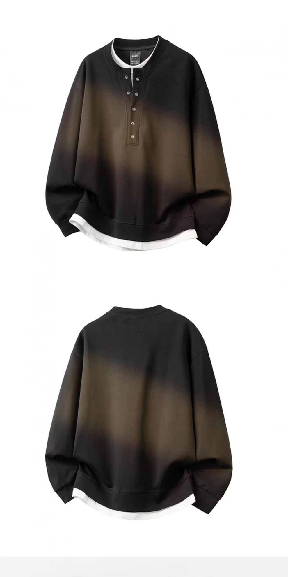 Navigare small sailboat fake two-piece long-sleeved sweatshirt for men, trendy brand-style American casual large size men's T-shirt bottoming top, black, high quality version, the real thing is solid color M