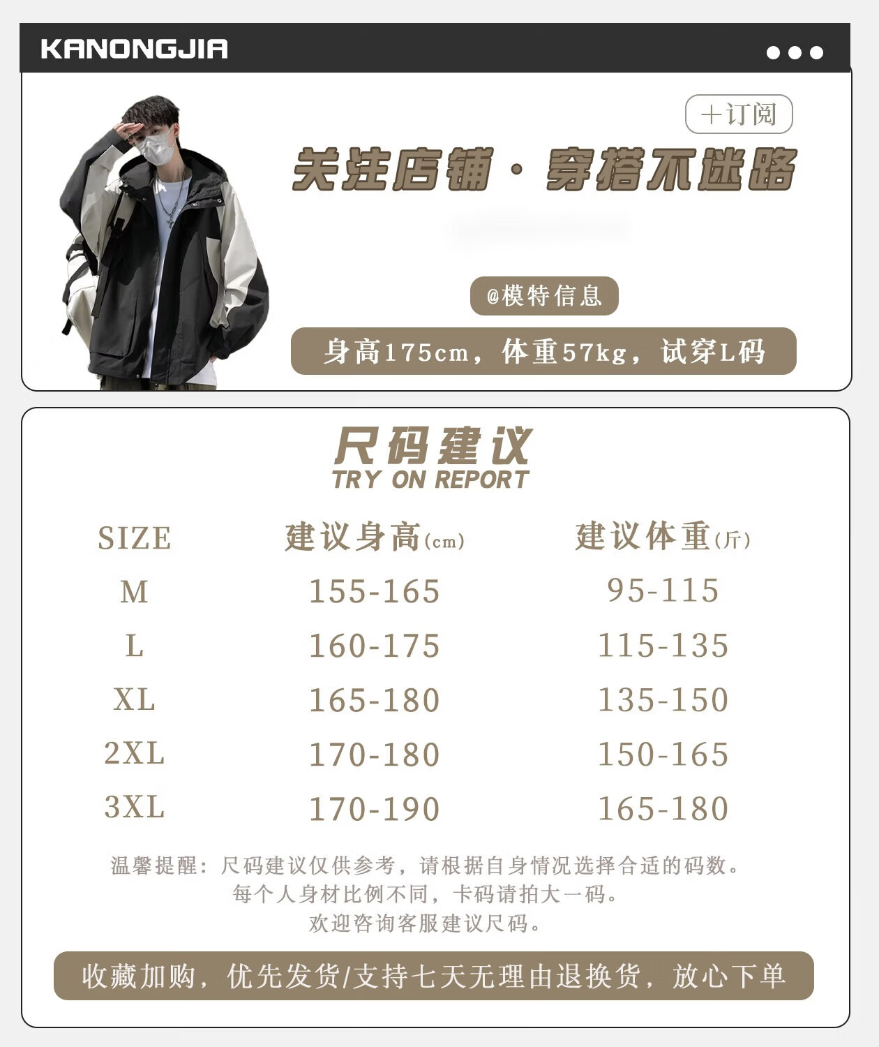 China (cm) 165 / 88-90 170 / 96-98 175 / 108-110 180 / 118-122 185 / 126-130