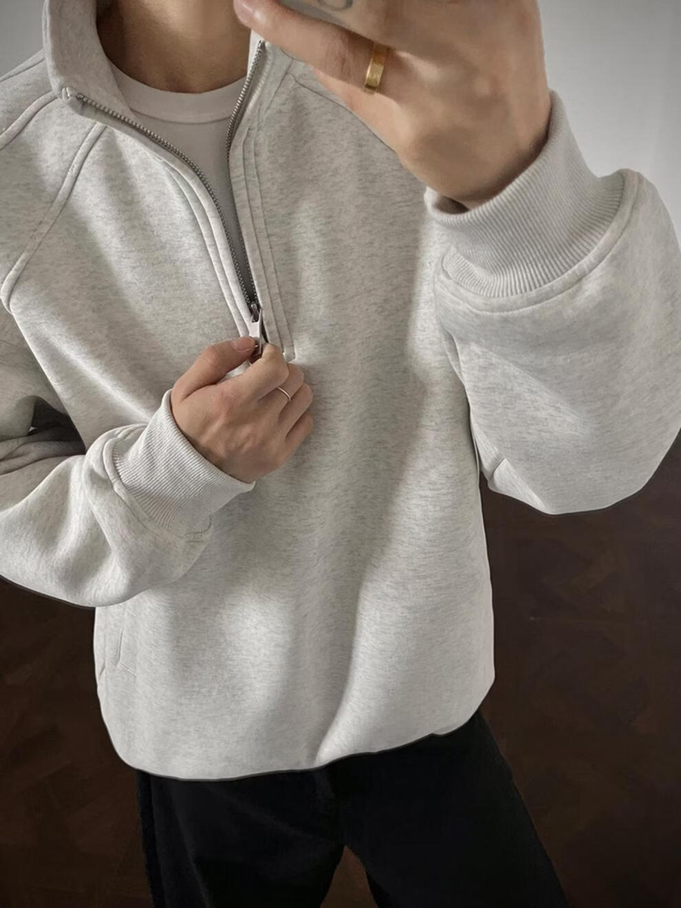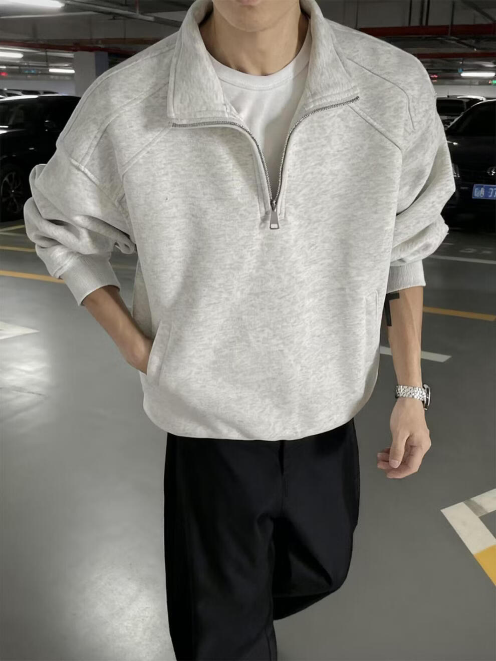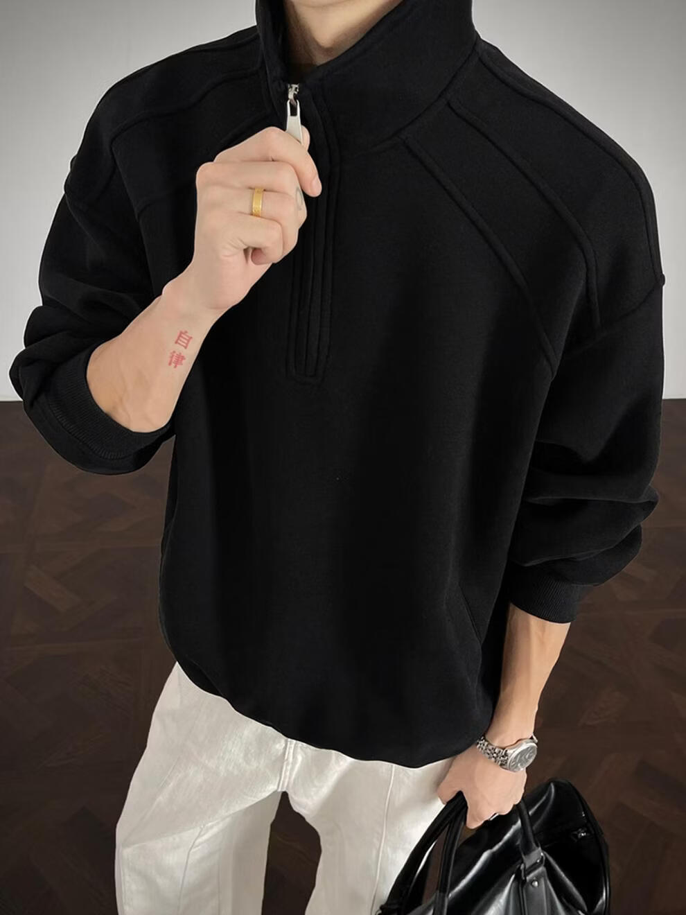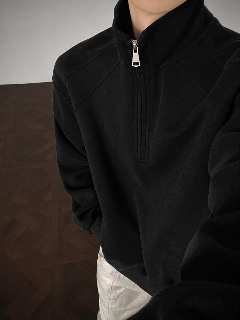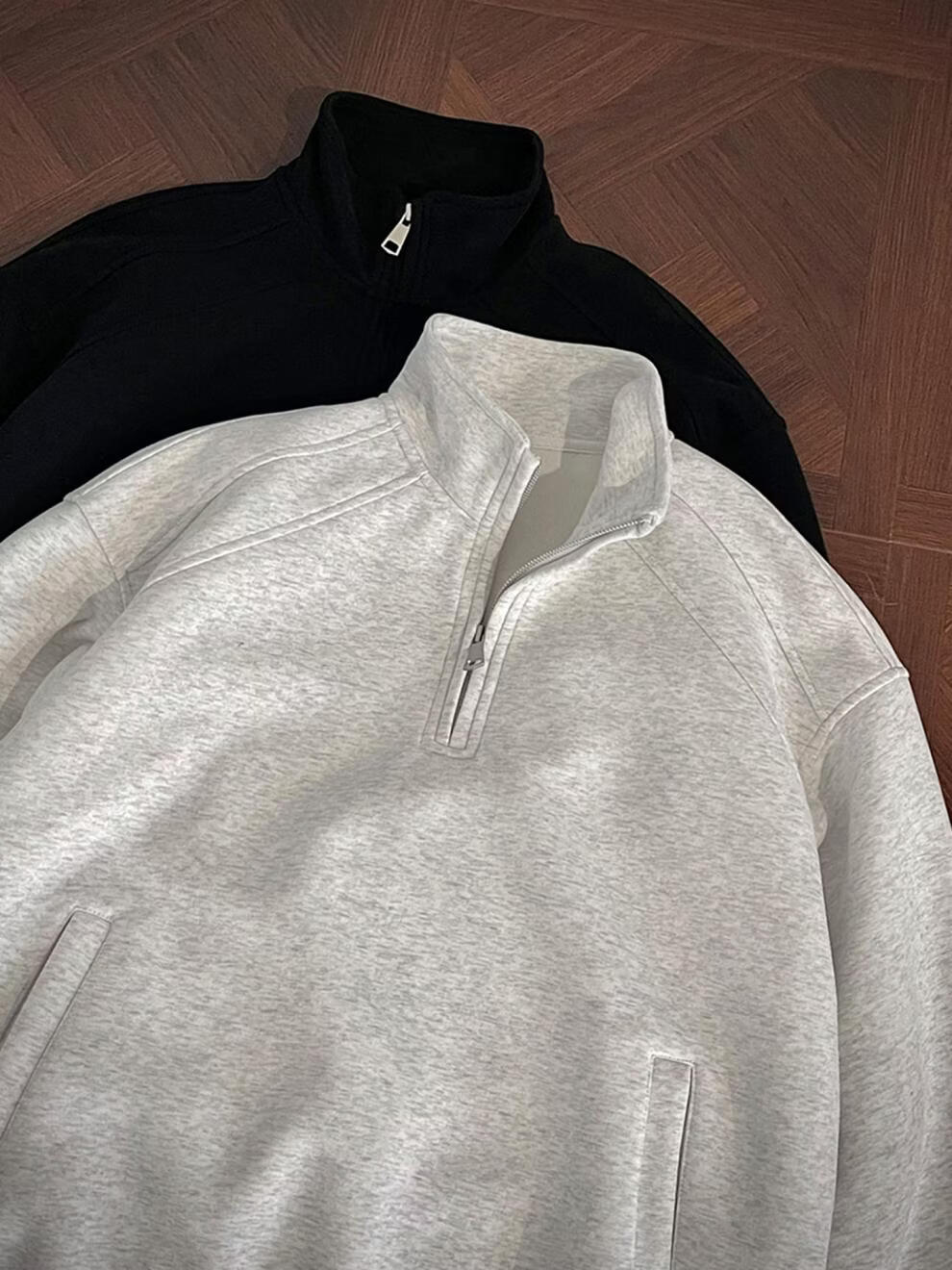 DEREJERINE American shoulder half-zip stand-up collar sweatshirt men's spring heavyweight inner layer cleanfit couple jacket black L 120-135Jin Jin equals 0.5 kg