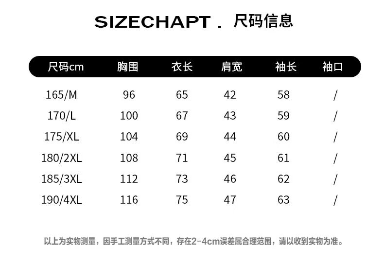 China (cm) 165 / 88-90 170 / 96-98 175 / 108-110 180 / 118-122 185 / 126-130