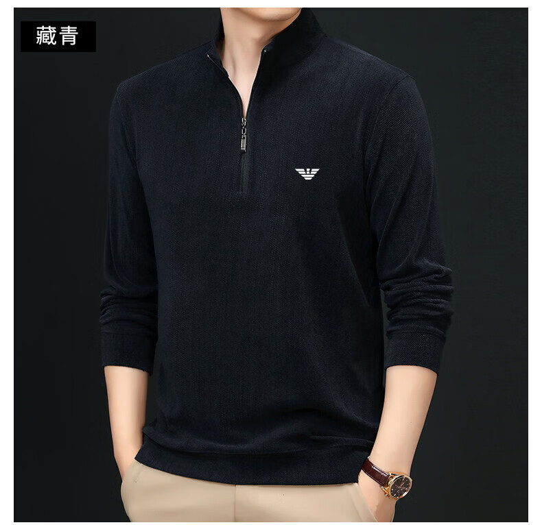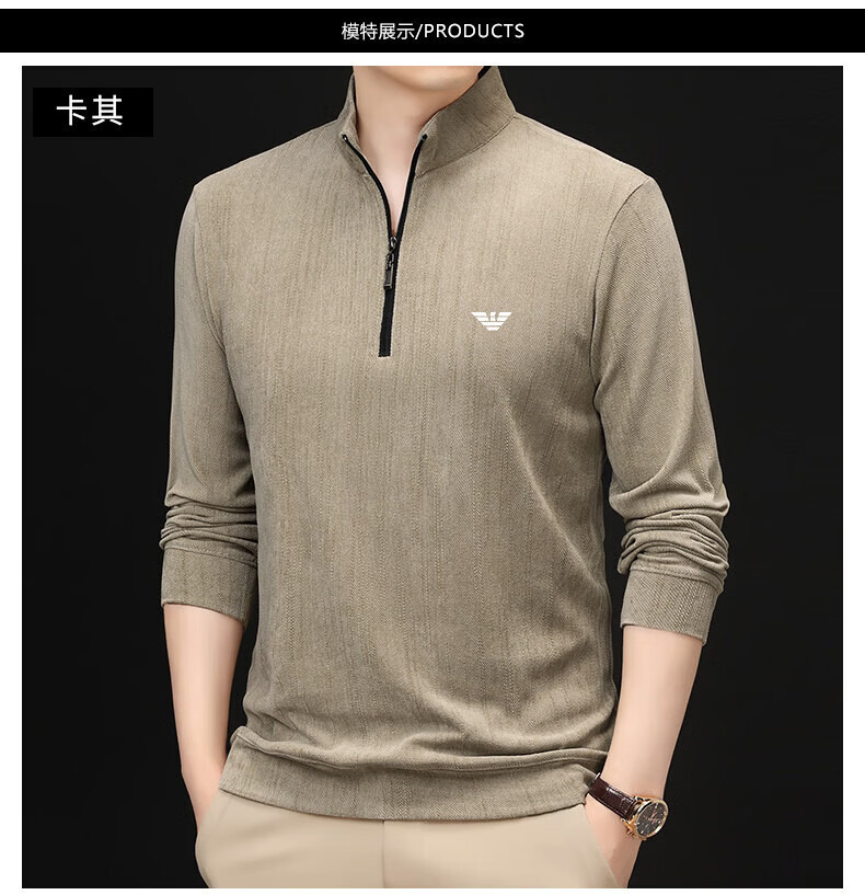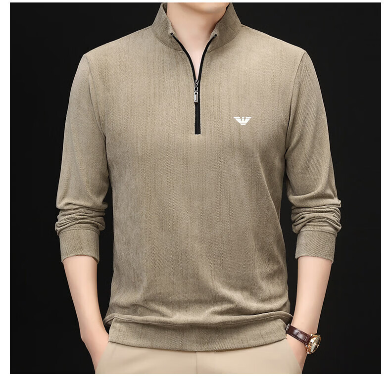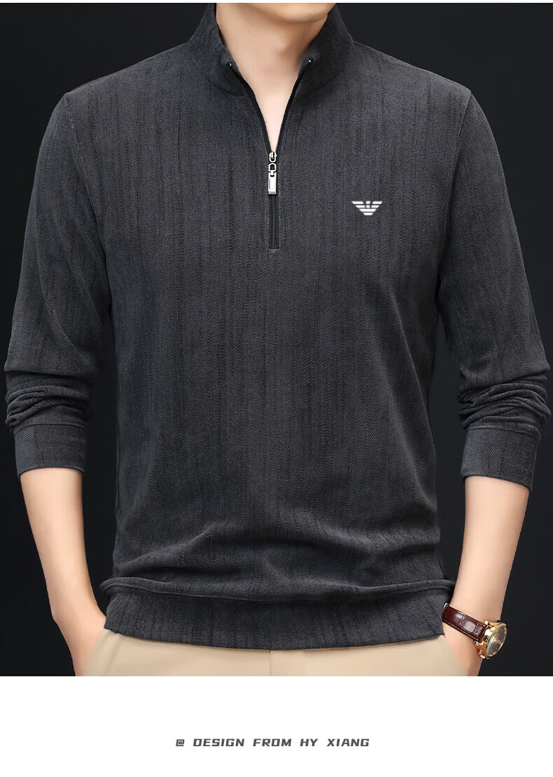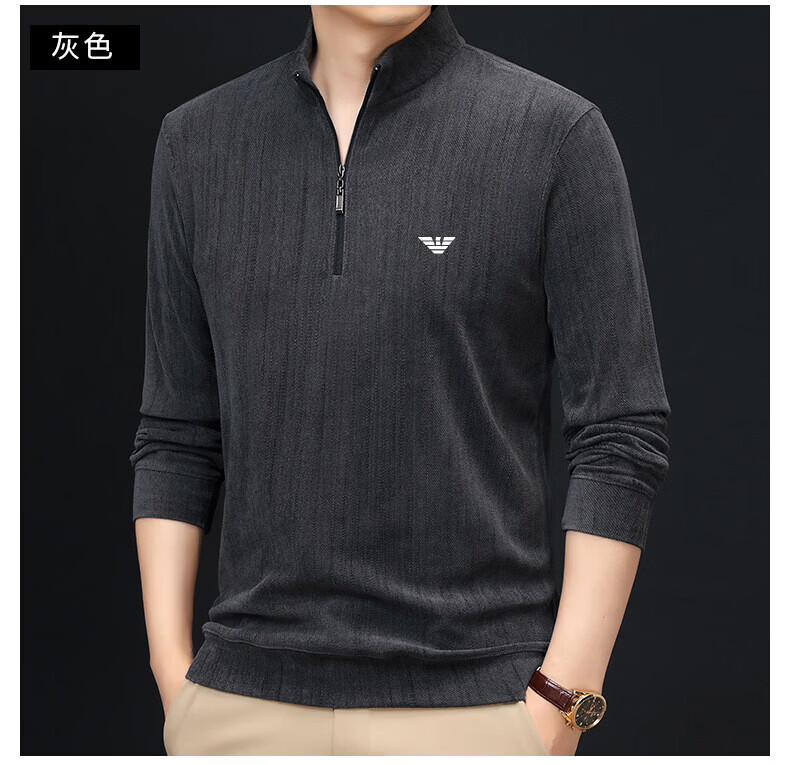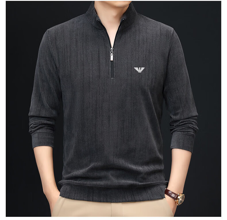 EA7 Armani Half-Turtle Collar Men's Spring and Autumn Thin Zipper Stand Collar Long-Sleeved T-shirt Middle-aged Tops and Bottoming Shirts Gray M 165 (weight 120 Jin Jin equals within 0.5 kg)