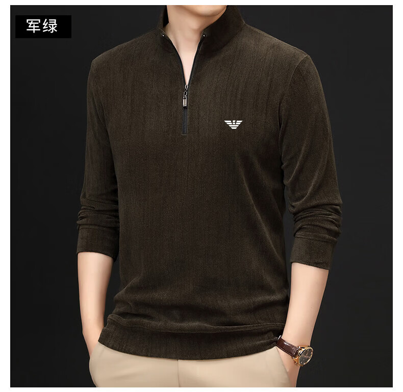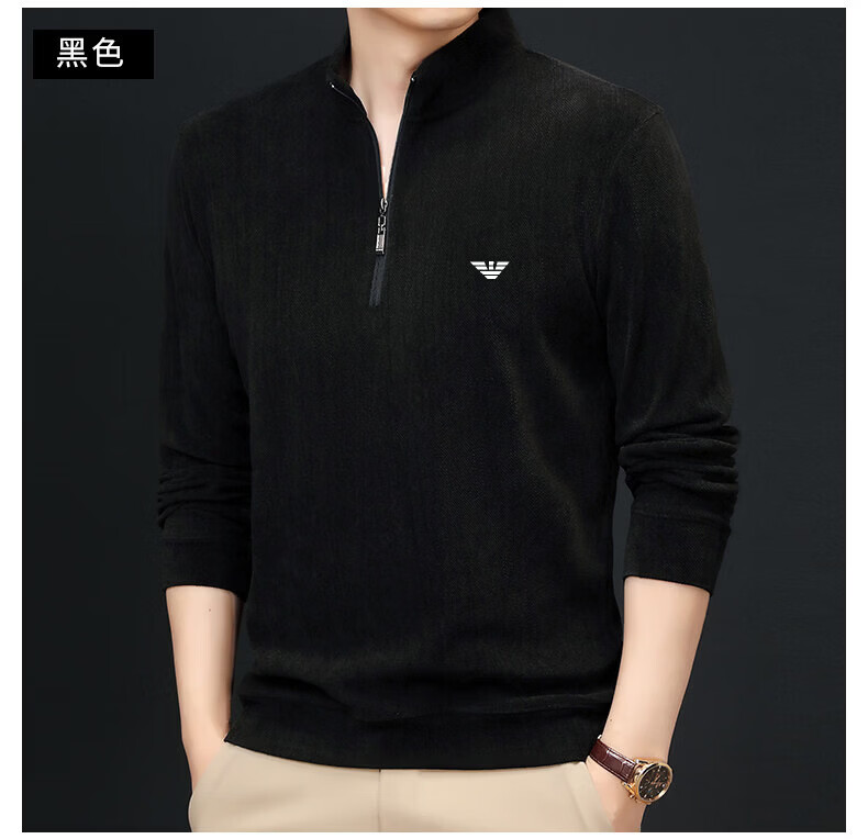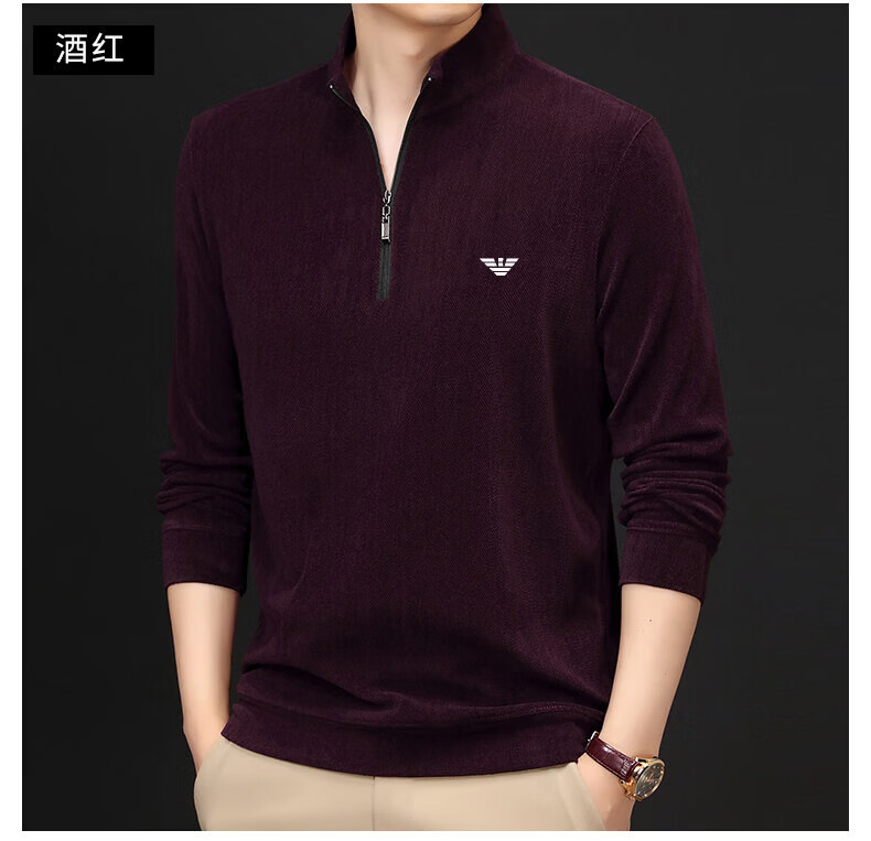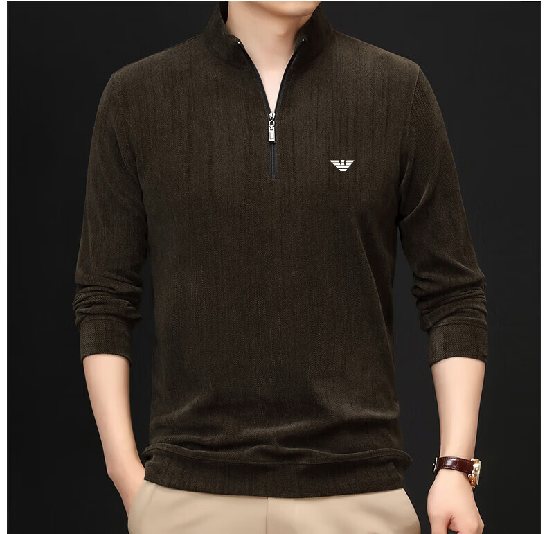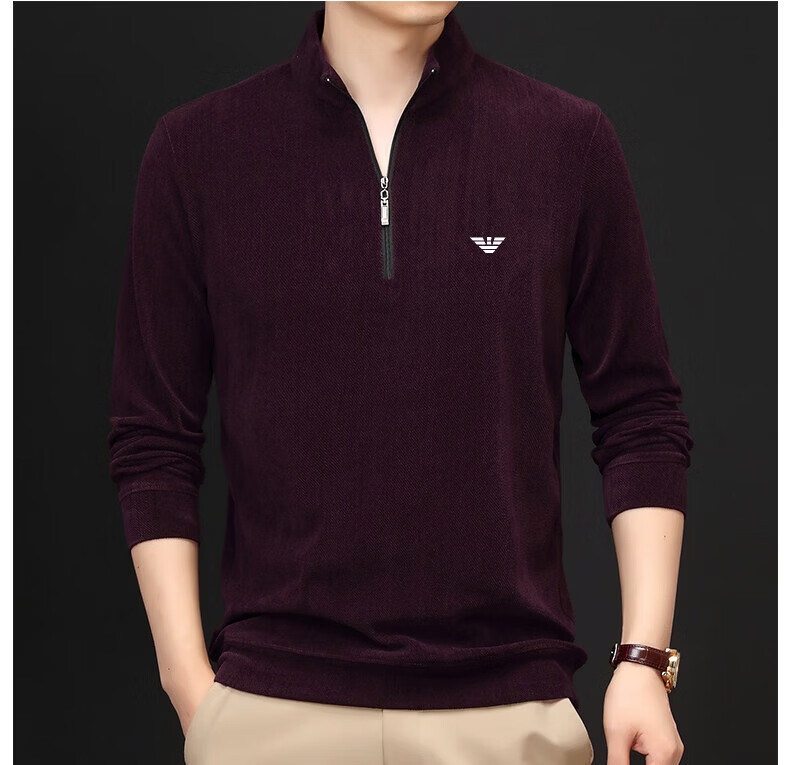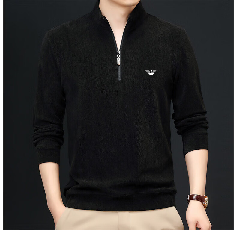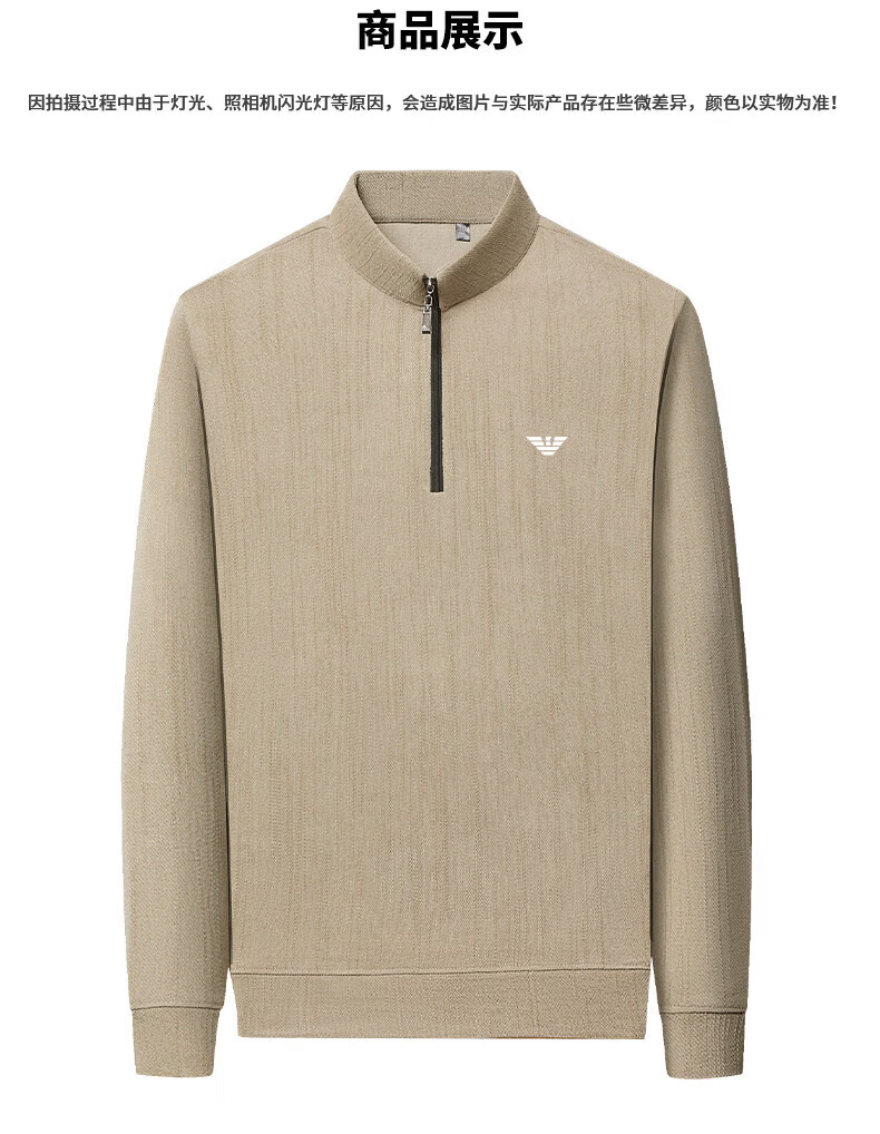 EA7 Armani Half-Turtle Collar Men's Spring and Autumn Thin Zipper Stand Collar Long-Sleeved T-shirt Middle-aged Tops and Bottoming Shirts Gray M 165 (weight 120 Jin Jin equals within 0.5 kg)