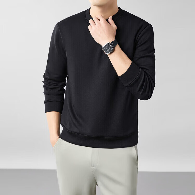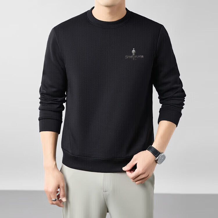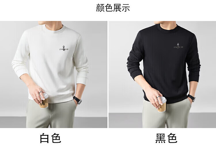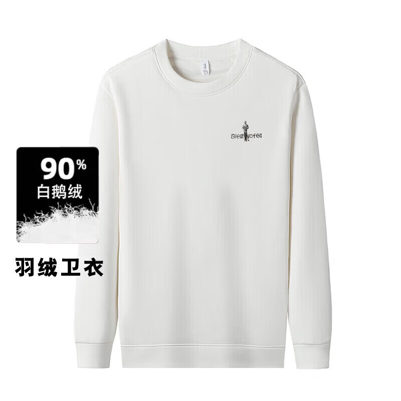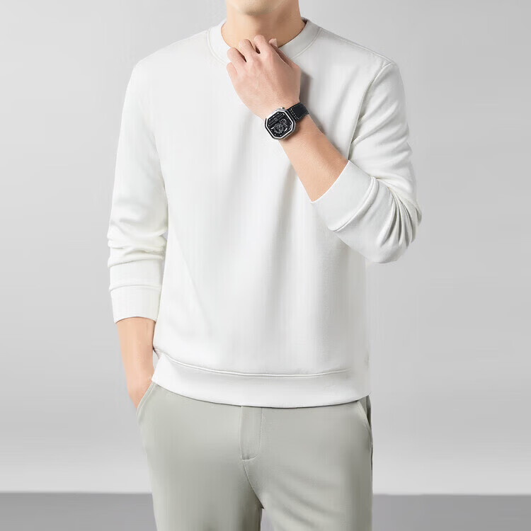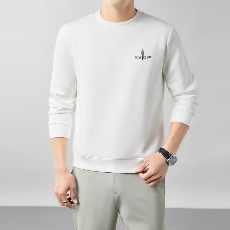Biyinlefen official round neck sweatshirt men's autumn and winter solid color long-sleeved T-shirt loose top 2026 new sweatshirt white 3XL flagship official white M