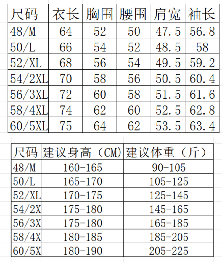 China (cm) 160-165/84-86 165-170 / 88-90 167-172 / 92-96 168-173 / 98-102 170-176 / 106-110