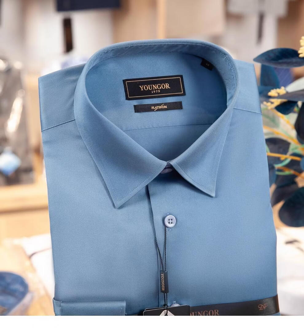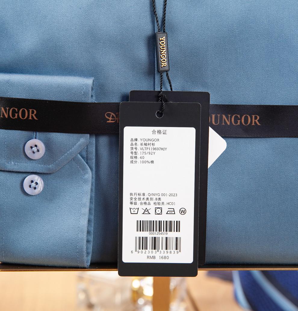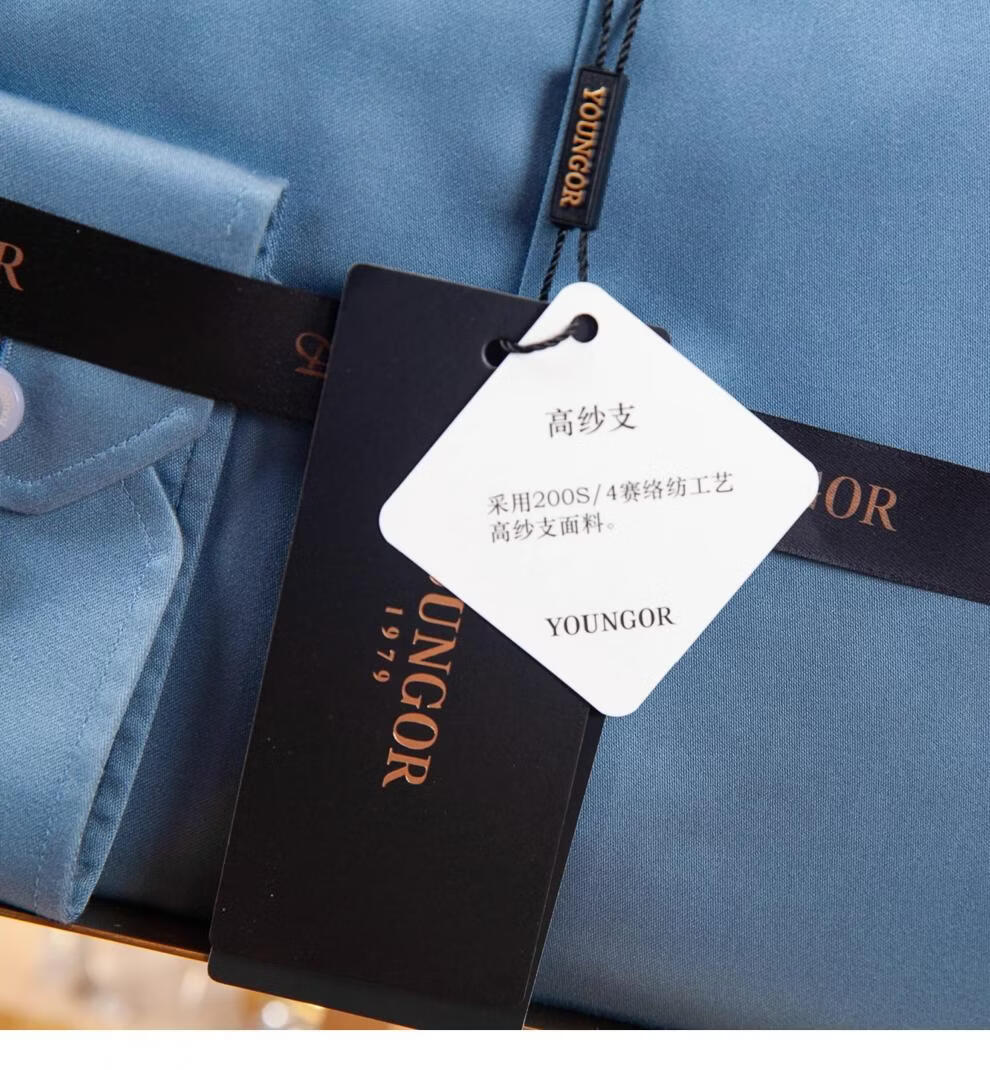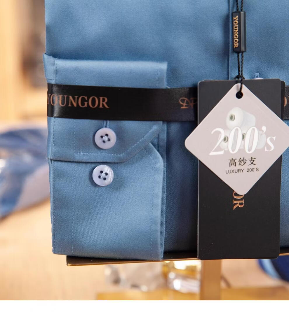 HARTMARX Youngor men's shirt long sleeve 200 no-iron pure cotton high-end autumn gray blue satin VLTP119697HJY 44/185 180-190Jin Jin equals 0.5 kg