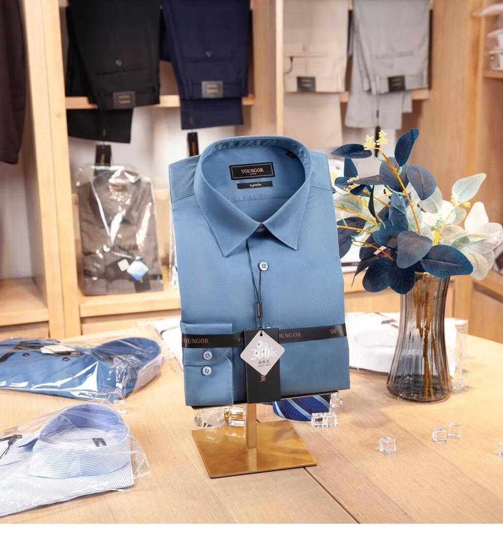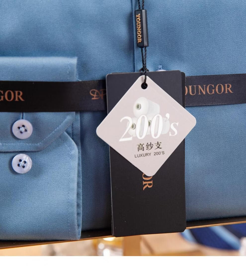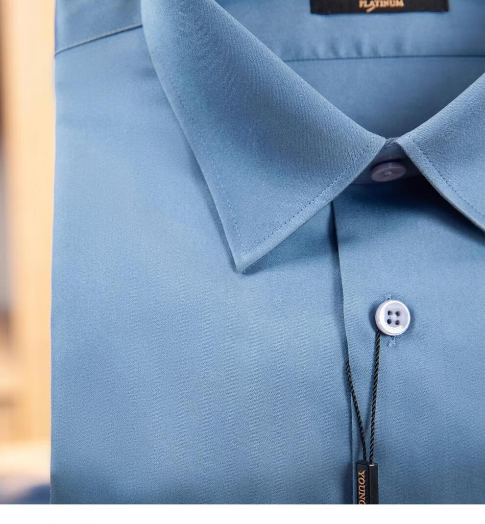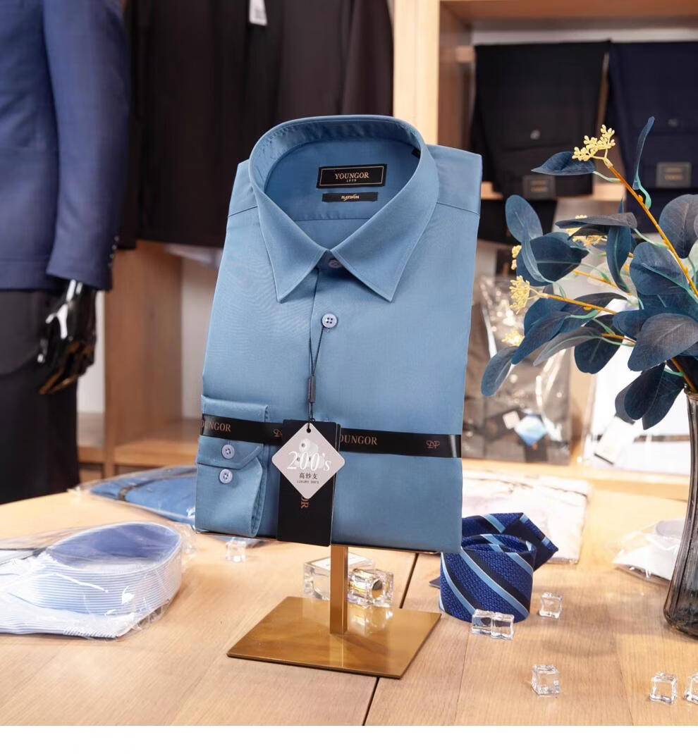 HARTMARX Youngor men's shirt long sleeve 200 no-iron pure cotton high-end autumn gray blue satin VLTP119697HJY 44/185 180-190Jin Jin equals 0.5 kg