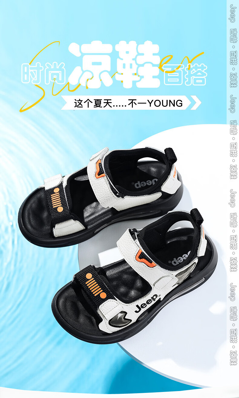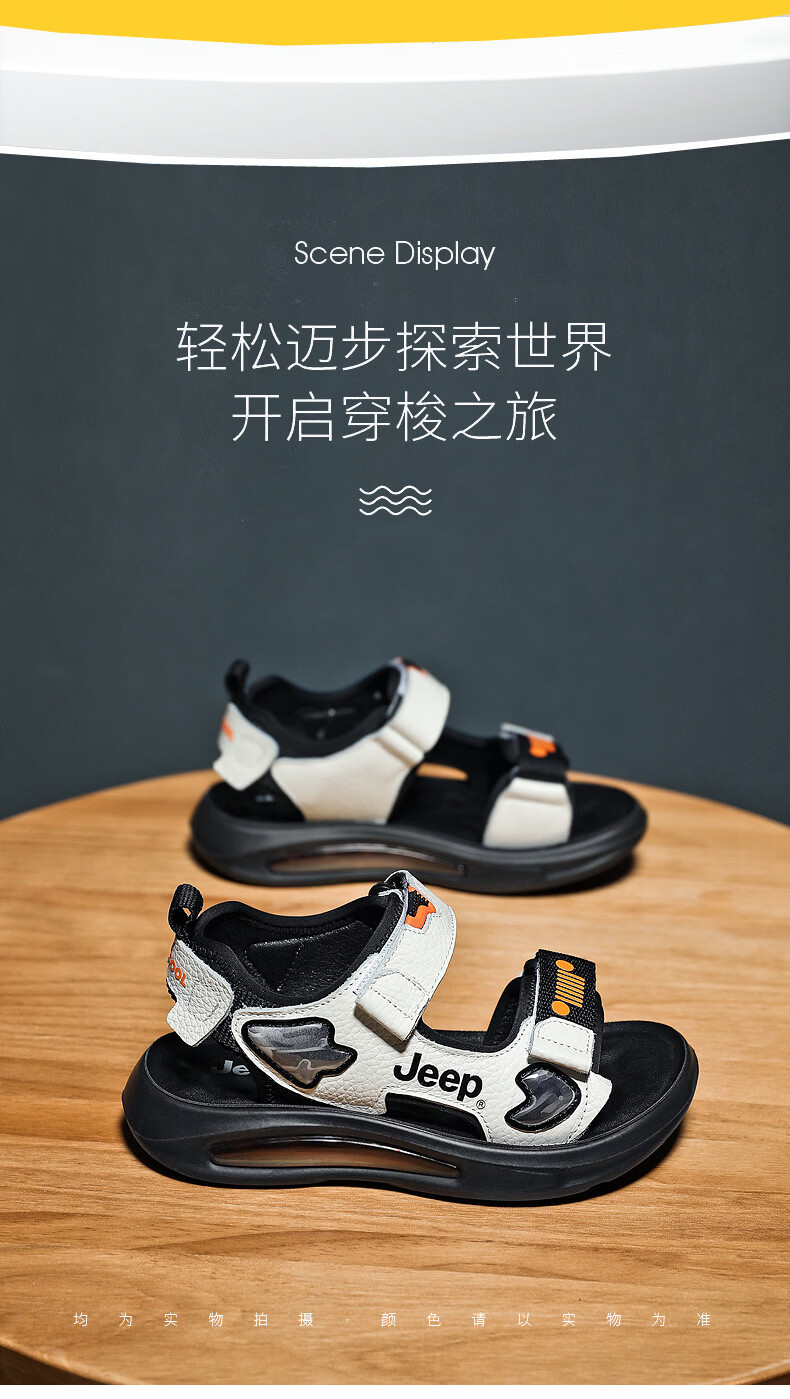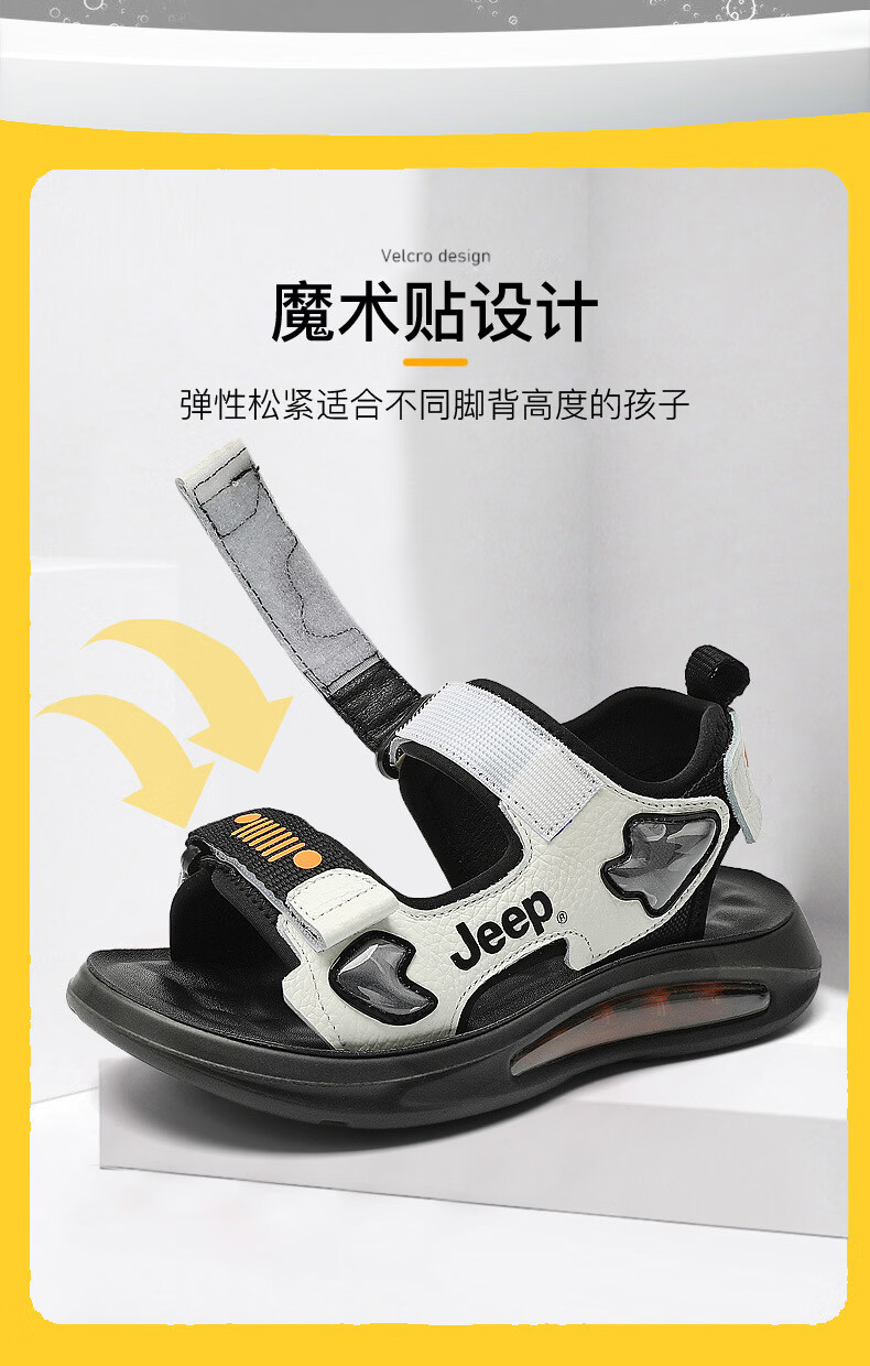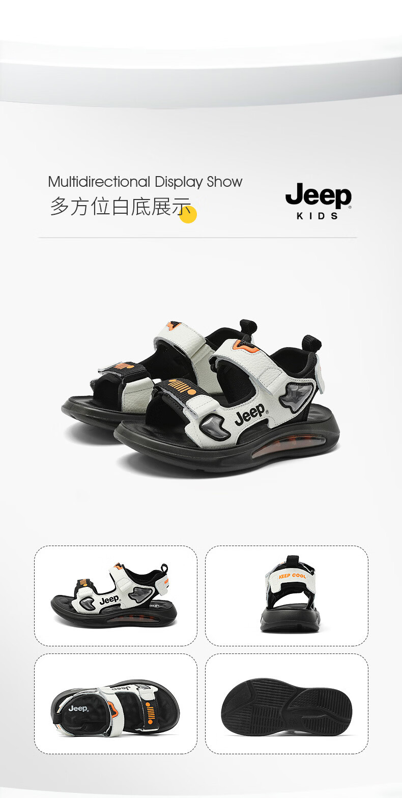 JEEP Sandals 2025 Summer New Sandals Comfortable and Lightweight Girls' Shoes Trendy Brand Versatile Velcro Boys Sandals 9005 White/Orange 26/Inner Length About 16.5cm