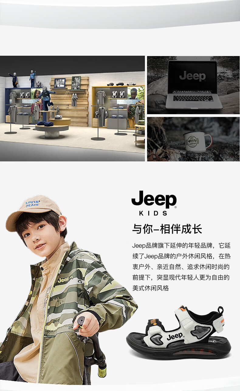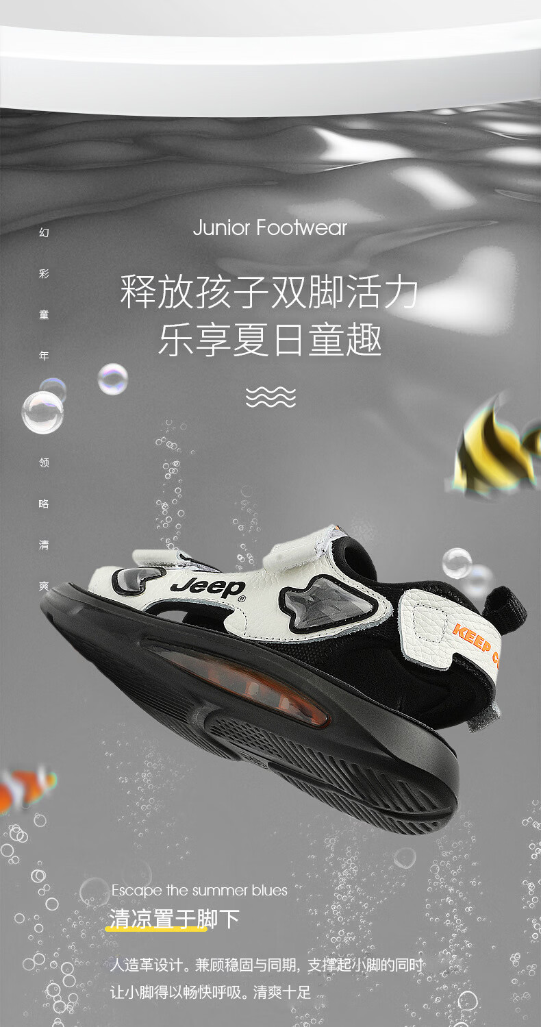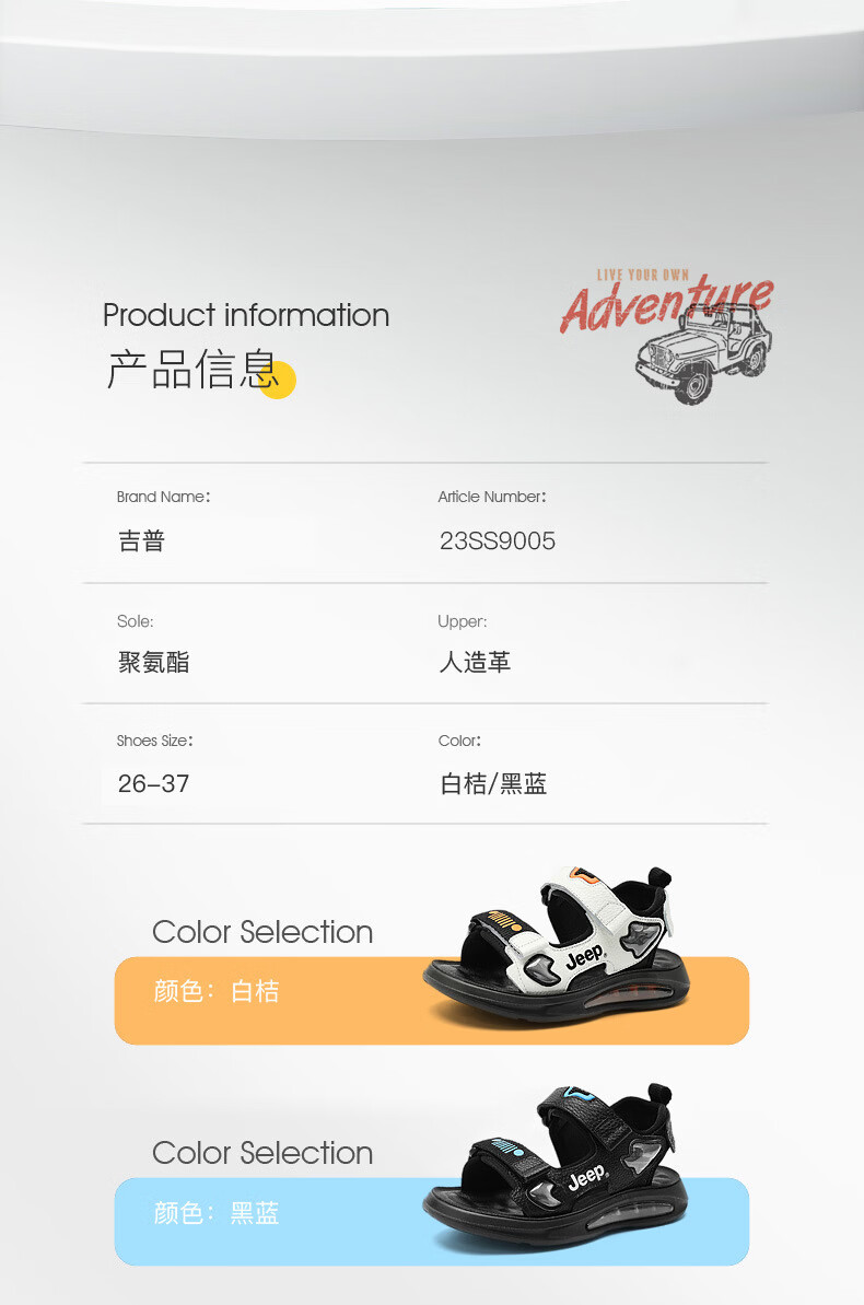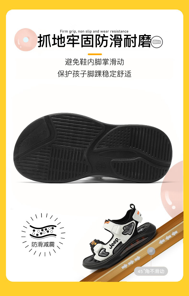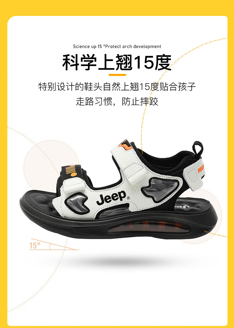JEEP Sandals 2025 Summer New Sandals Comfortable and Lightweight Girls' Shoes Trendy Brand Versatile Velcro Boys Sandals 9005 White/Orange 26/Inner Length About 16.5cm
