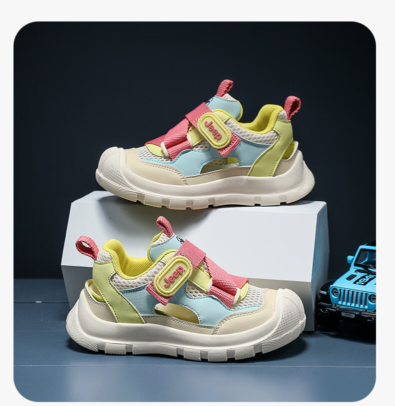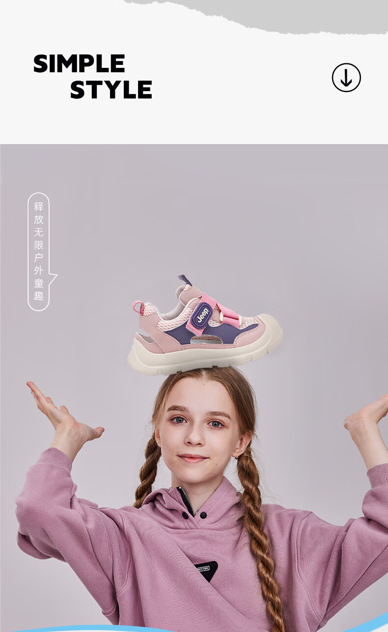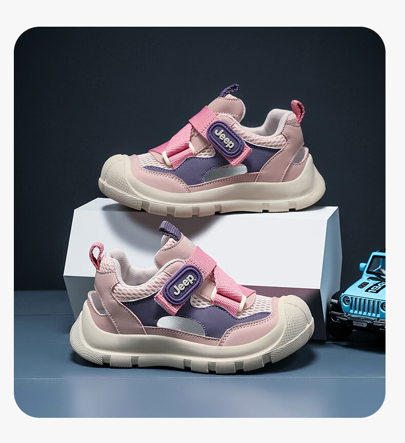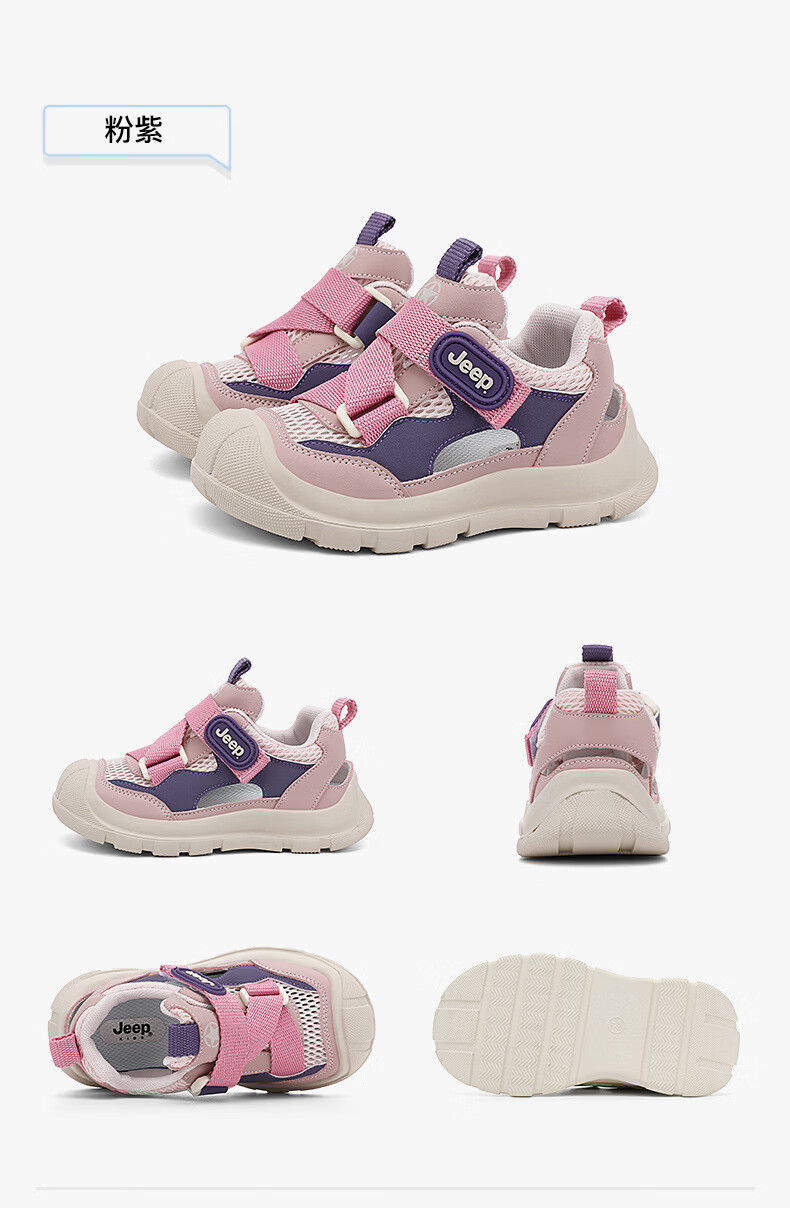 JEEP Girls Sports Frame Shoes 2025 Summer New Children's Baotou Sandals Non-slip Soft Bottom Girls Beach Shoes 61253 Pink Purple 27 / Inner Length About 17.5cm