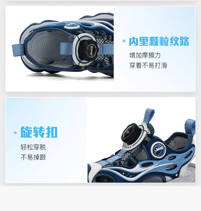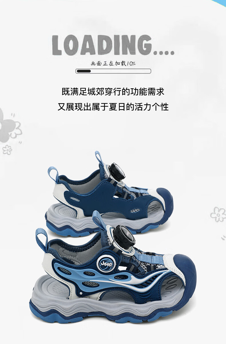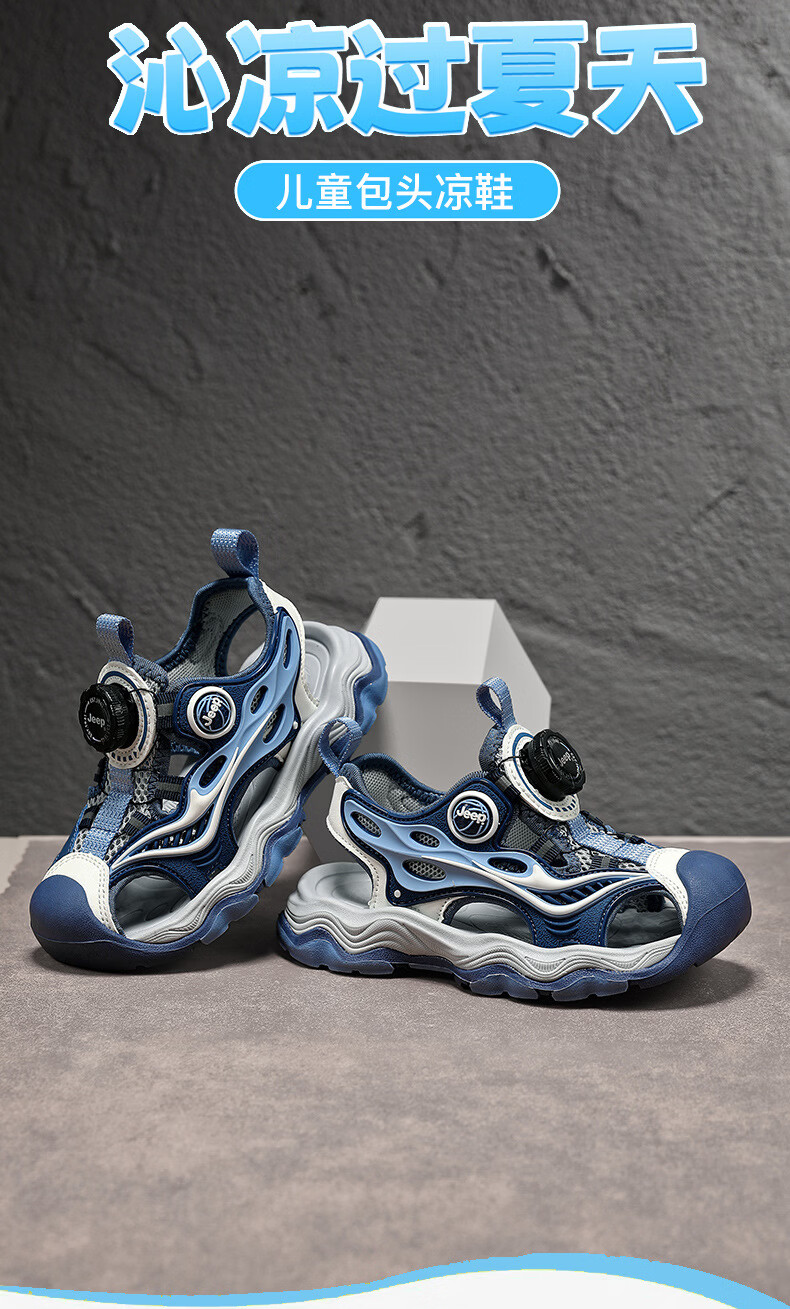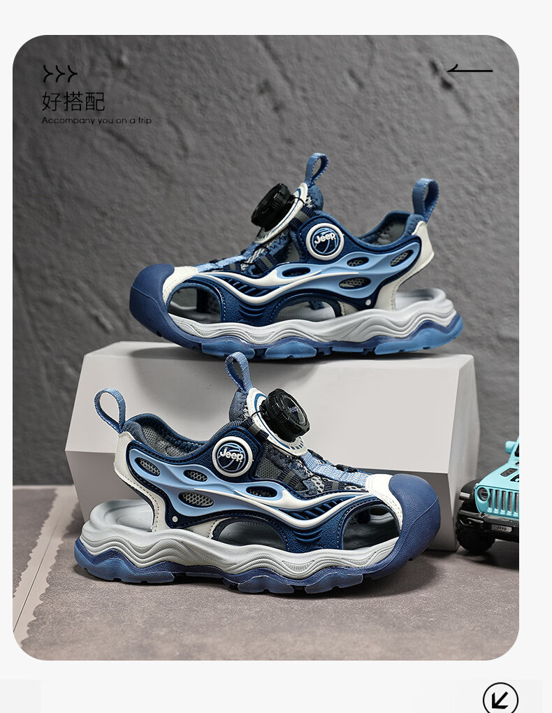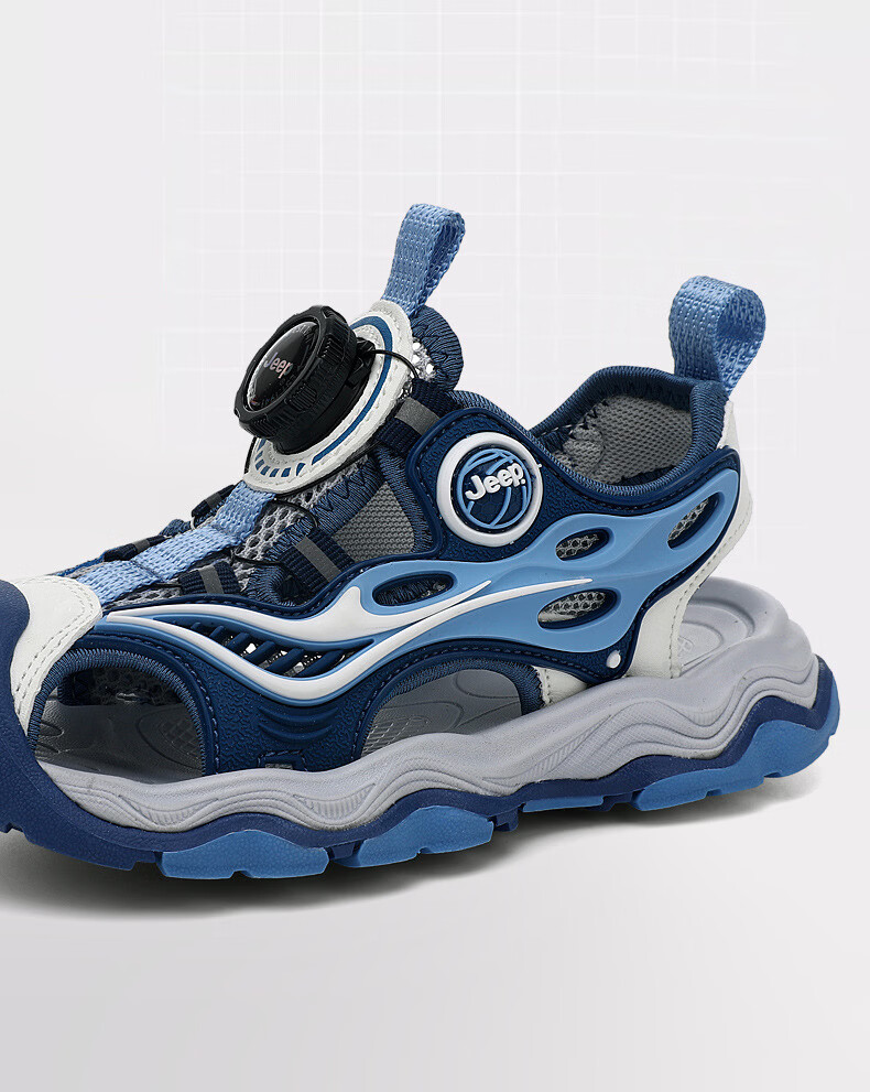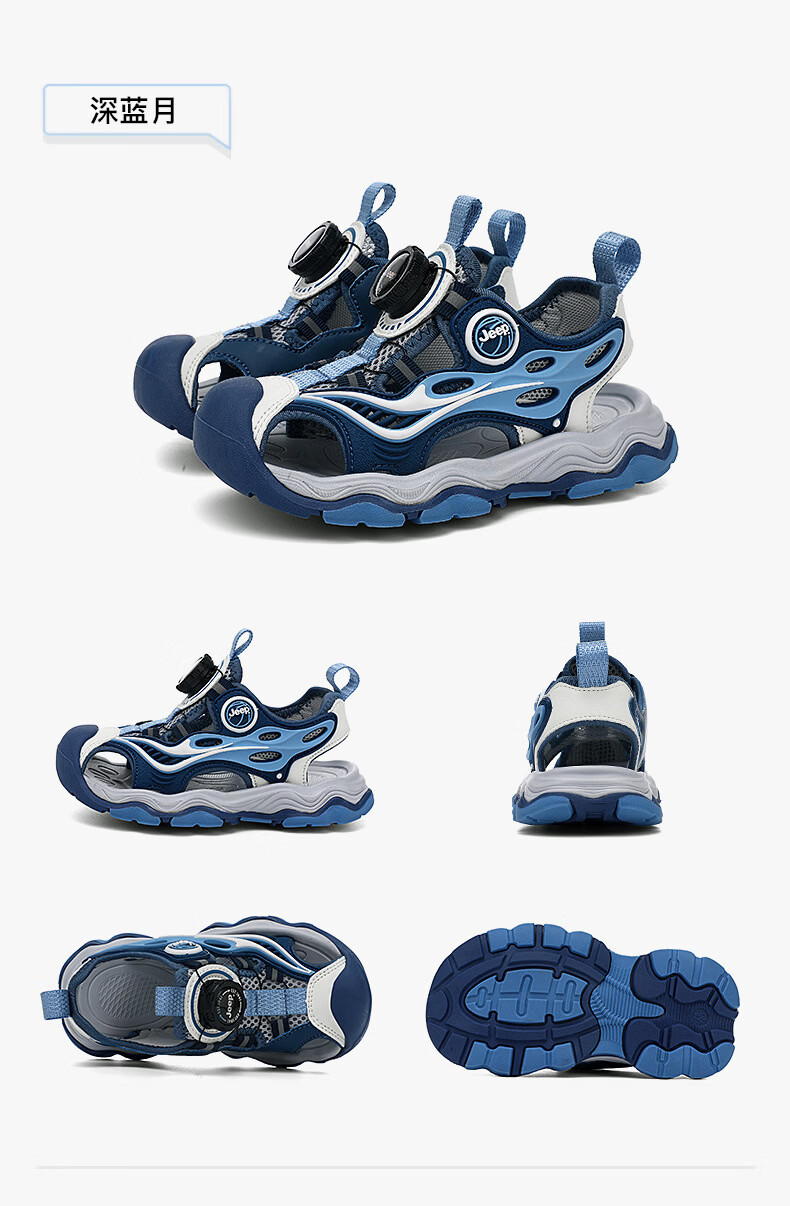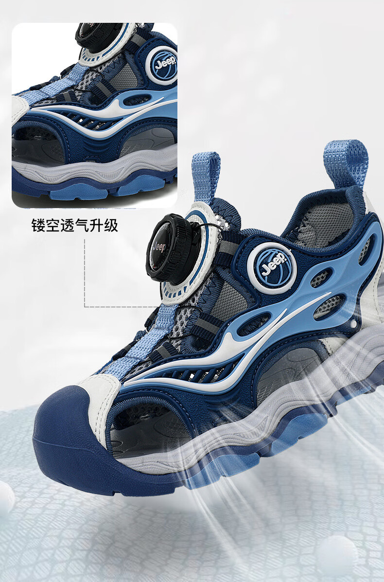 JEEP Kids Sandals 2025 Summer New Style Comfortable and Lightweight Girls Sports Sandals Rotating Button Boys Running Sandals 75210 Dark Blue Moon (Baotou Sandals) 28 / Inner length approximately 18.1cm
