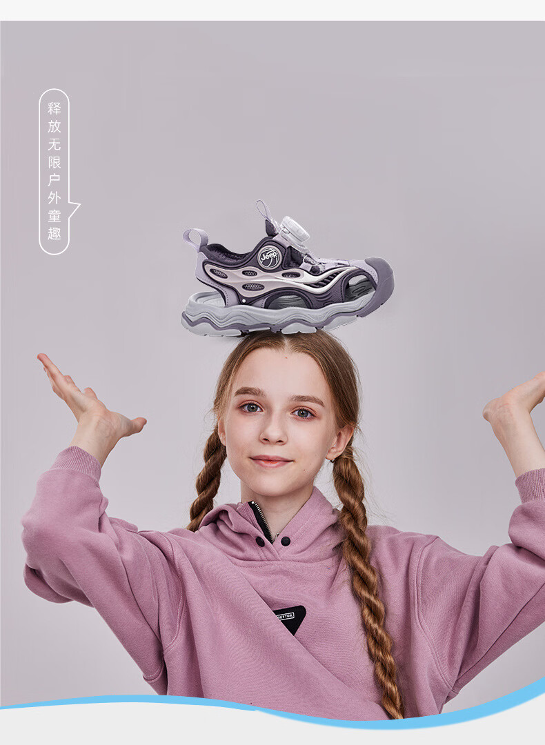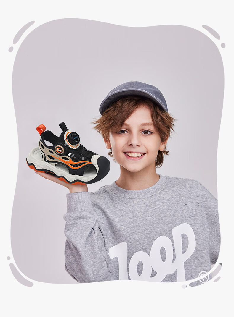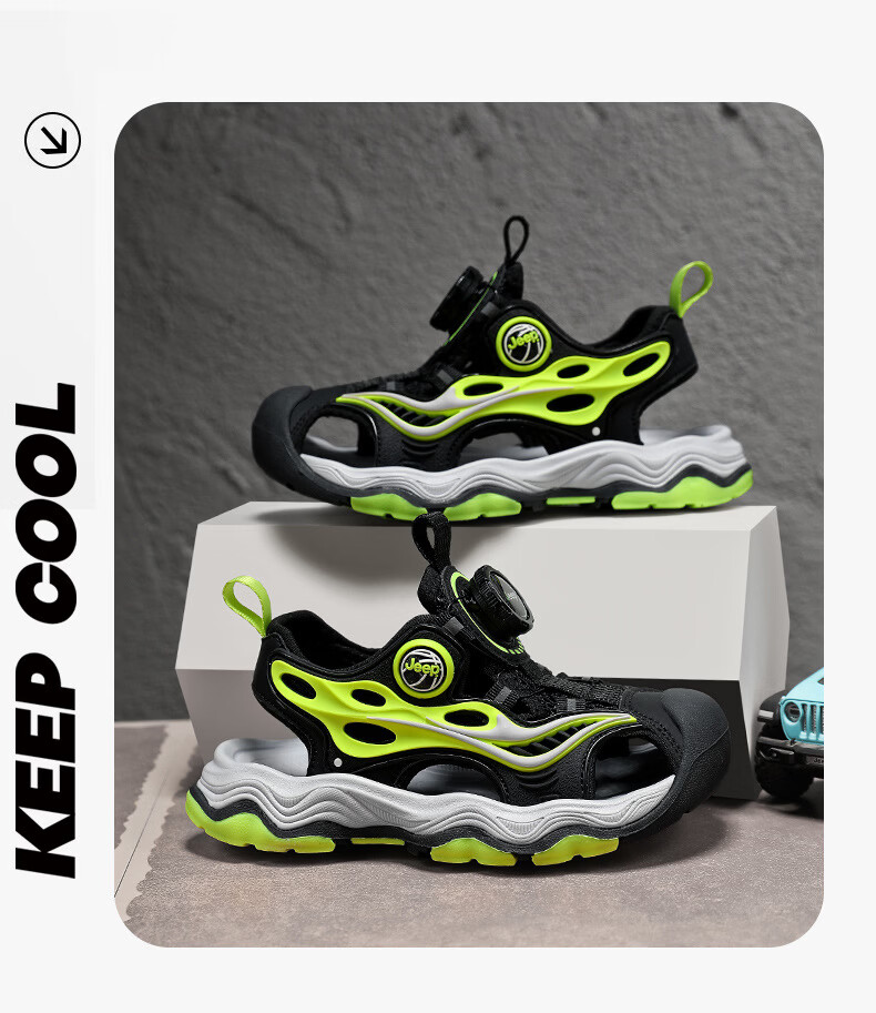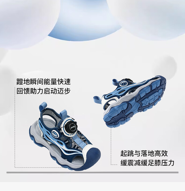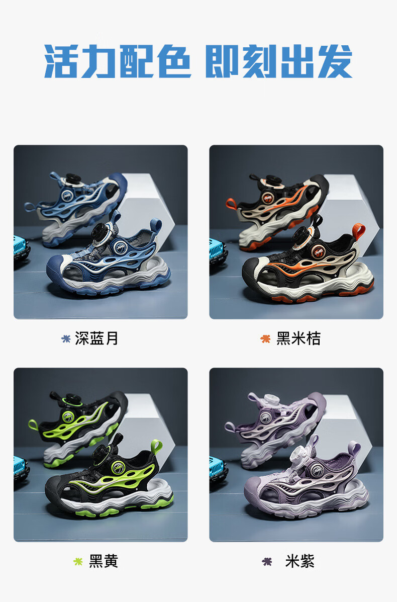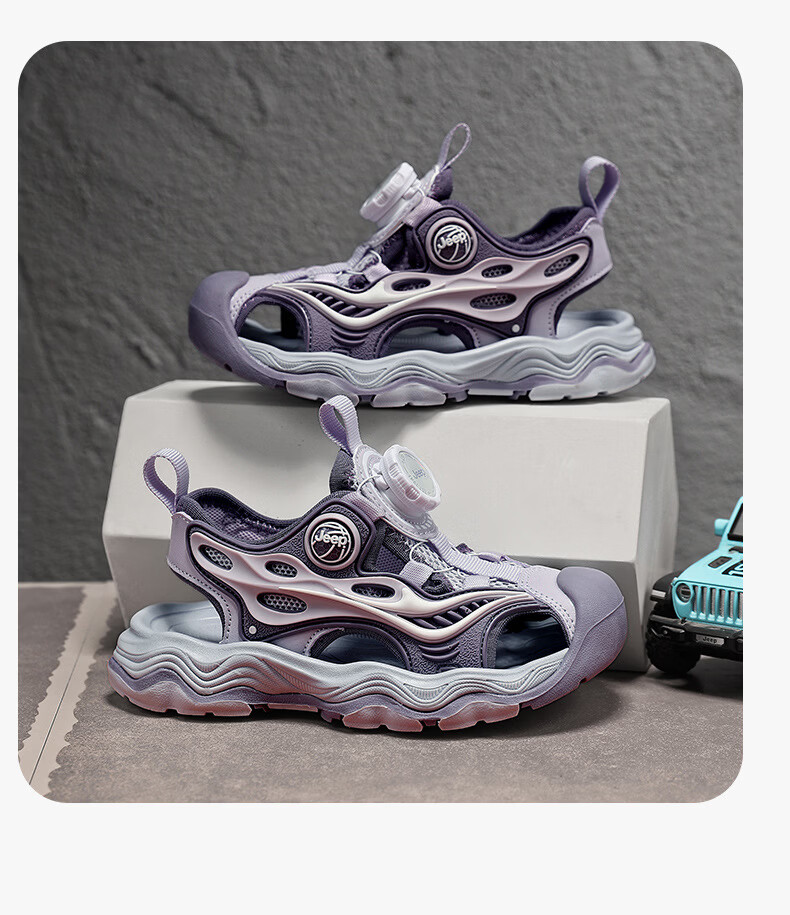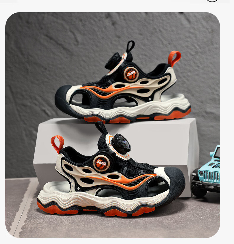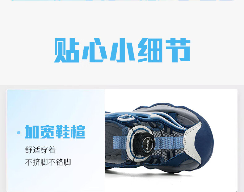 JEEP Kids Sandals 2025 Summer New Style Comfortable and Lightweight Girls Sports Sandals Rotating Button Boys Running Sandals 75210 Dark Blue Moon (Baotou Sandals) 28 / Inner length approximately 18.1cm