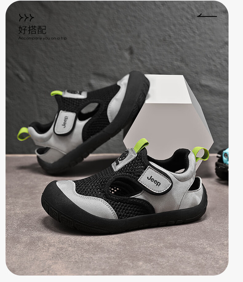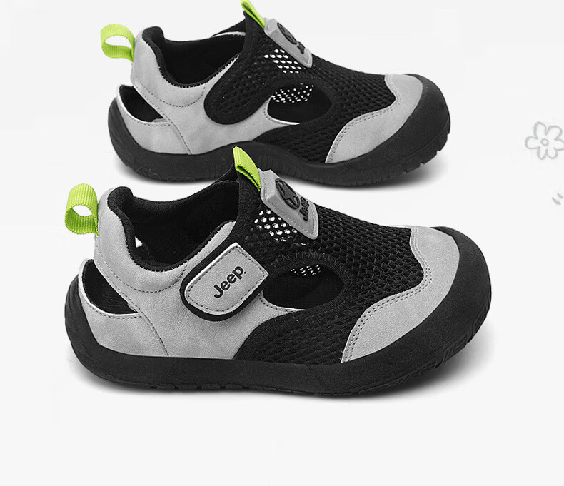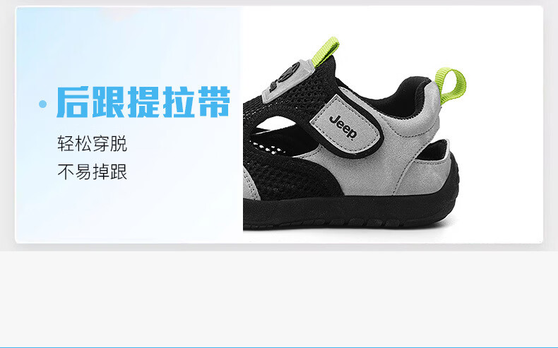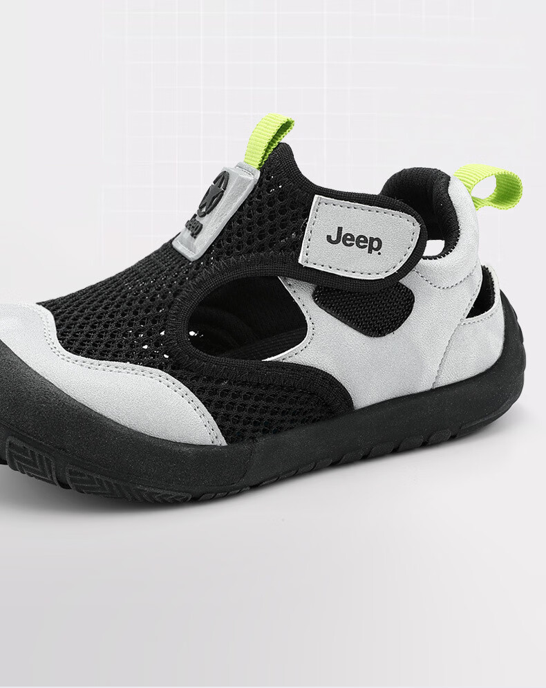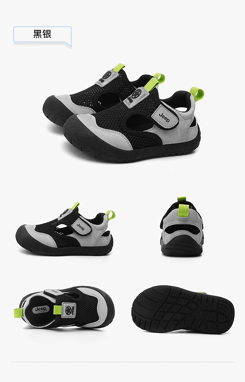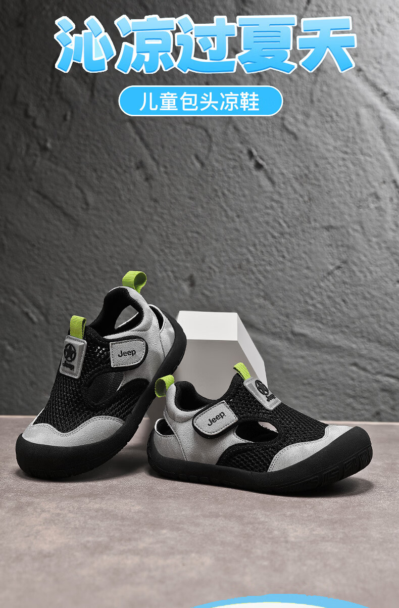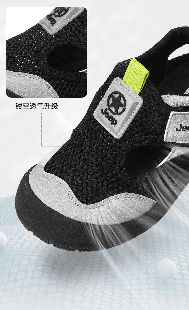 JEEP Girls Sandals 2025 Summer New Style Comfortable and Lightweight Children's River Tracing Sandals Convenient Velcro Boys' Shoes 61183 Black Silver 27 / Inner Length About 17.3cm