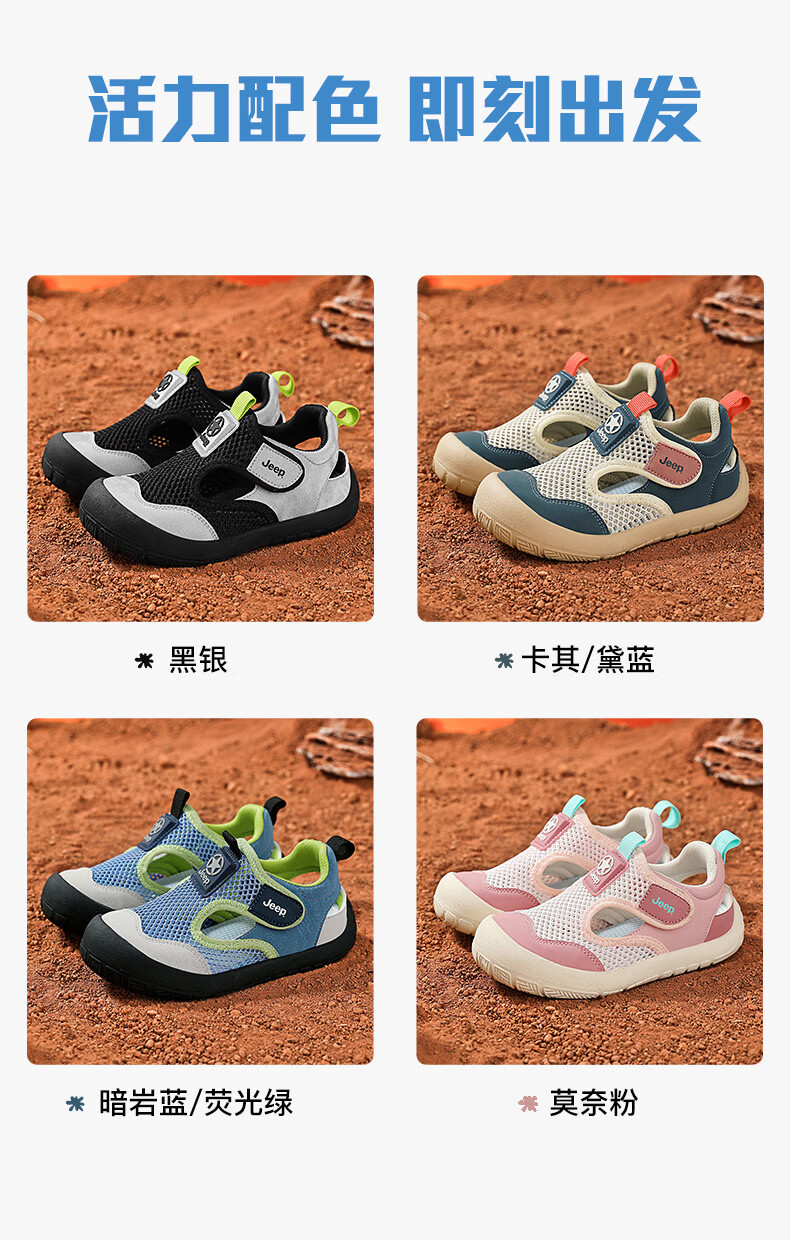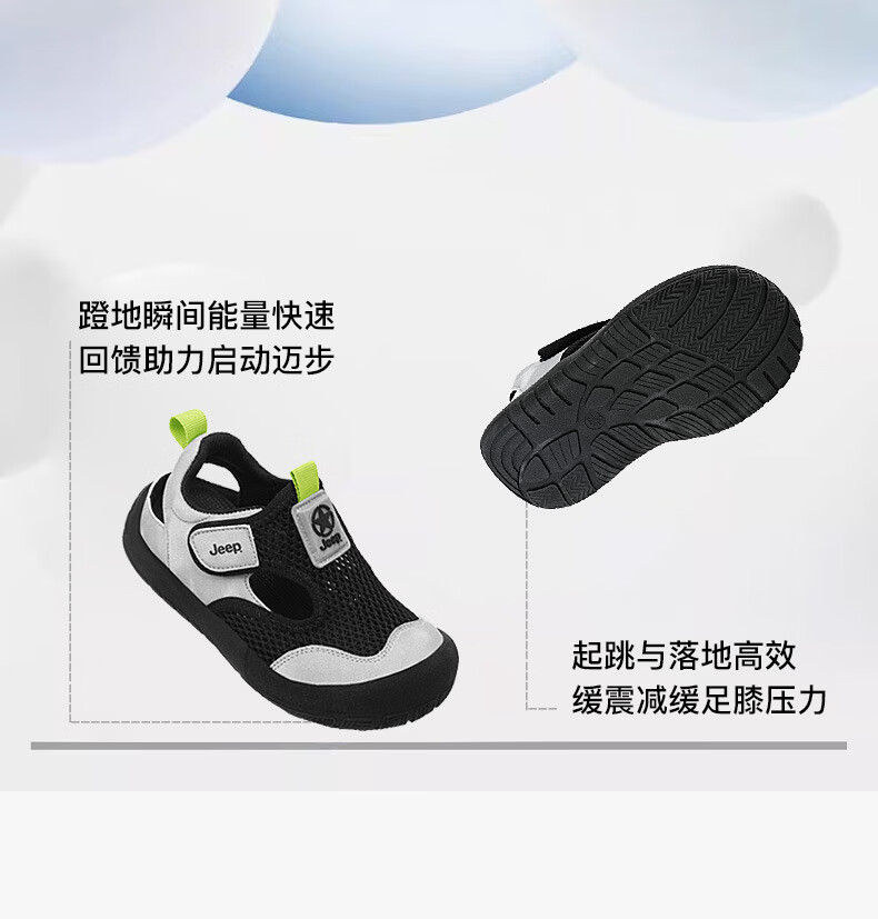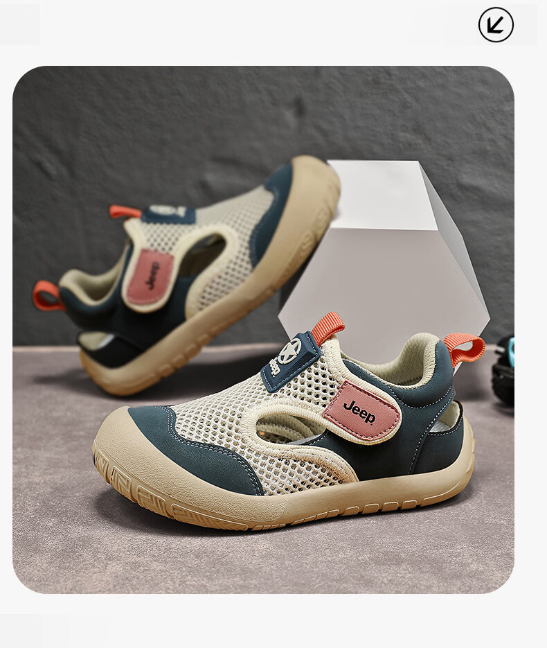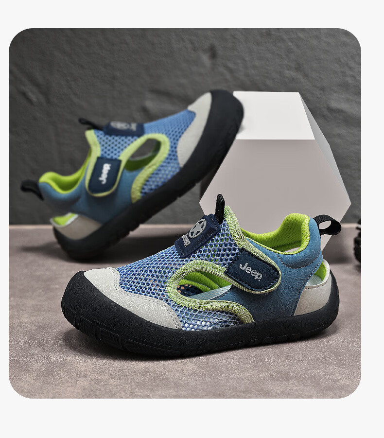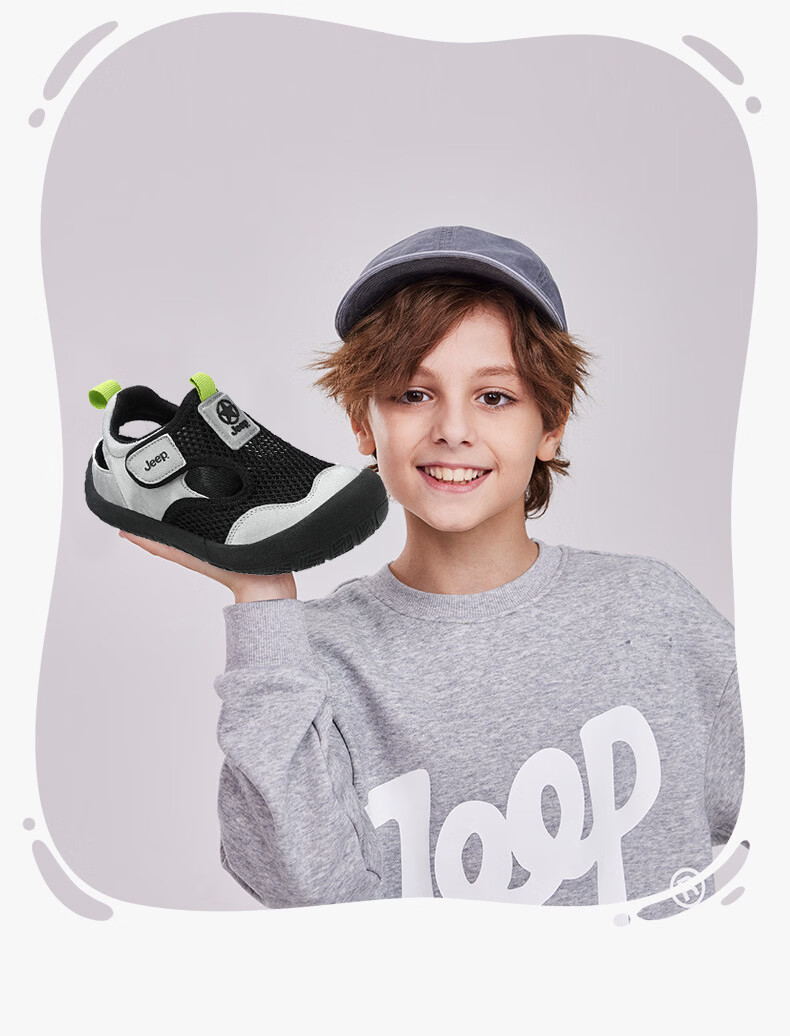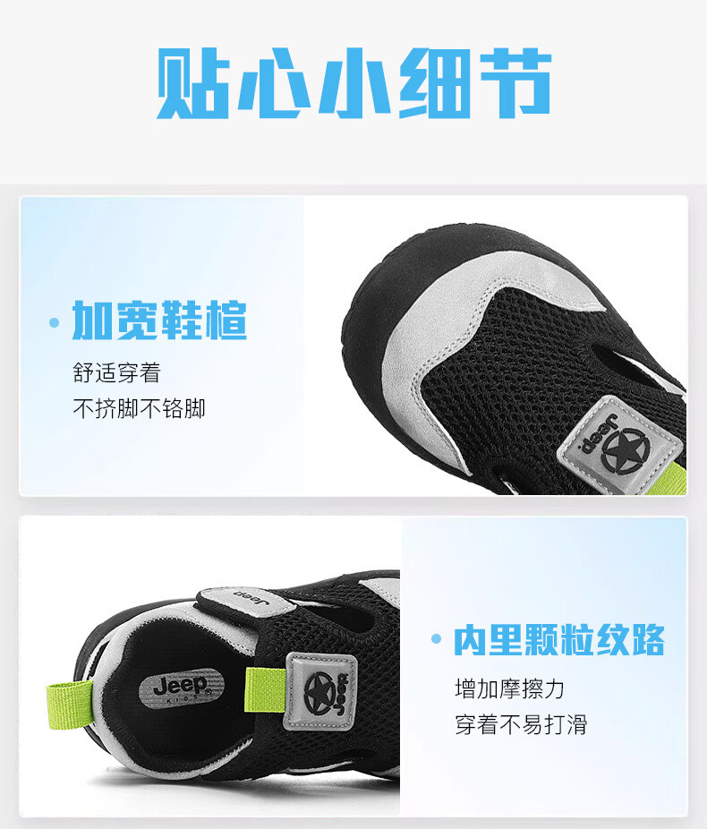 JEEP Girls Sandals 2025 Summer New Style Comfortable and Lightweight Children's River Tracing Sandals Convenient Velcro Boys' Shoes 61183 Black Silver 27 / Inner Length About 17.3cm