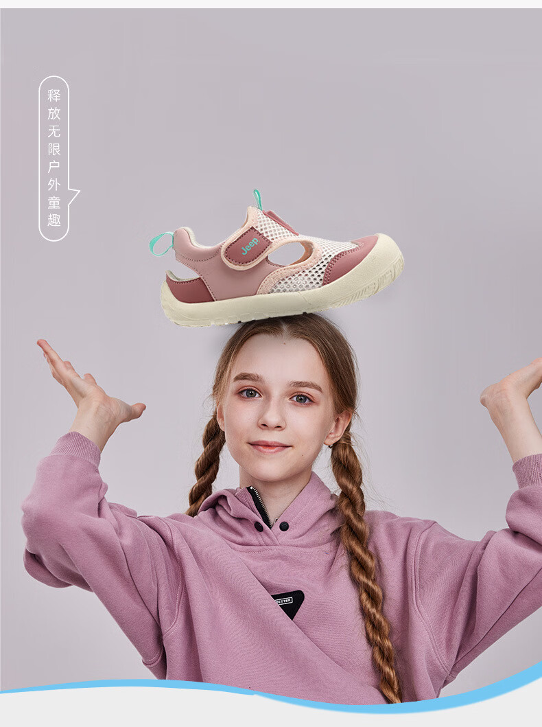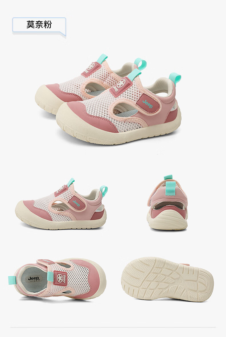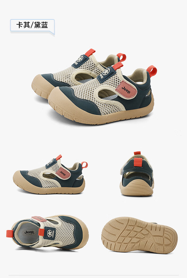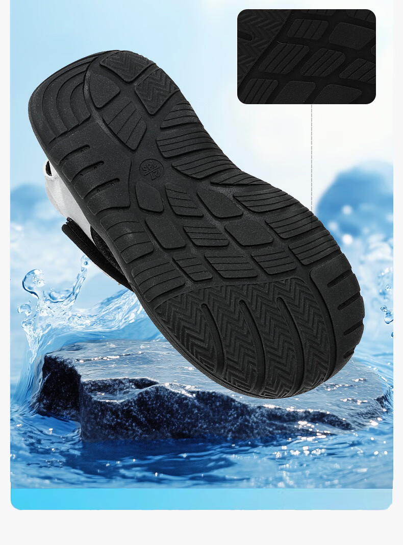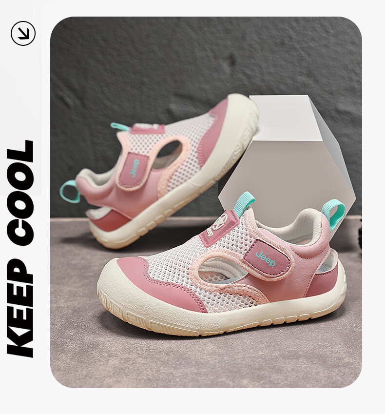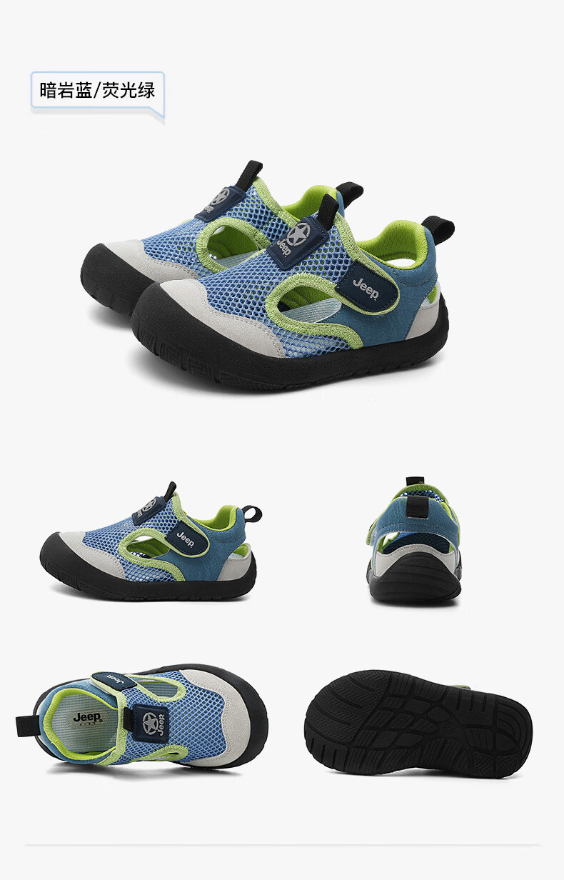 JEEP Girls Sandals 2025 Summer New Style Comfortable and Lightweight Children's River Tracing Sandals Convenient Velcro Boys' Shoes 61183 Black Silver 27 / Inner Length About 17.3cm