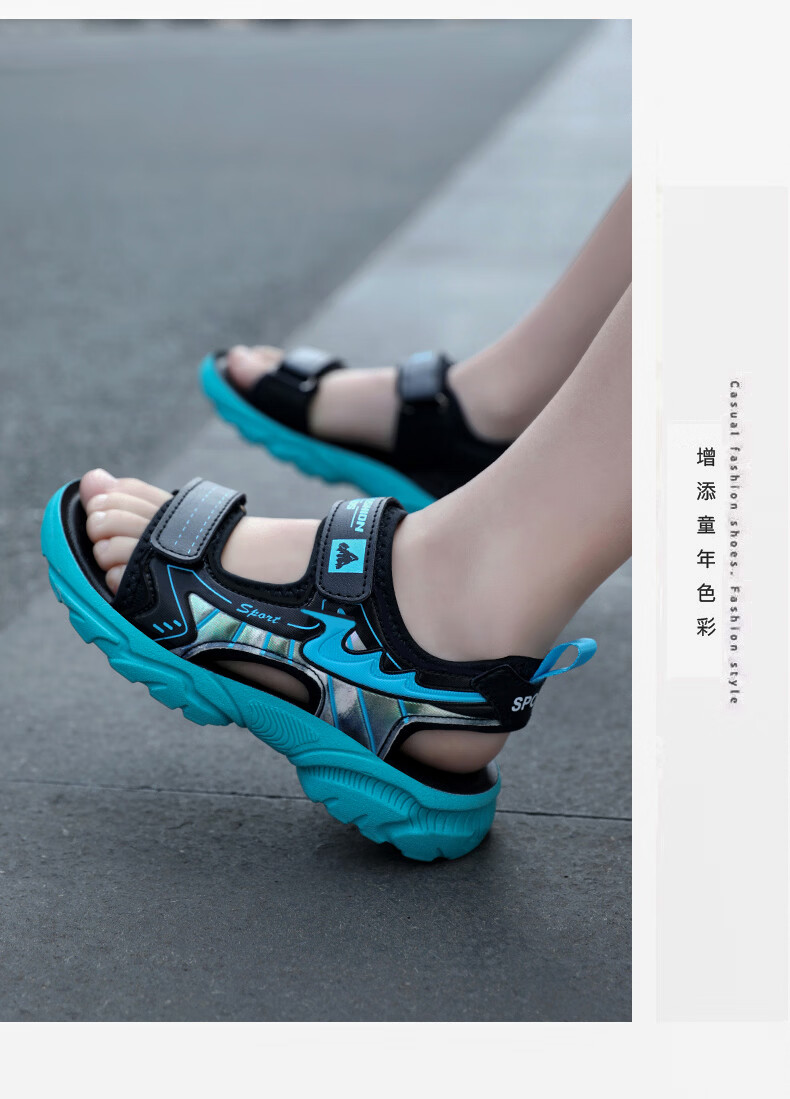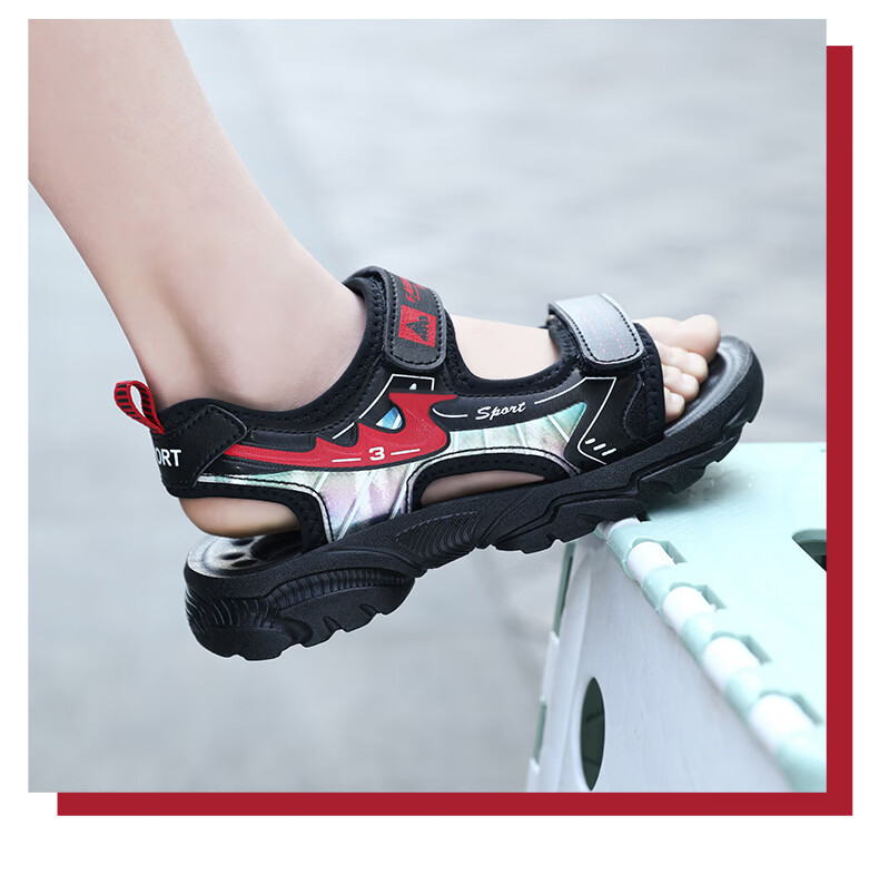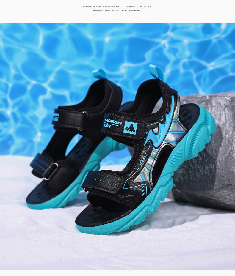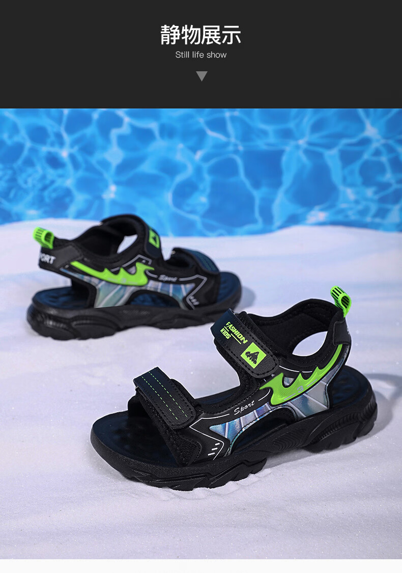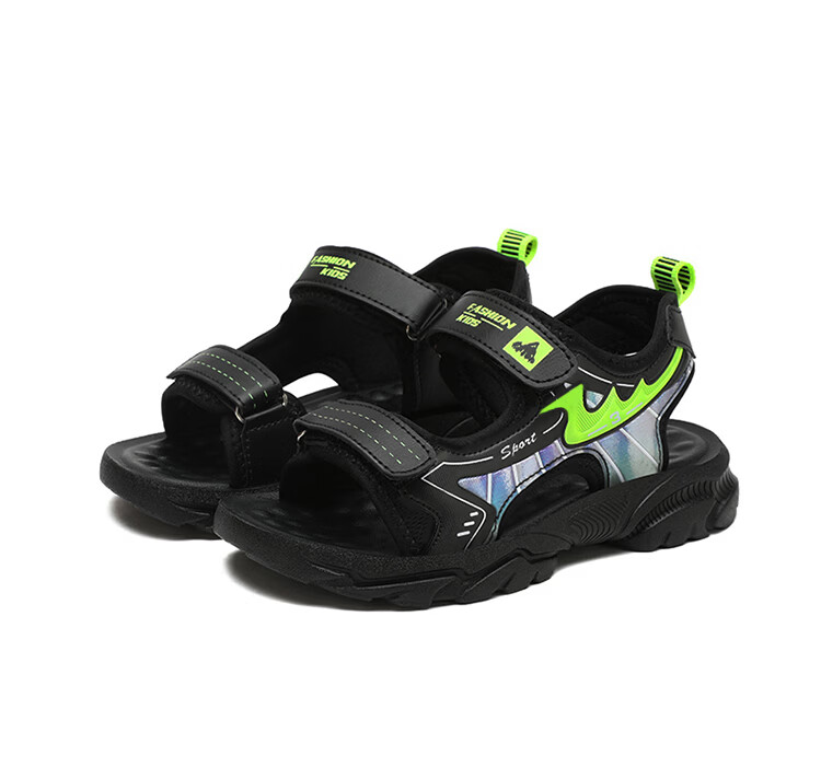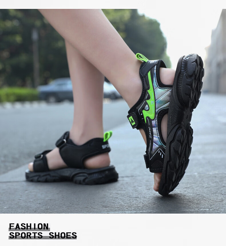 Boys' Shoes Sandals Summer New 2026 Children's Sandals Soft Sole Beach Shoes Boys Summer Massage Anti-Slip Sole Black Green Soft Sole Open Toe Sandals 40 Inner Length 25.0 cm
