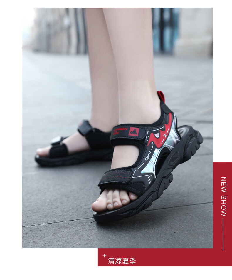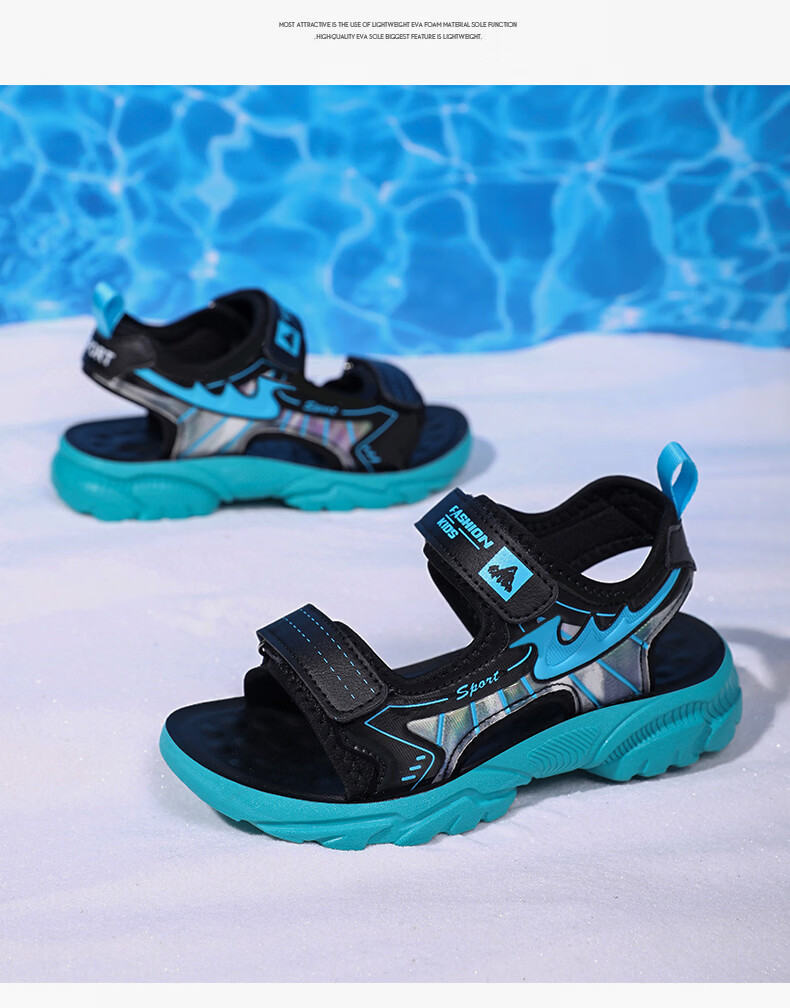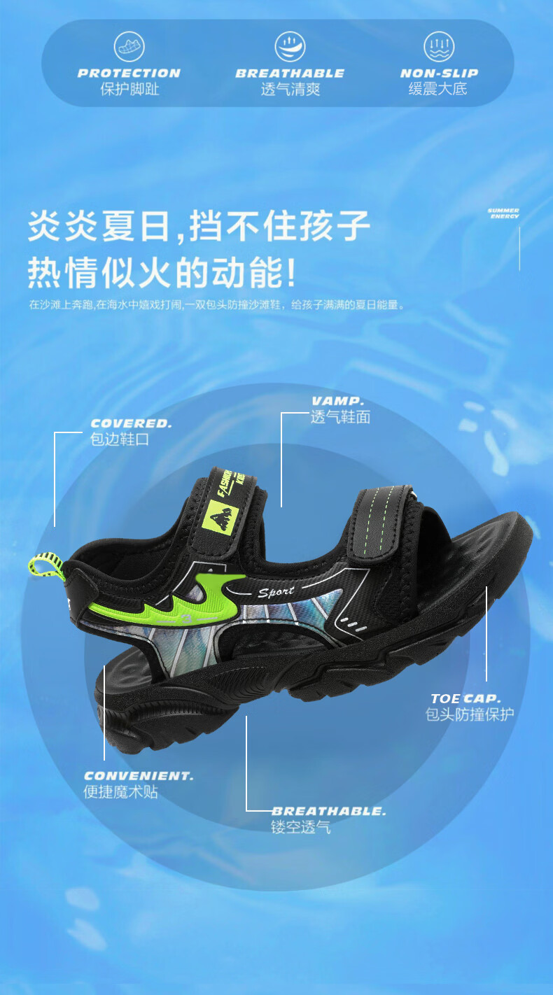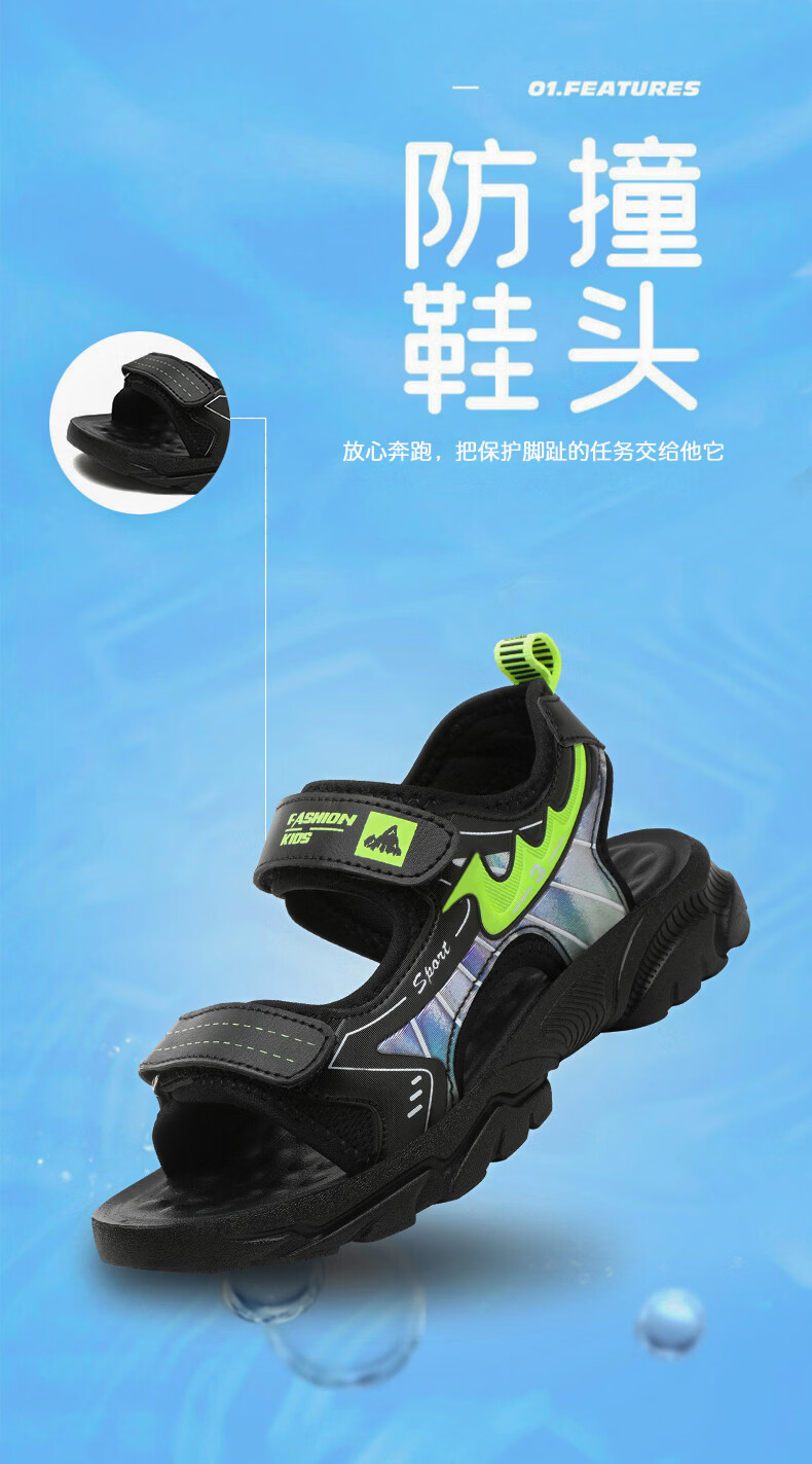 Boys' Shoes Sandals Summer New 2026 Children's Sandals Soft Sole Beach Shoes Boys Summer Massage Anti-Slip Sole Black Green Soft Sole Open Toe Sandals 40 Inner Length 25.0 cm