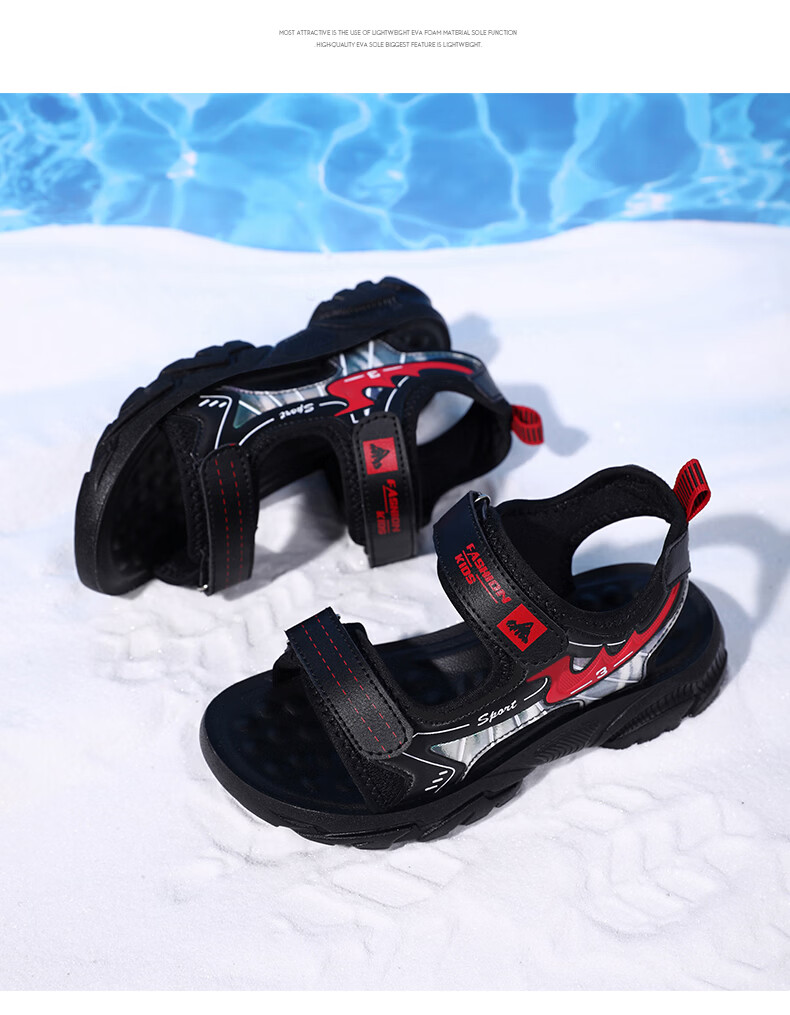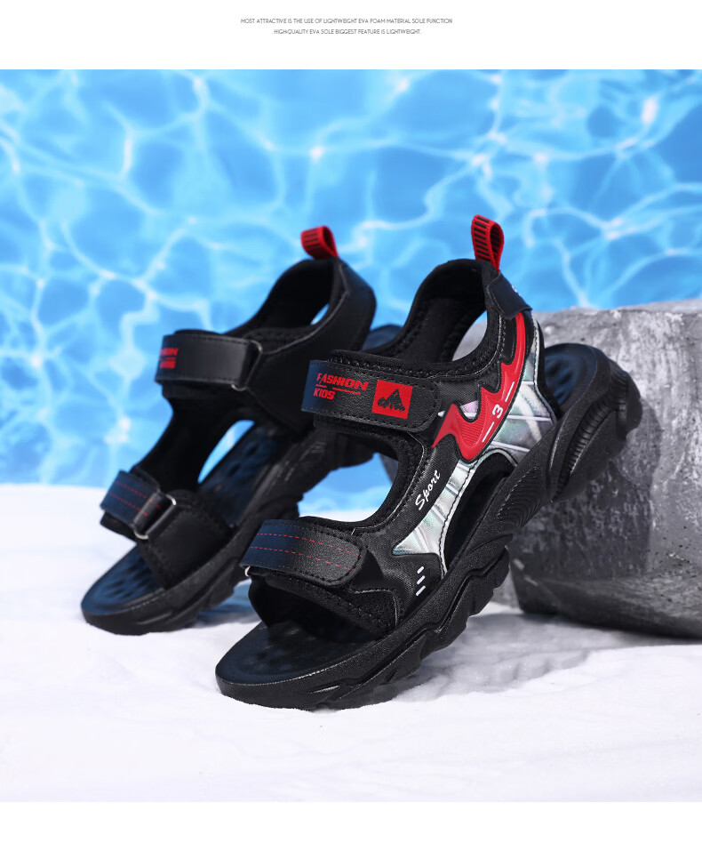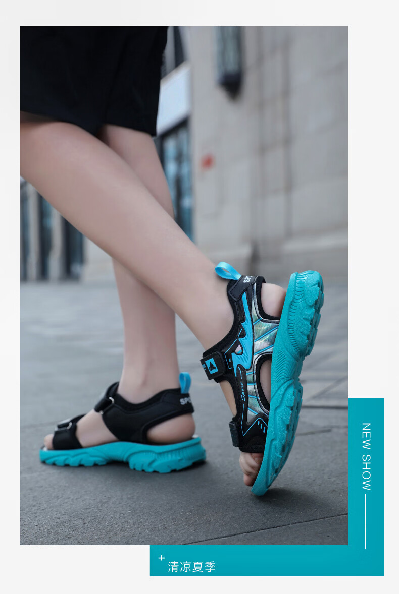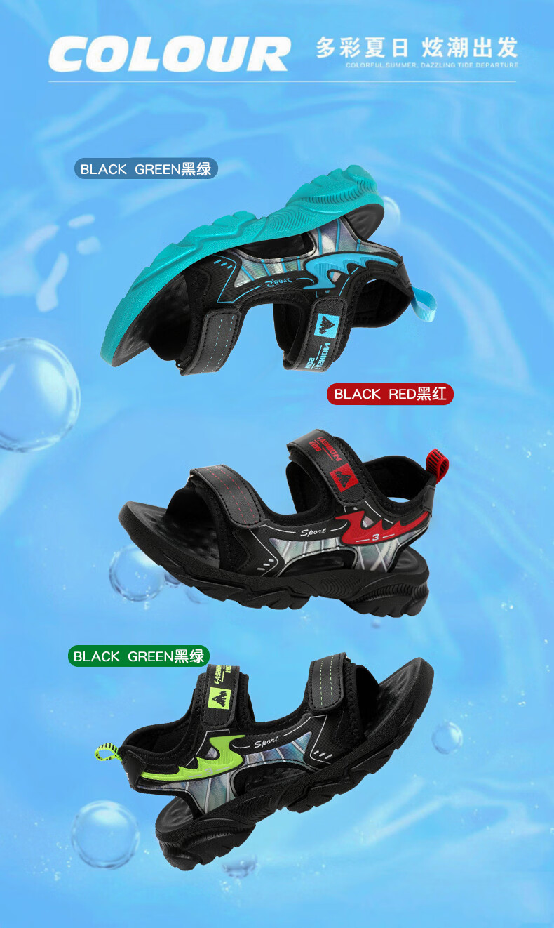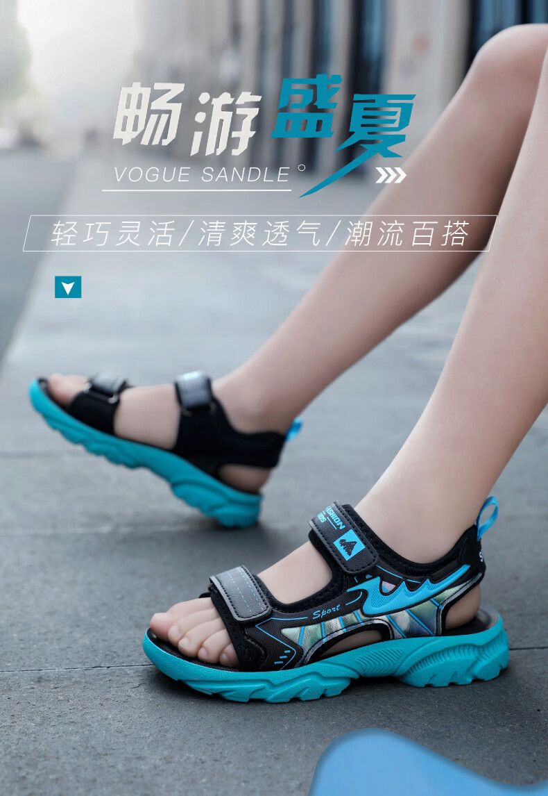 Boys' Shoes Sandals Summer New 2026 Children's Sandals Soft Sole Beach Shoes Boys Summer Massage Anti-Slip Sole Black Green Soft Sole Open Toe Sandals 40 Inner Length 25.0 cm