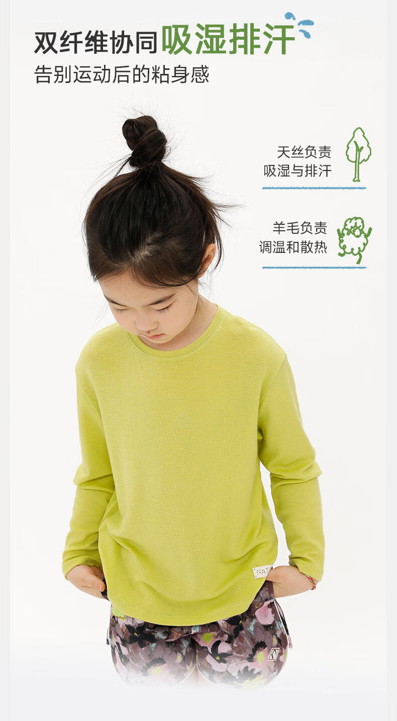 Naju Tencel wool children's moisture-absorbent sports sweat-wicking bottoming T-shirt for boys and girls breathable long-sleeved tops navy blue ready-made 130 cm