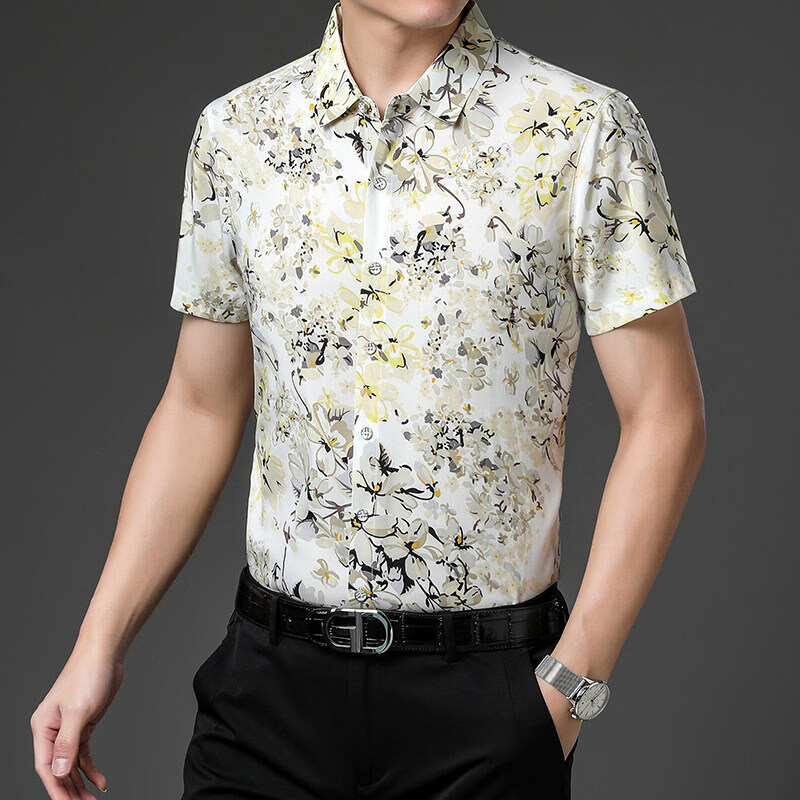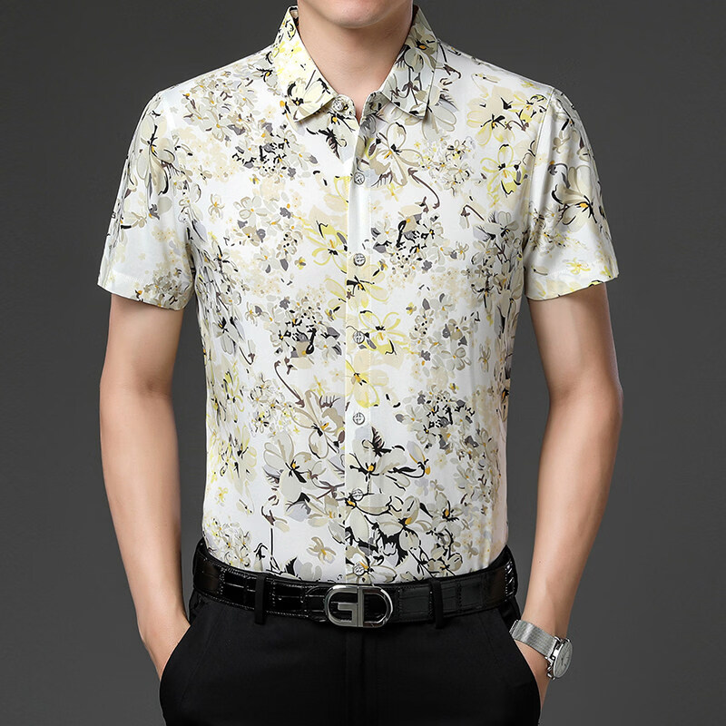 LOULOU STUDIO light luxury brand short-sleeved shirt men's summer dad summer ice silk business casual middle-aged and elderly shirt short-sleeved light yellow L (170) 84A is bust 84cm, A is body shape
