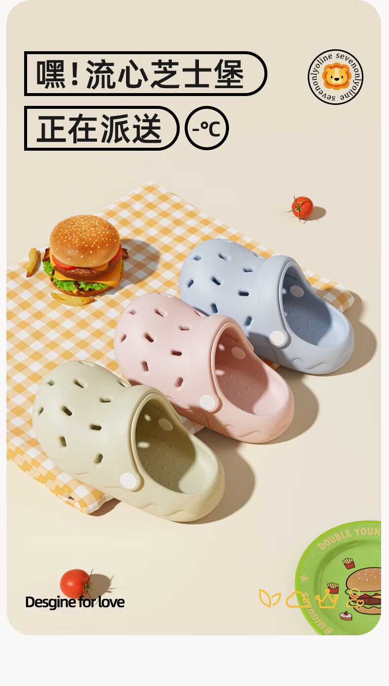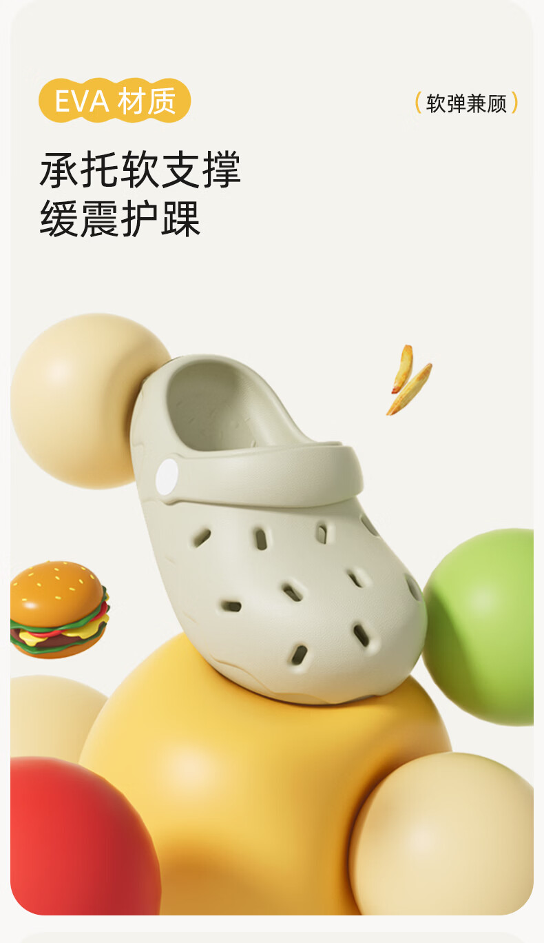 SEVEN ONLY OLINE Cute Hamburger Children's Crocs Boys and Girls Indoor Baotou Sandals Summer Beach Slippers Yellow 18 cm Inner Length 180 Foot Length 17.5-18cm Wear
