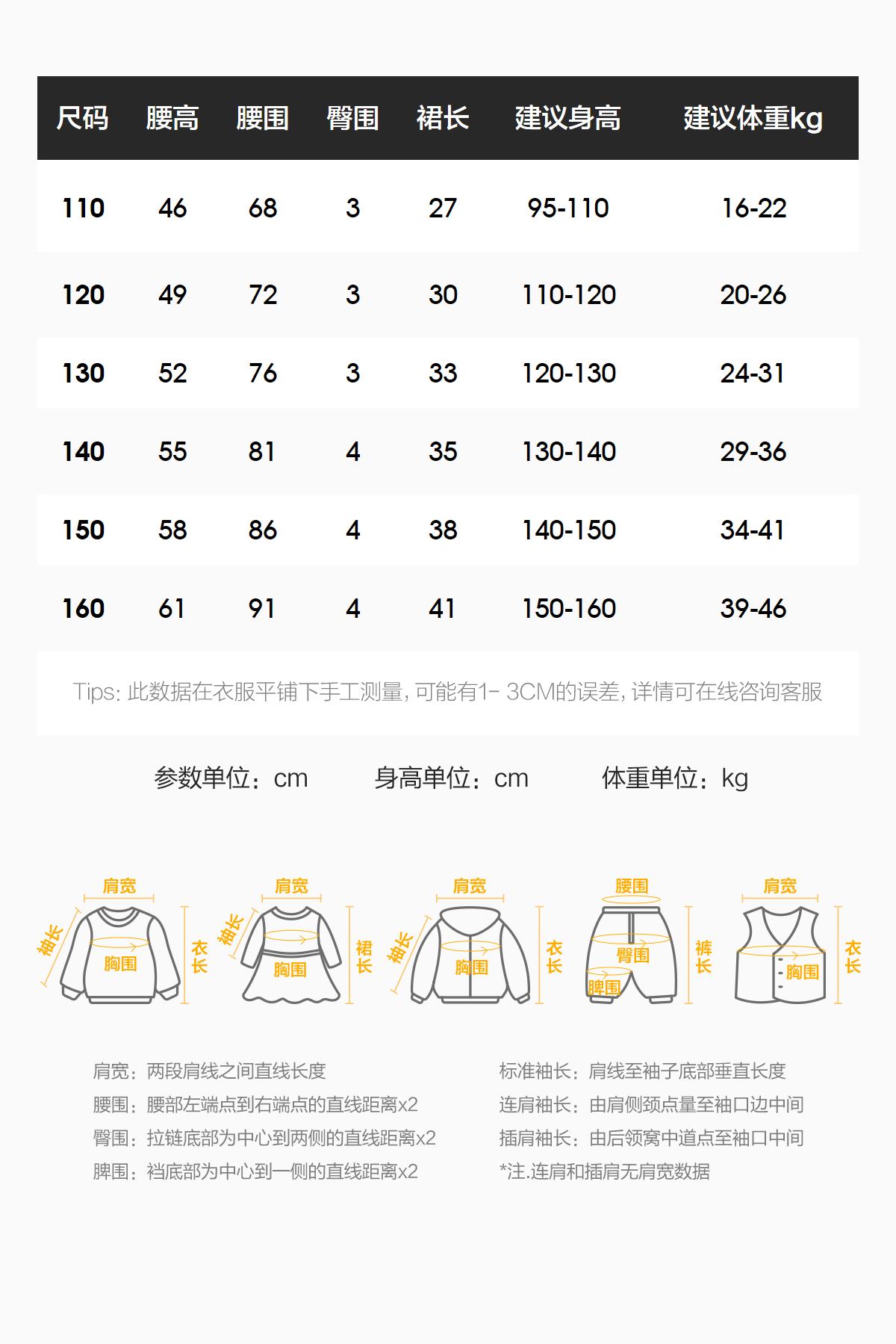 China (cm) 160-165/84-86 165-170 / 88-90 167-172 / 92-96 168-173 / 98-102 170-176 / 106-110