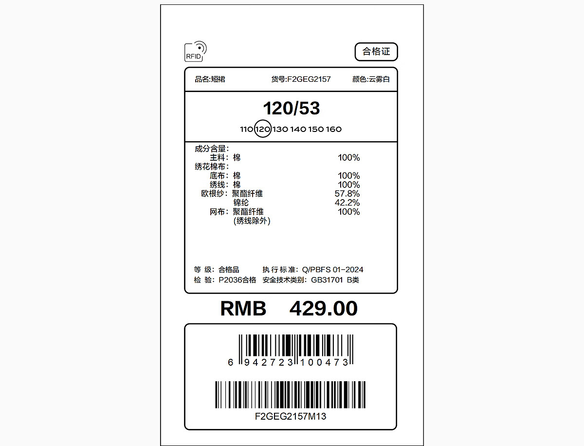 MiniPeace children's clothing girls skirt F2GEG2157 cloud white 110
