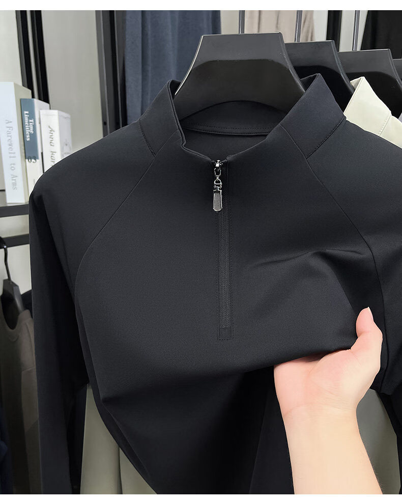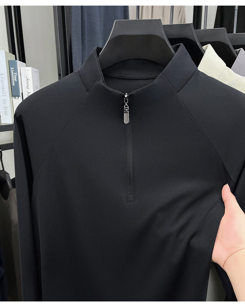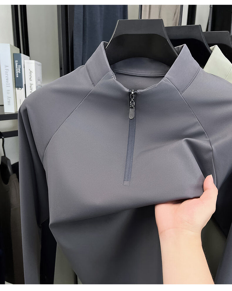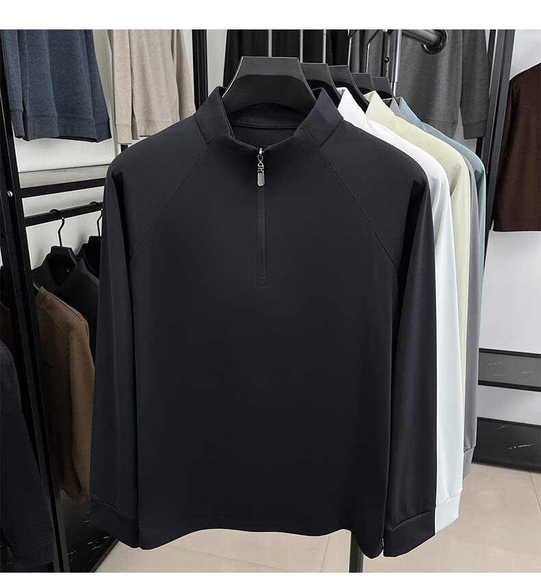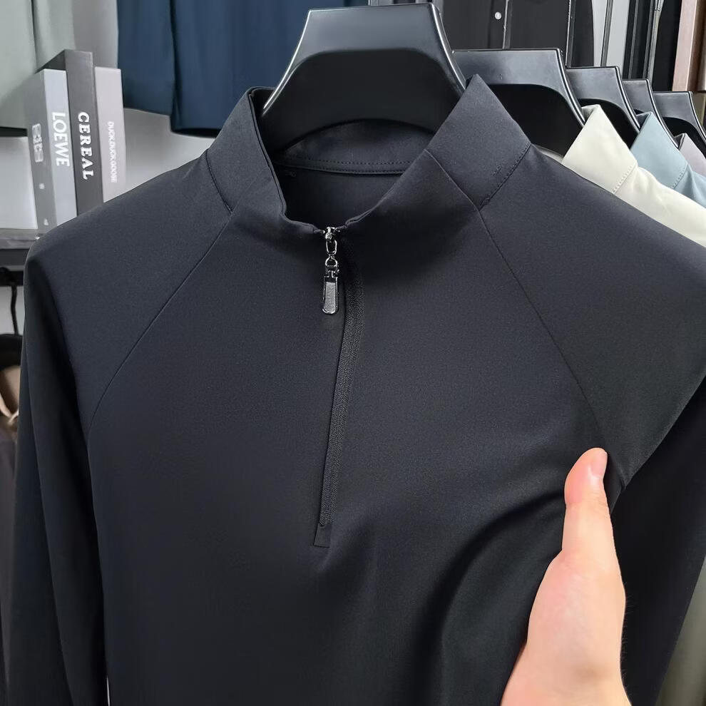 Navigare 2026 spring new zipper sweatshirt men's half turtleneck t-shirt long-sleeved ice silk thin men's sports bottoming shirt trendy black S 165