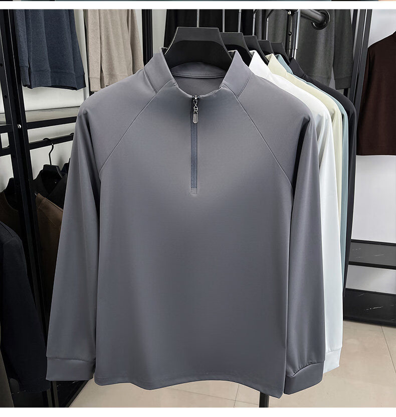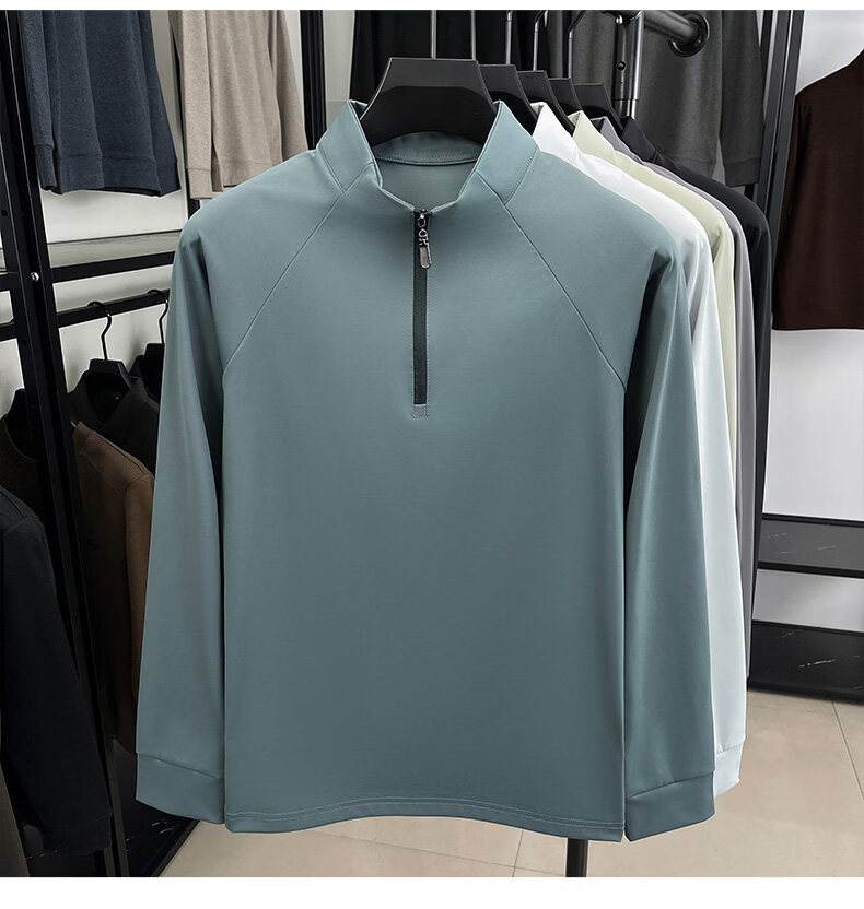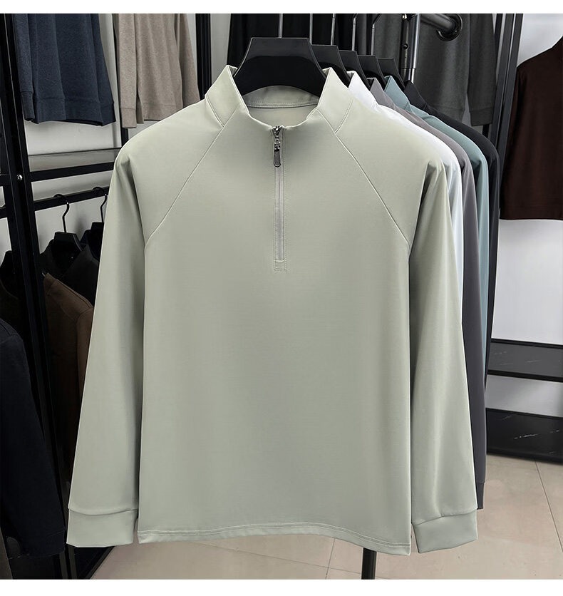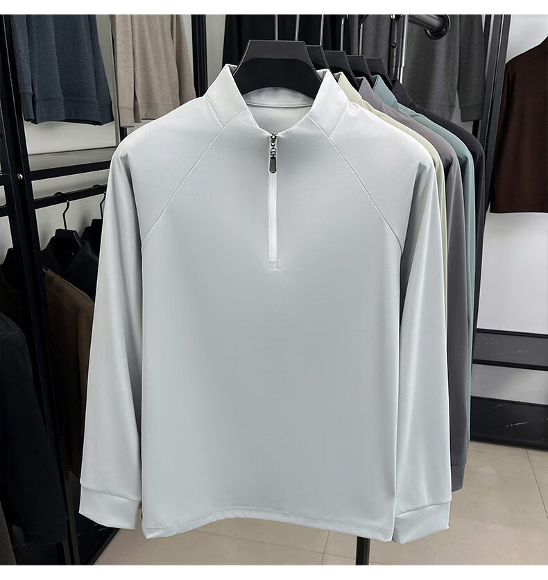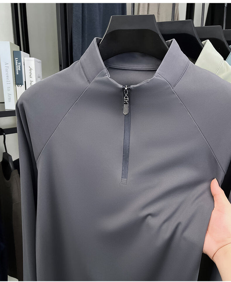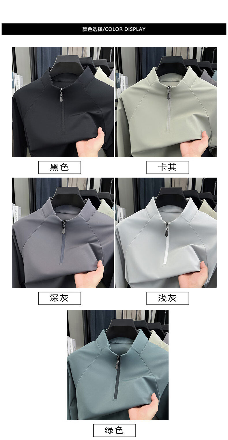 Navigare 2026 spring new zipper sweatshirt men's half turtleneck t-shirt long-sleeved ice silk thin men's sports bottoming shirt trendy black S 165