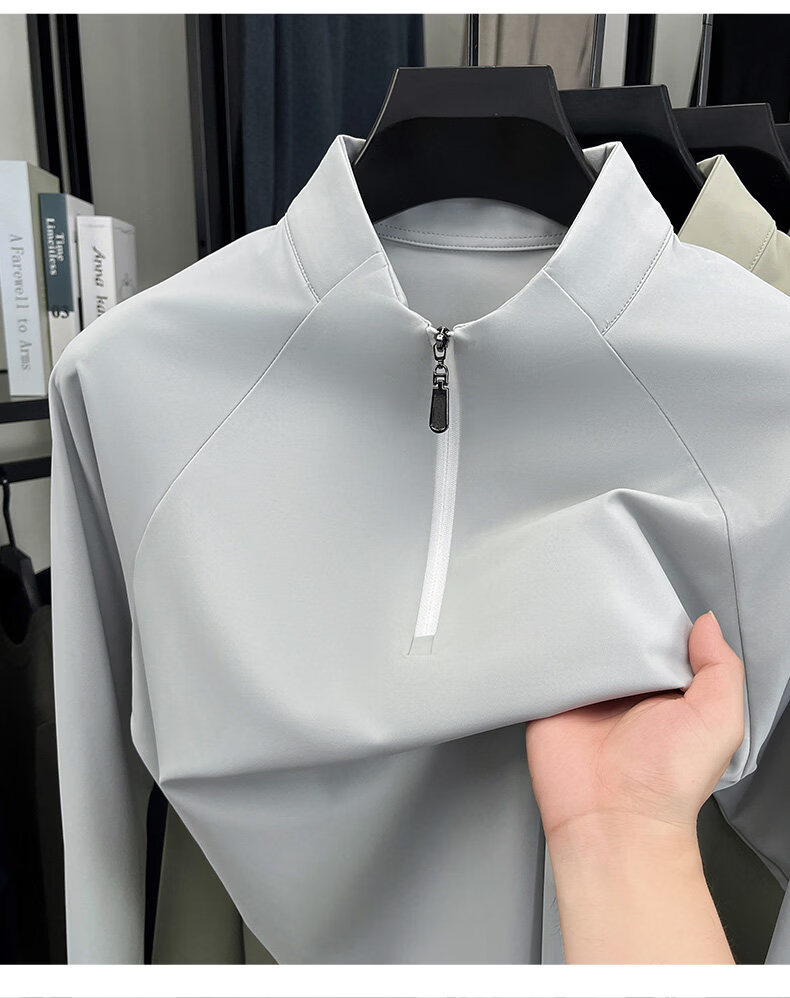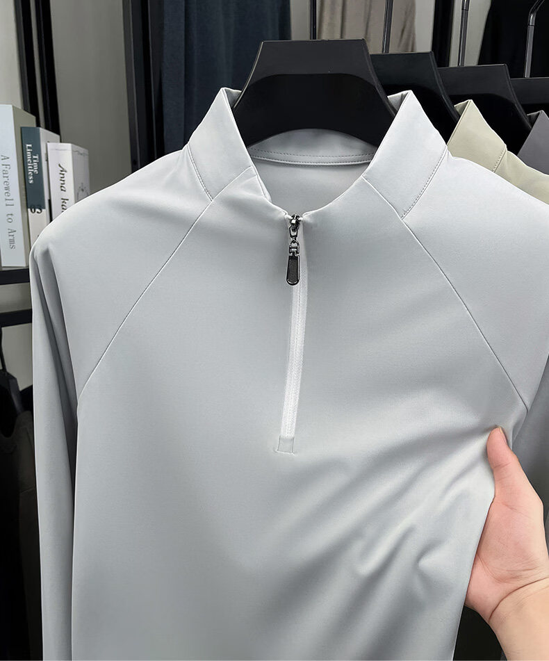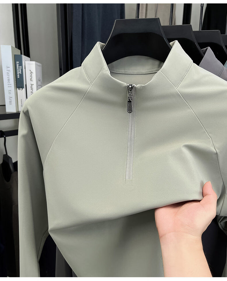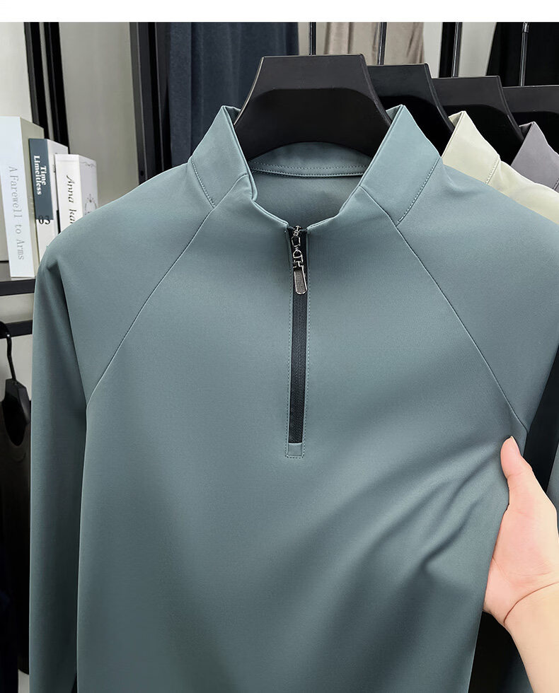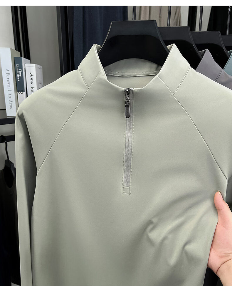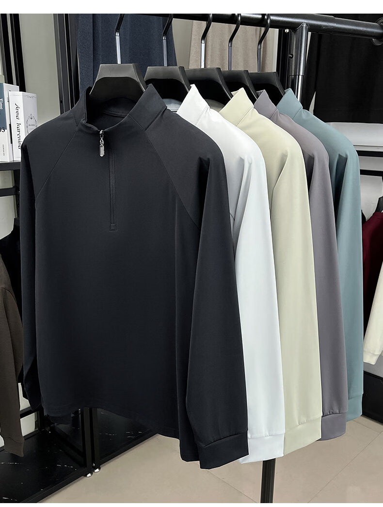 Navigare 2026 spring new zipper sweatshirt men's half turtleneck t-shirt long-sleeved ice silk thin men's sports bottoming shirt trendy black S 165